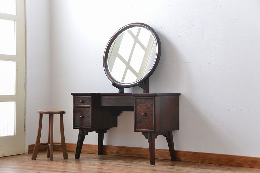 中古 松本民芸家具 丸型一面鏡のドレッサー(定価約30万円)