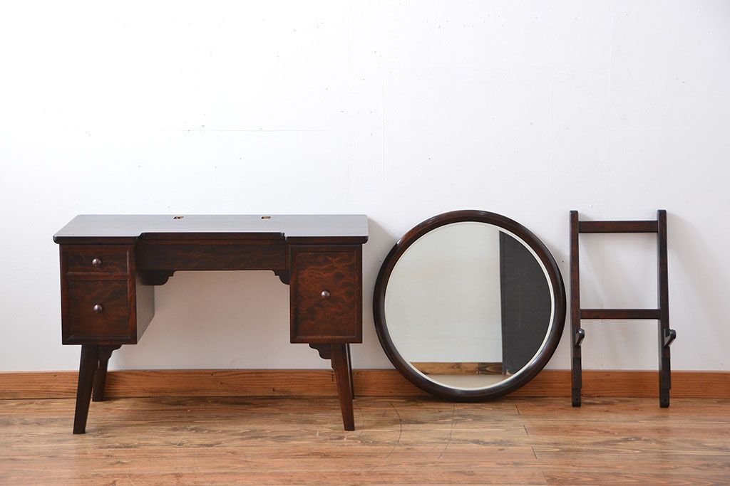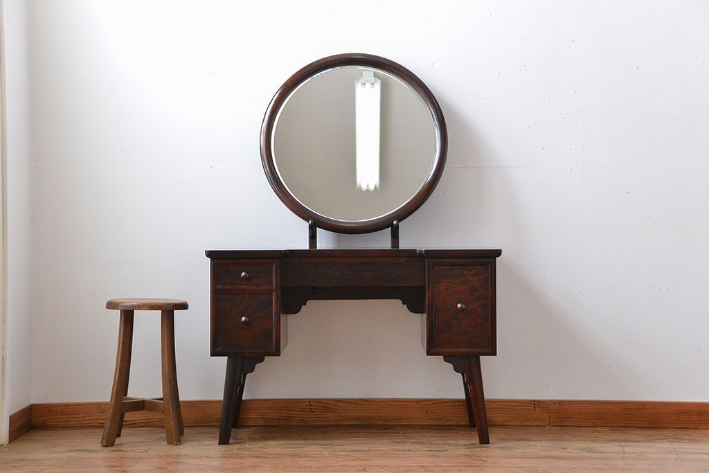 中古 松本民芸家具 丸型一面鏡のドレッサー(定価約30万円)です。