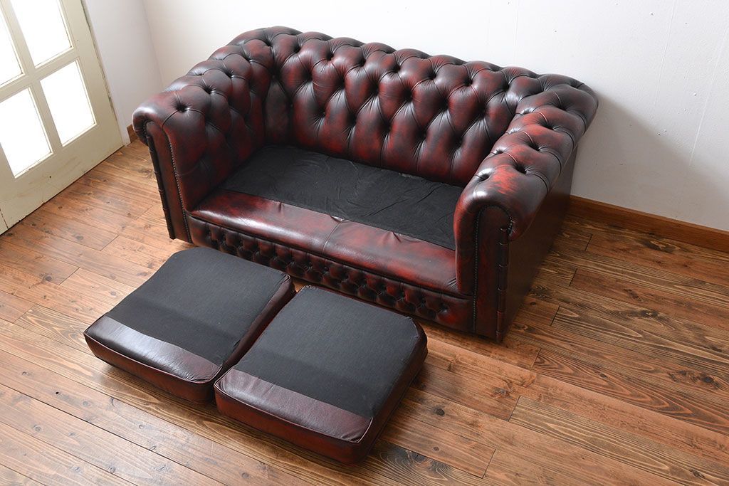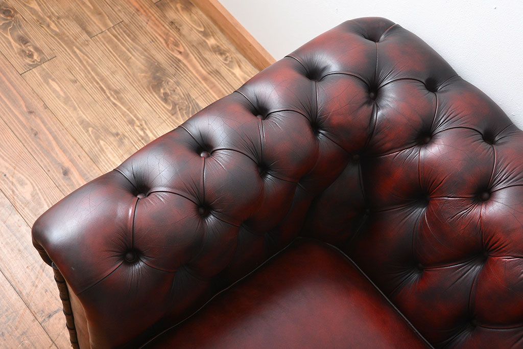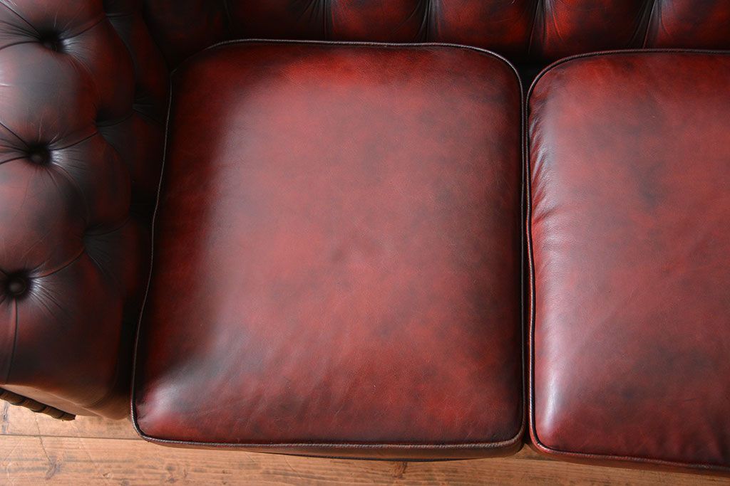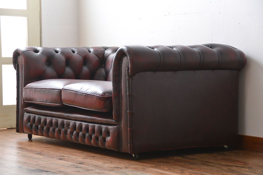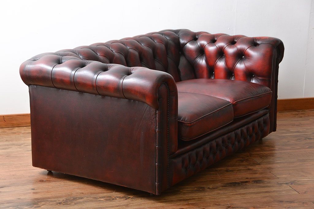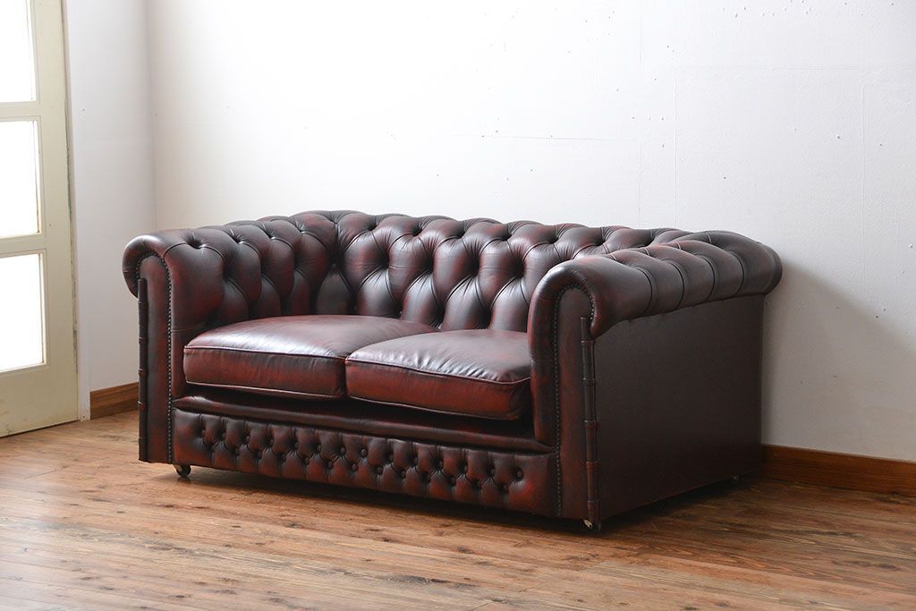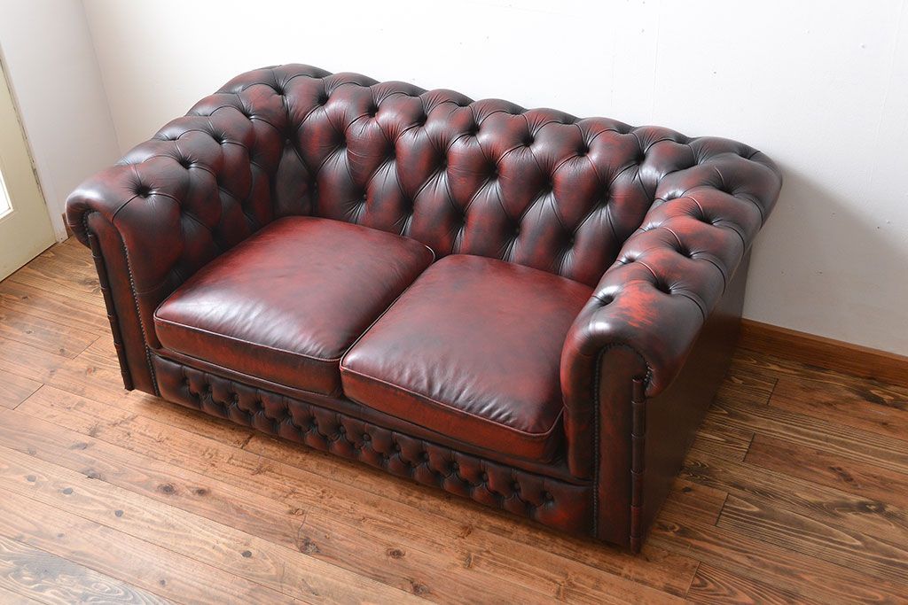 アンティーク家具 イギリスアンティーク 本革2人掛けチェスターフィールドソファ