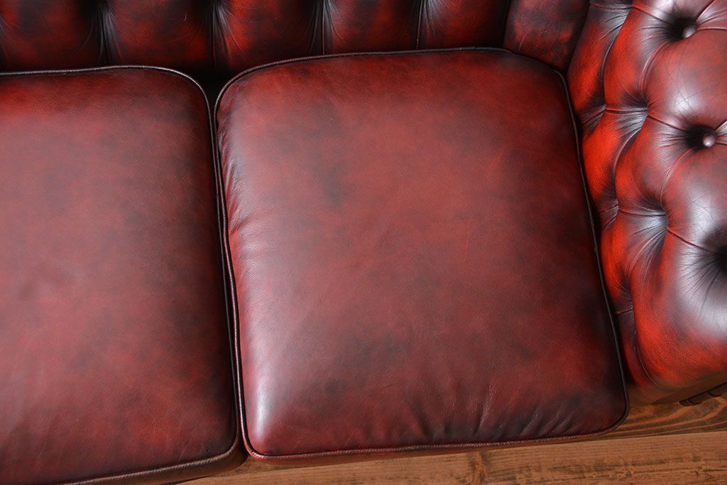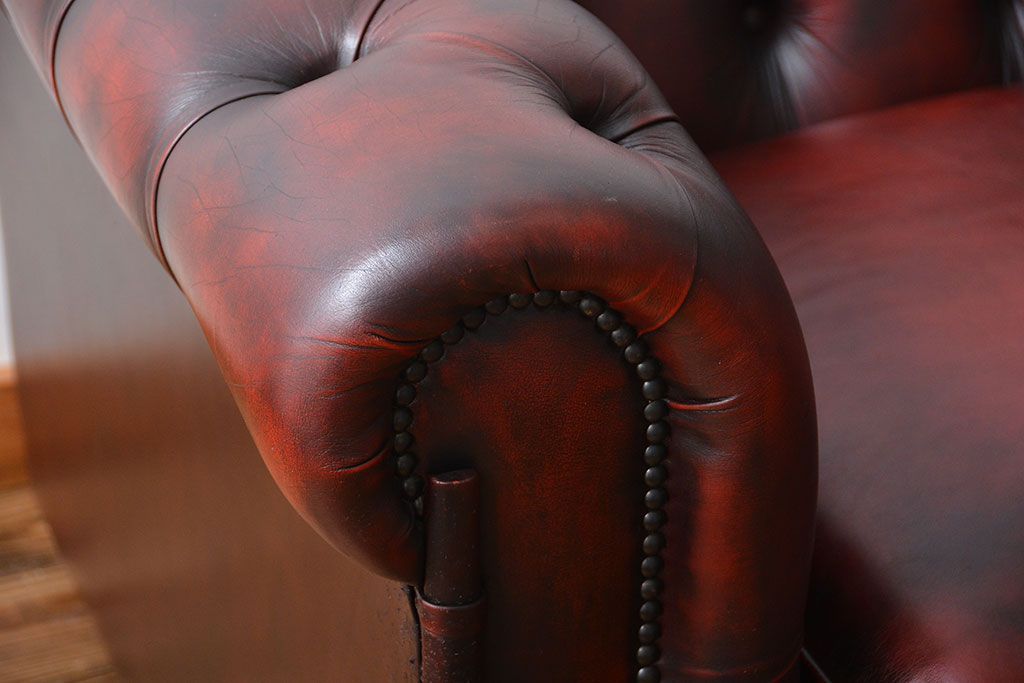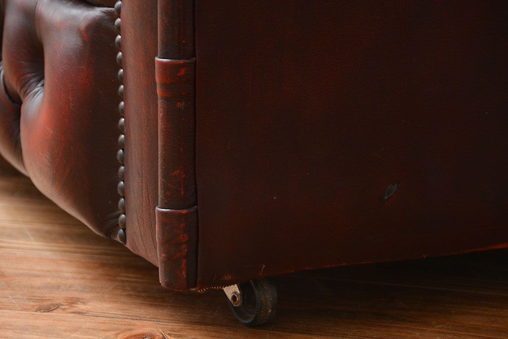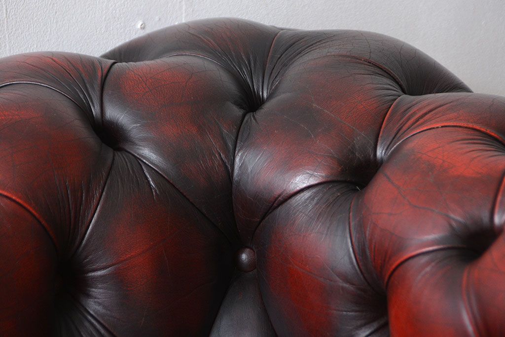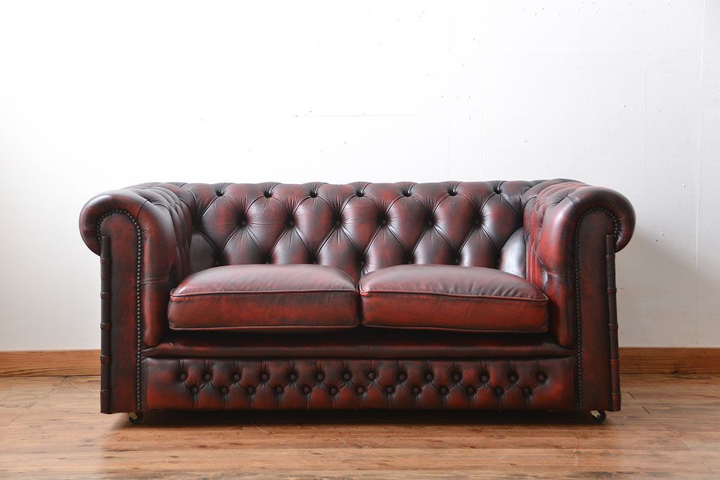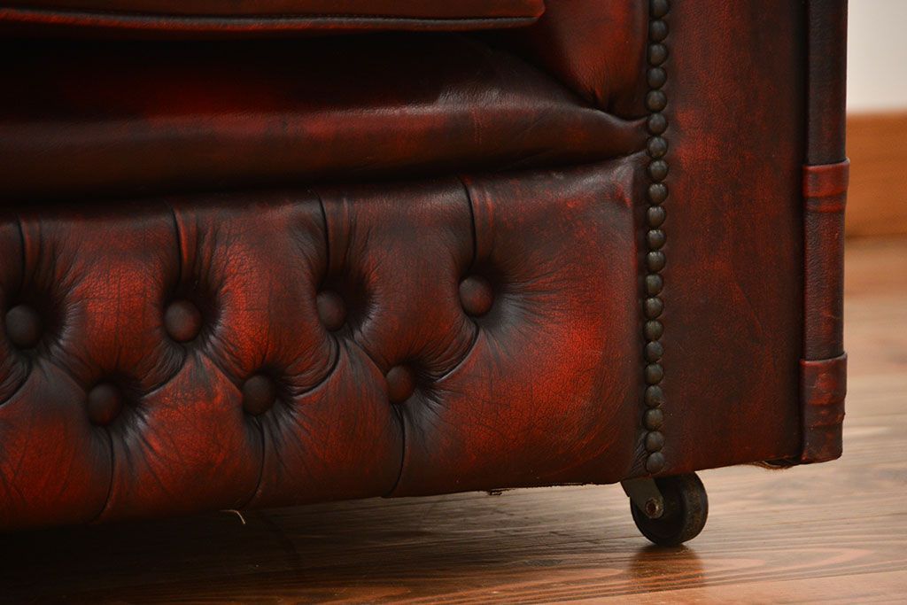 アンティーク家具 イギリスアンティーク 本革2人掛けチェスターフィールドソファ