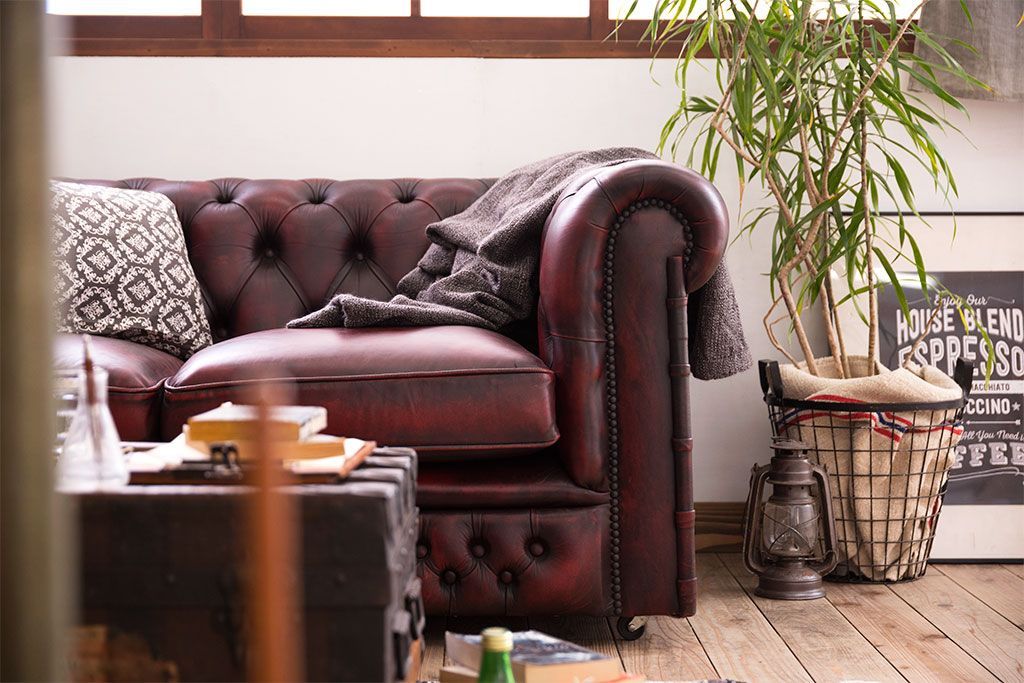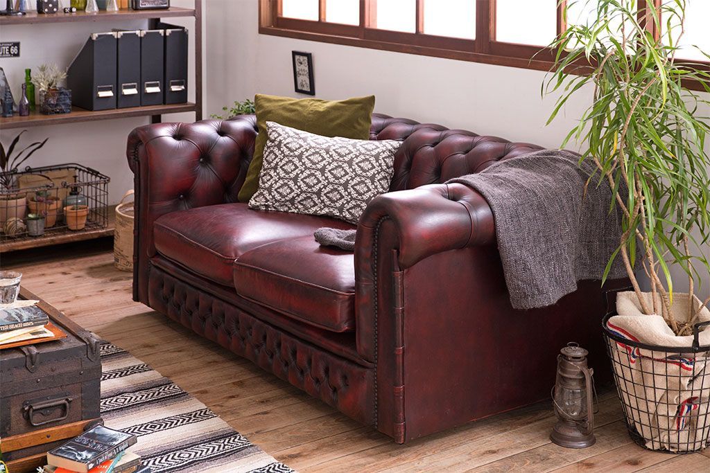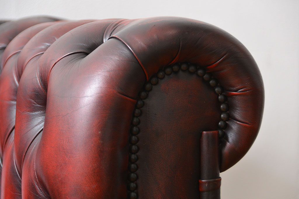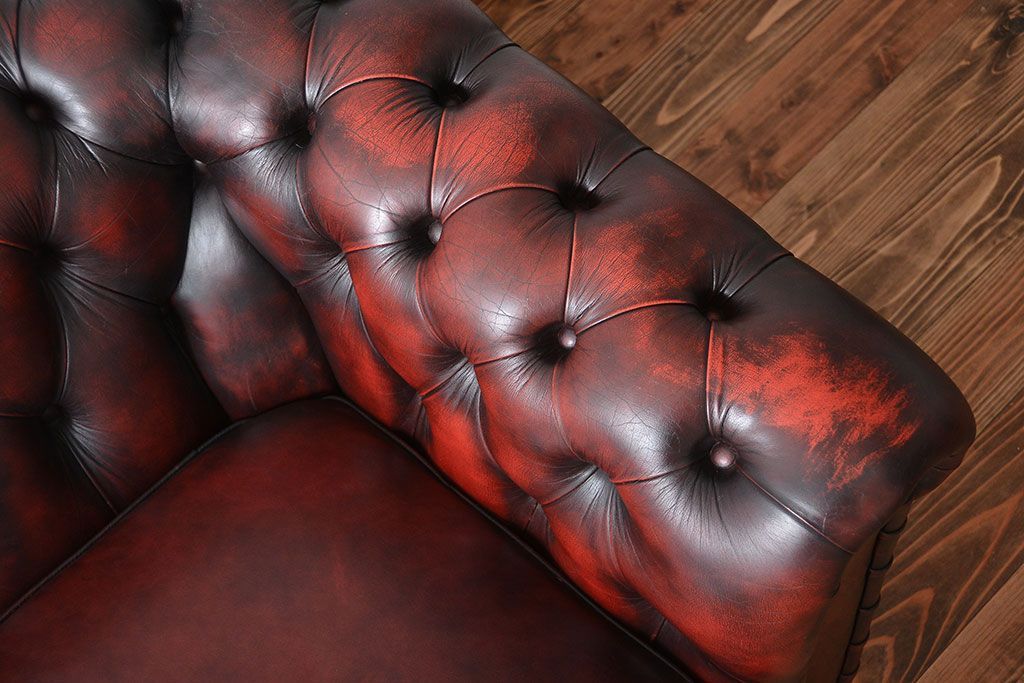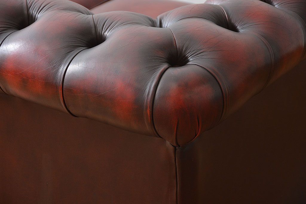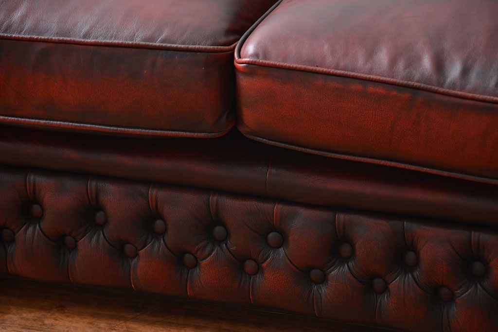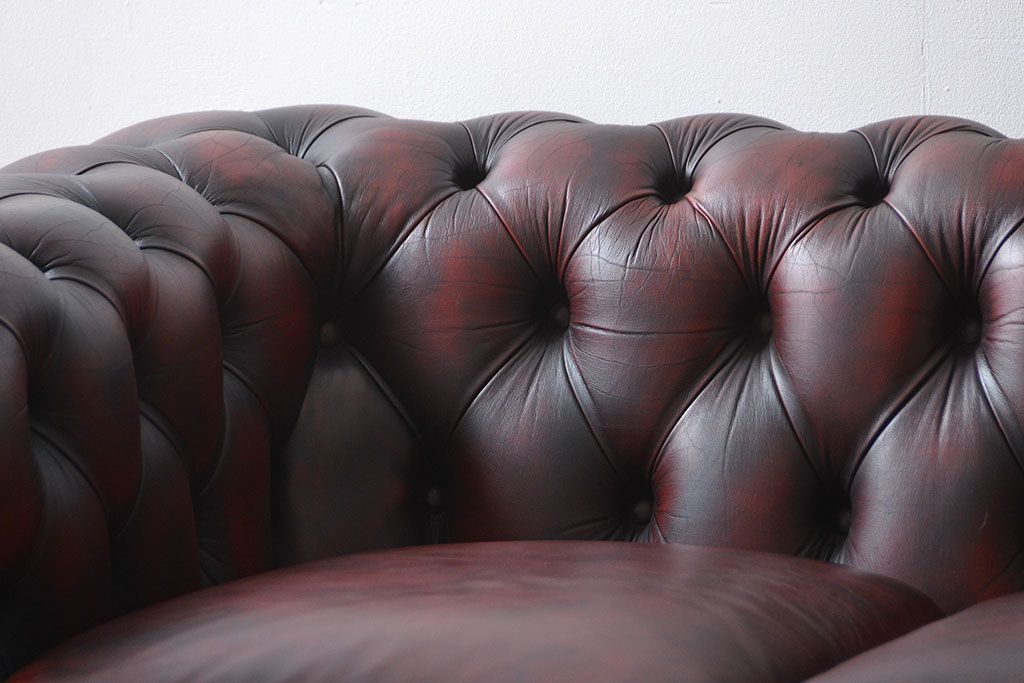 アンティーク家具 イギリスアンティーク 本革2人掛けチェスターフィールドソファ
