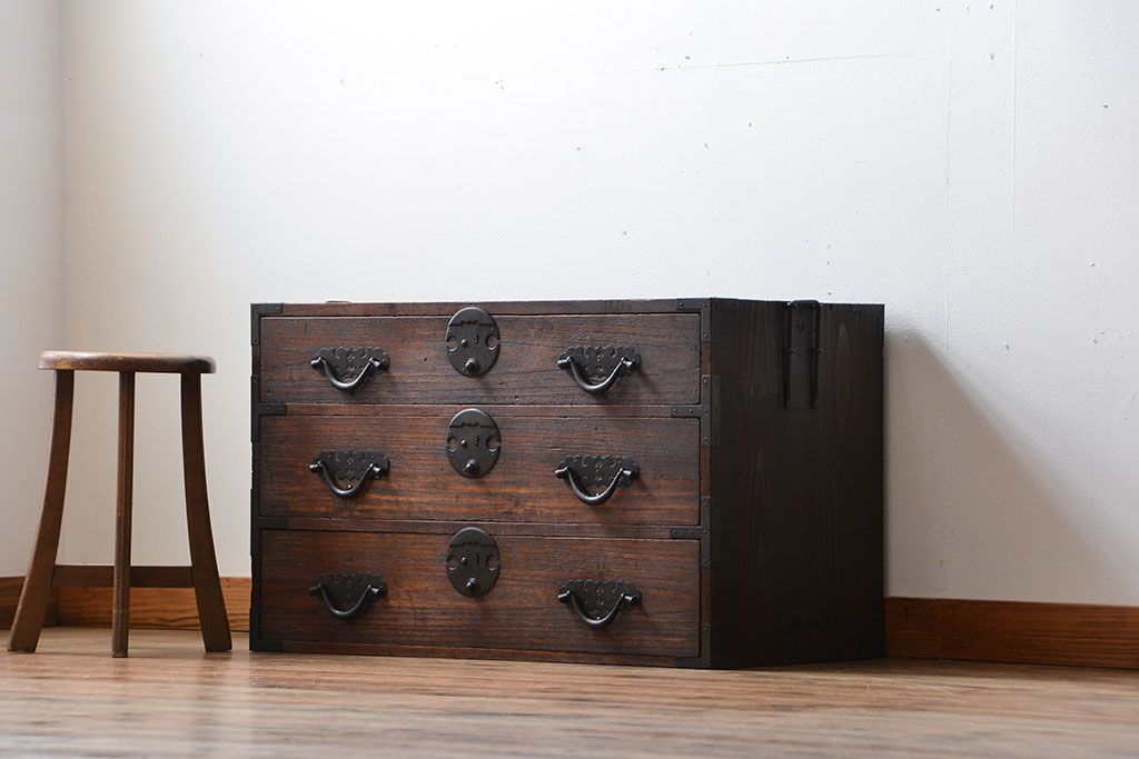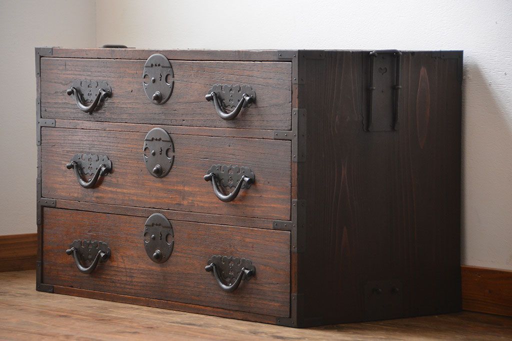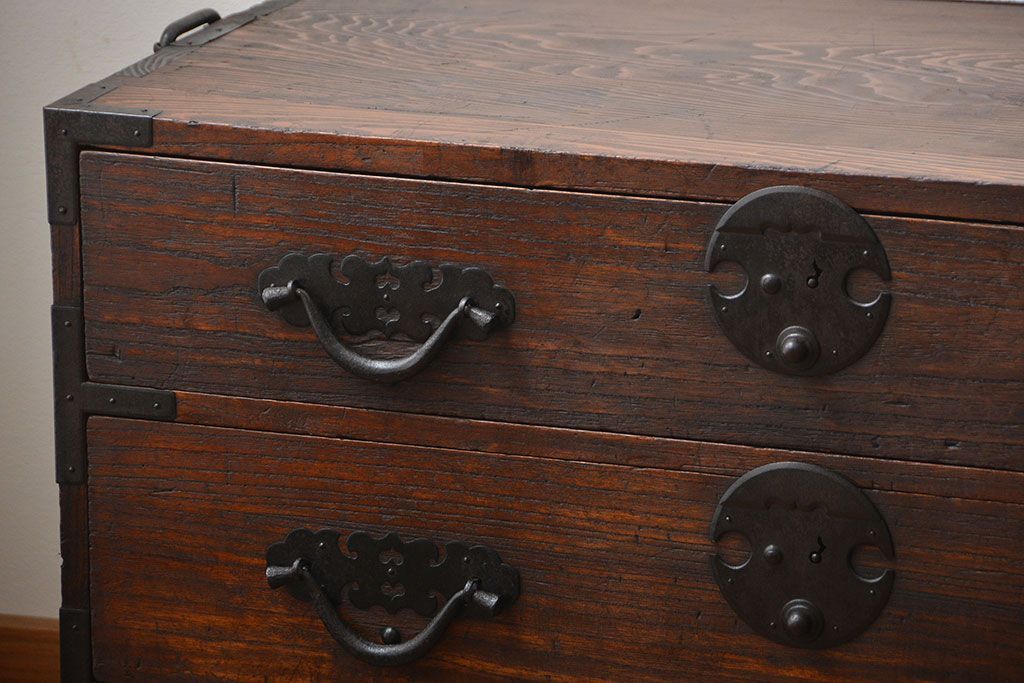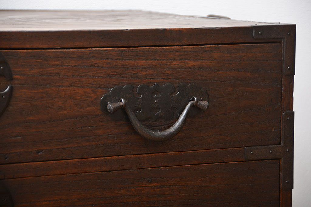 アンティーク家具 アンティーク 桐材!金具が立派な時代箪笥ローボード(3)