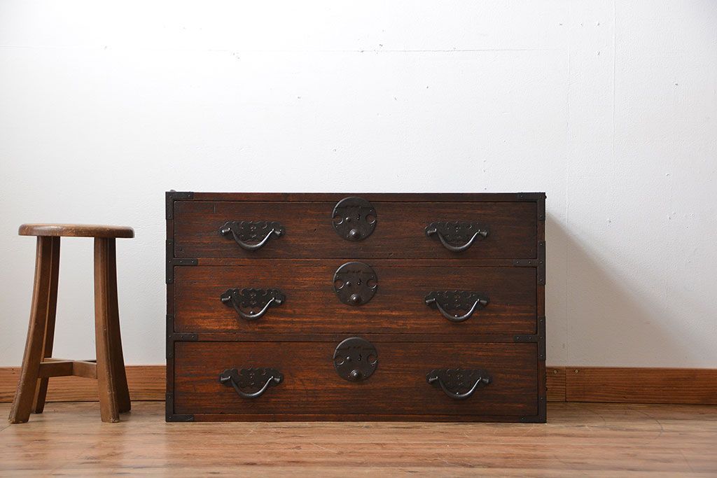 和箪笥 > アンティーク家具 アンティーク 桐材!金具が立派な時代箪笥ローボード(3、桐箪笥、桐たんす)