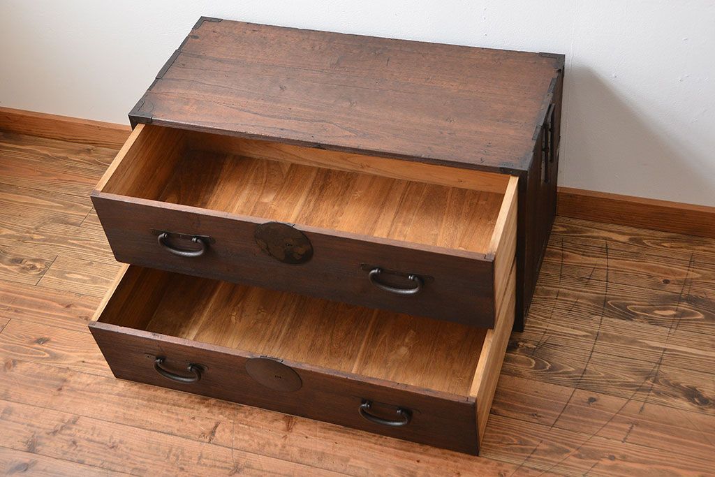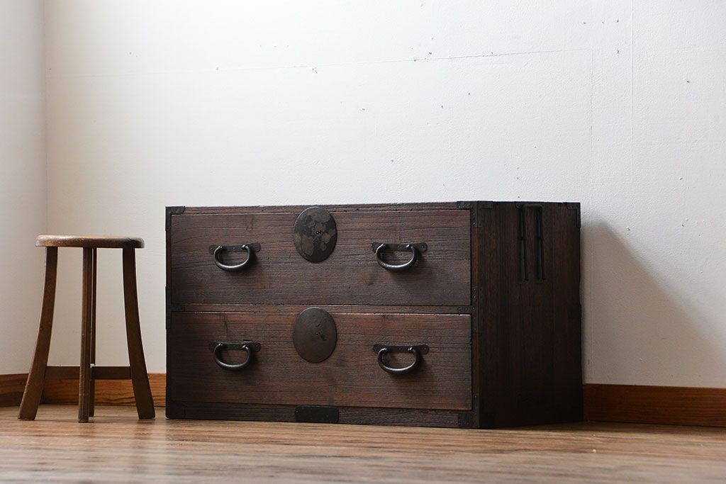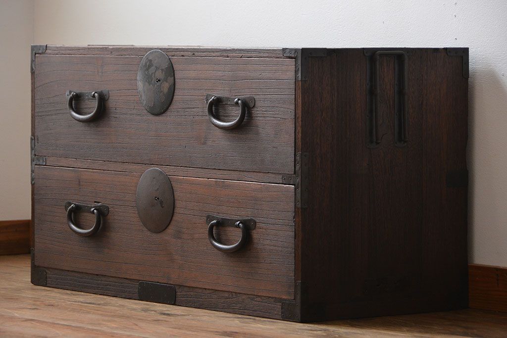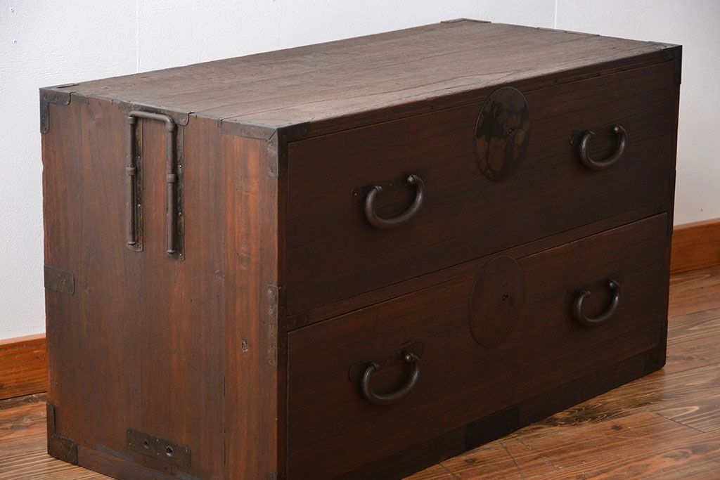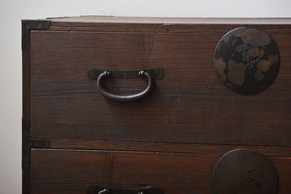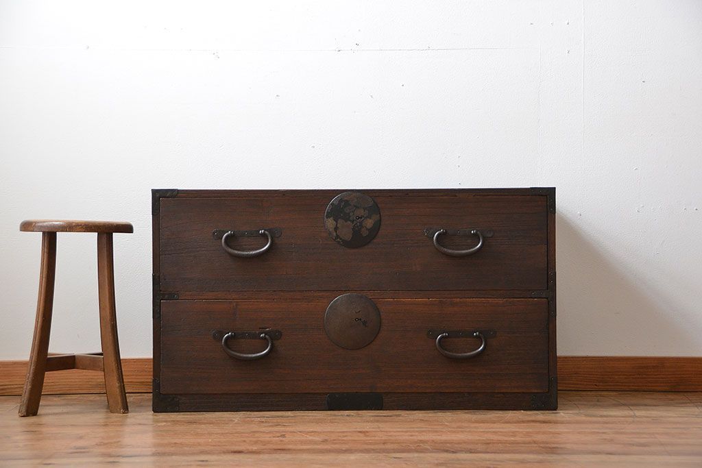 和箪笥> 衣装箪笥 > アンティーク家具 和製アンティーク シンプルな丸金具の時代箪笥ローボード(2)