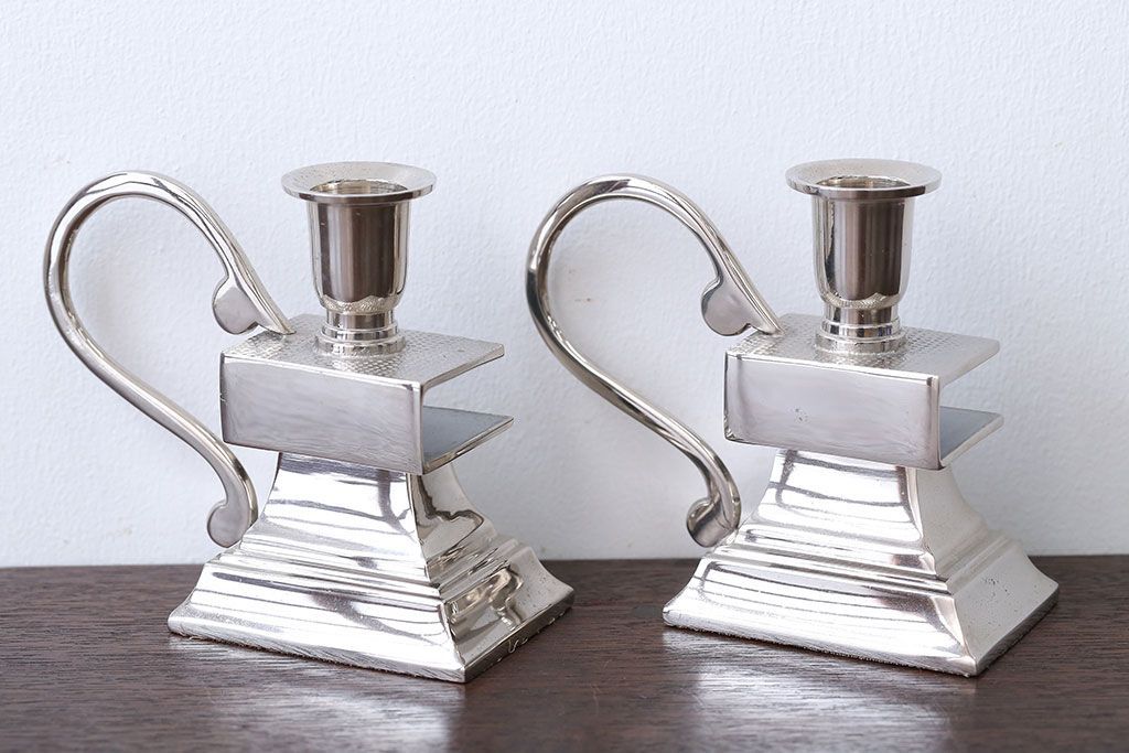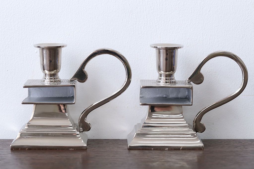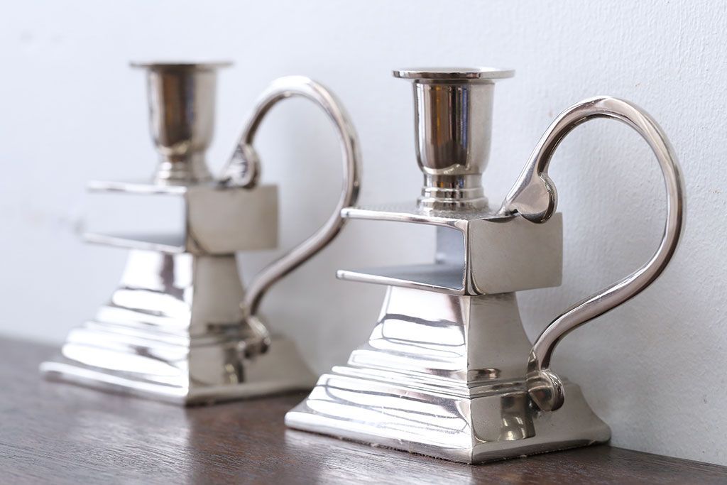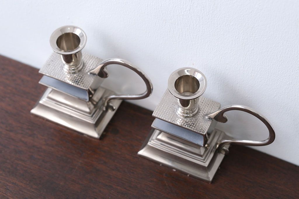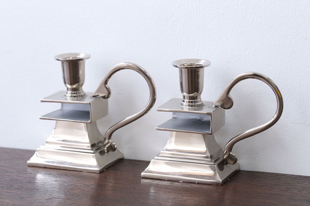 アンティーク雑貨 イギリスアンティーク 取っ手付きキャンドルスタンドペアセット