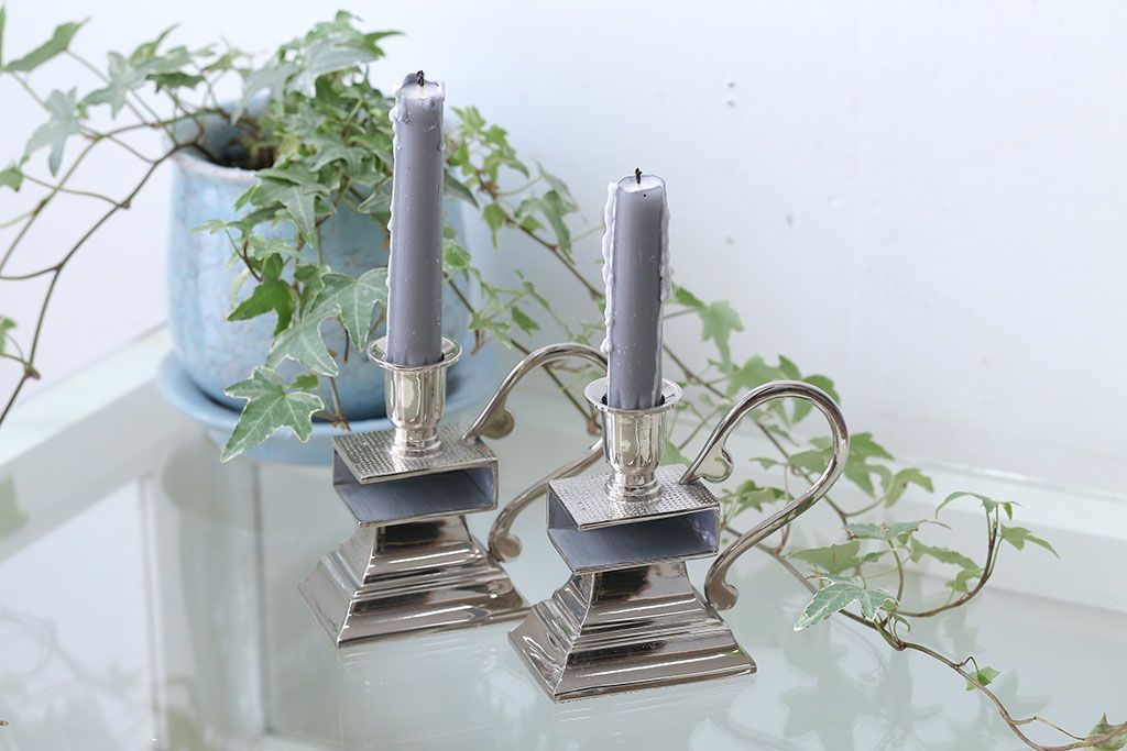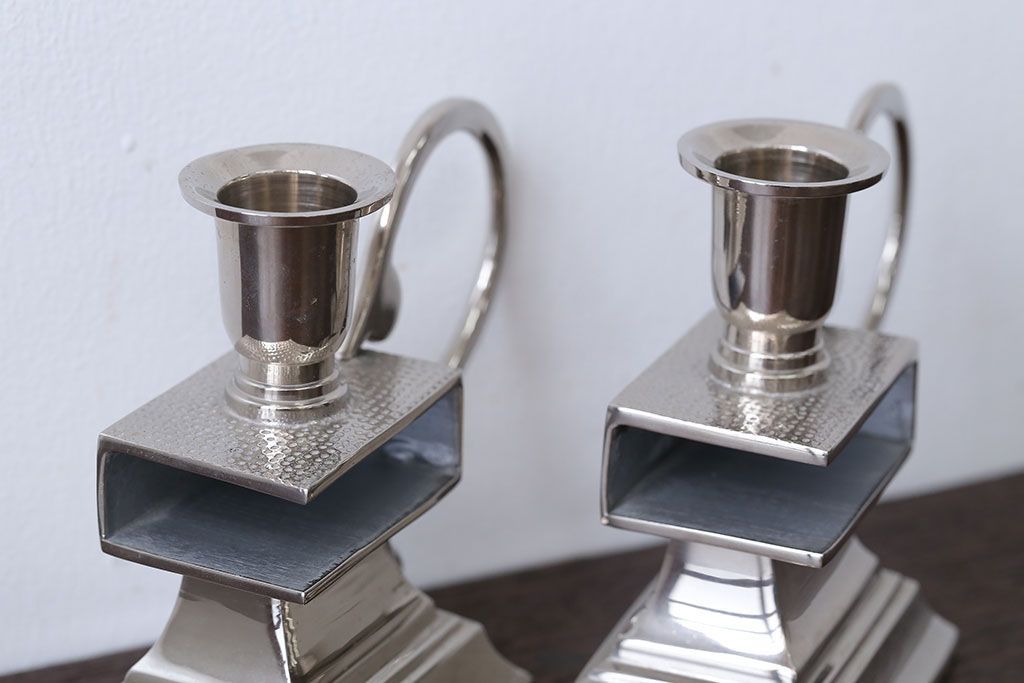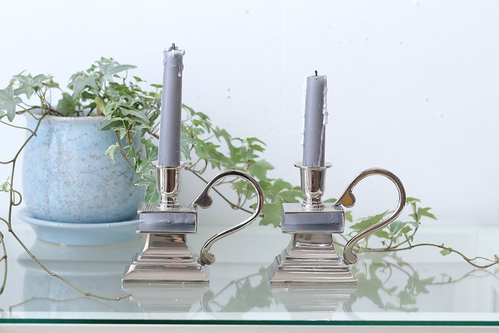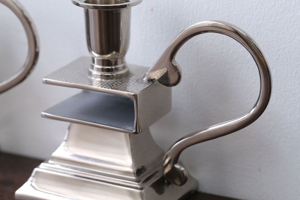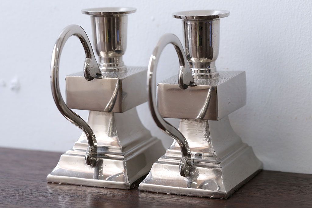 アンティーク雑貨 イギリスアンティーク 取っ手付きキャンドルスタンドペアセット