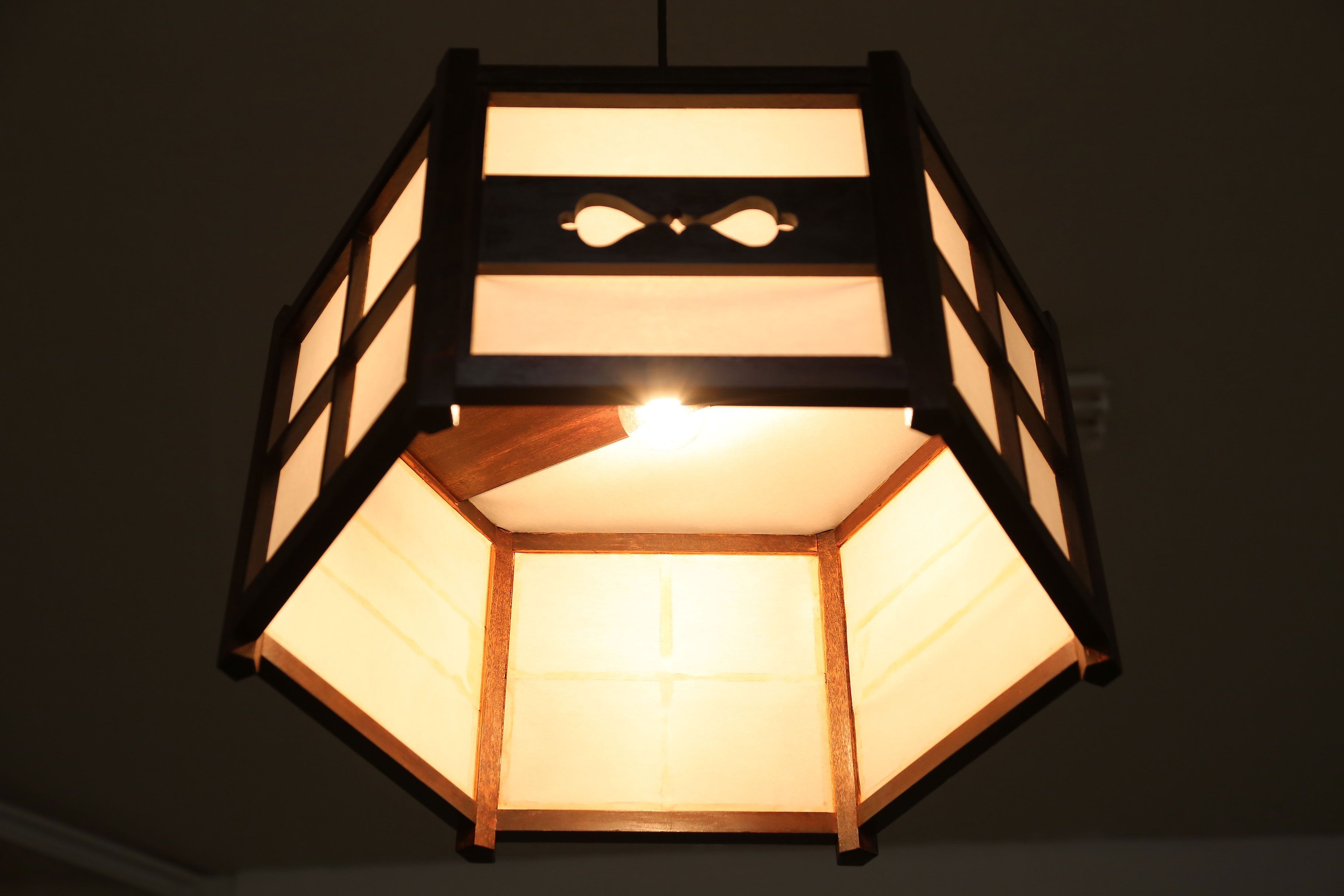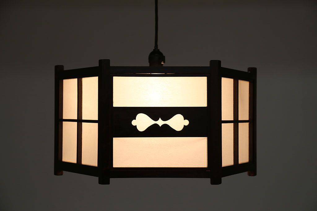 中古 松本民芸家具 B型六角アンドン天井照明です。