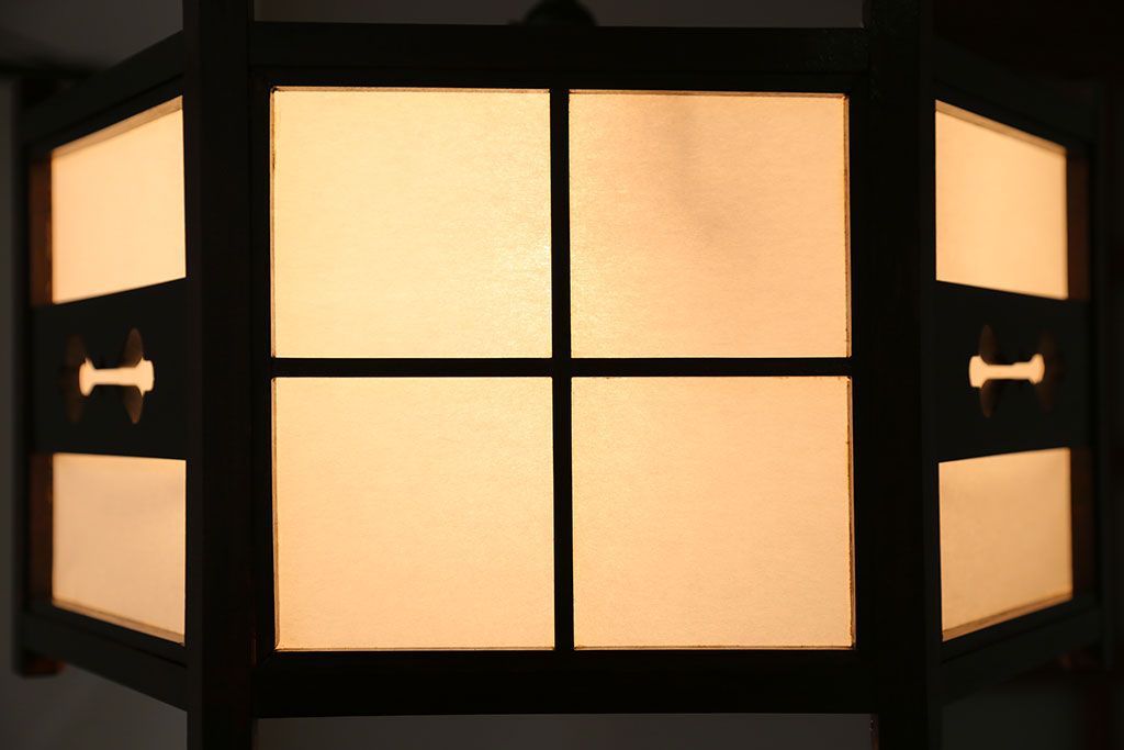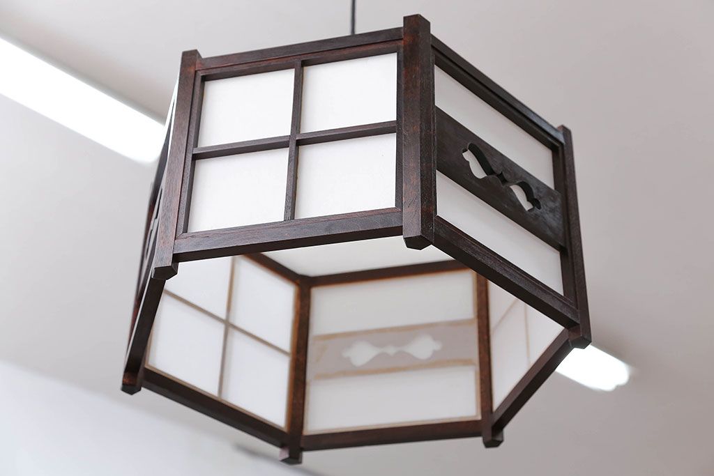 松本民芸家具のビンテージ品のB型六角アンドン天井照明です。