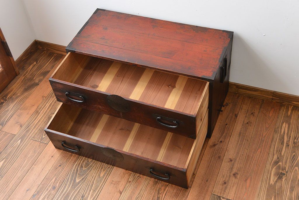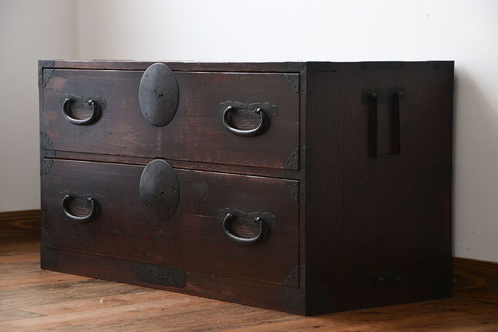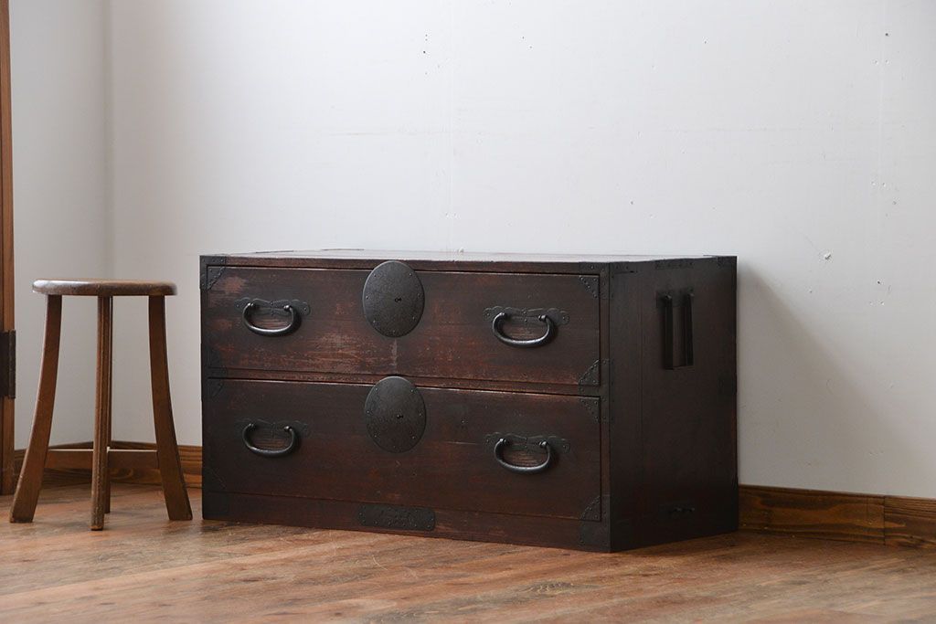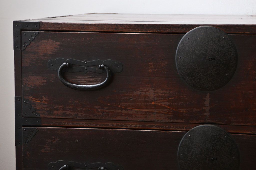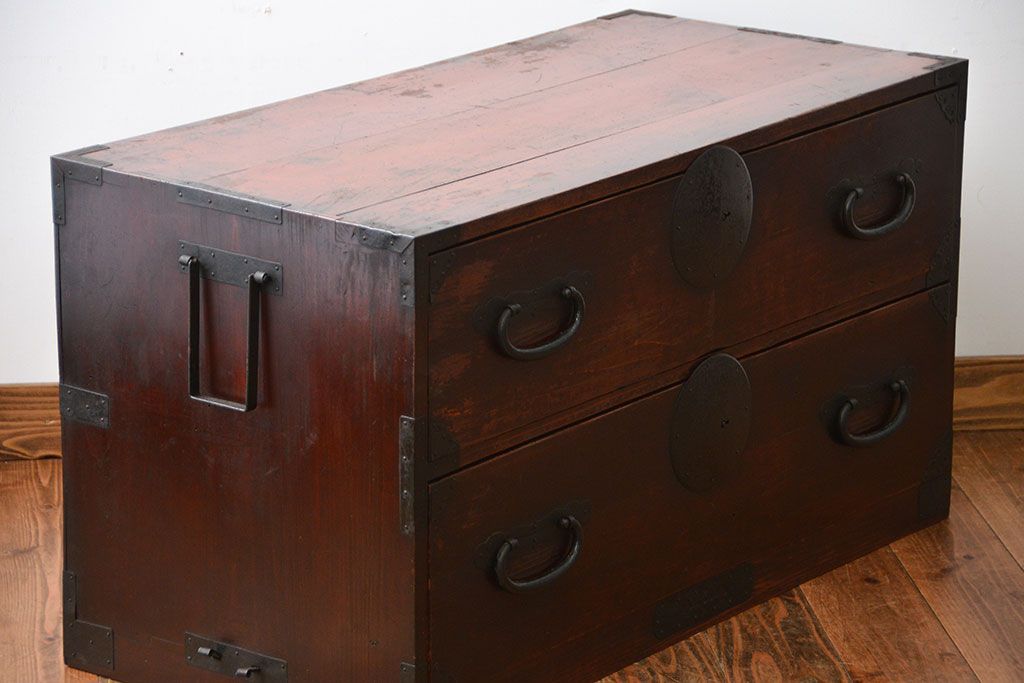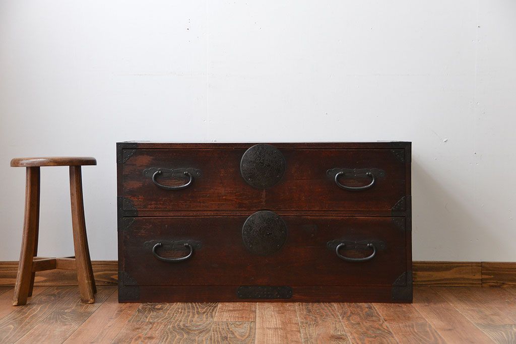 和箪笥> 衣装箪笥 > アンティーク家具 和製アンティーク 古い木の味わい深い時代箪笥ローボード(1)