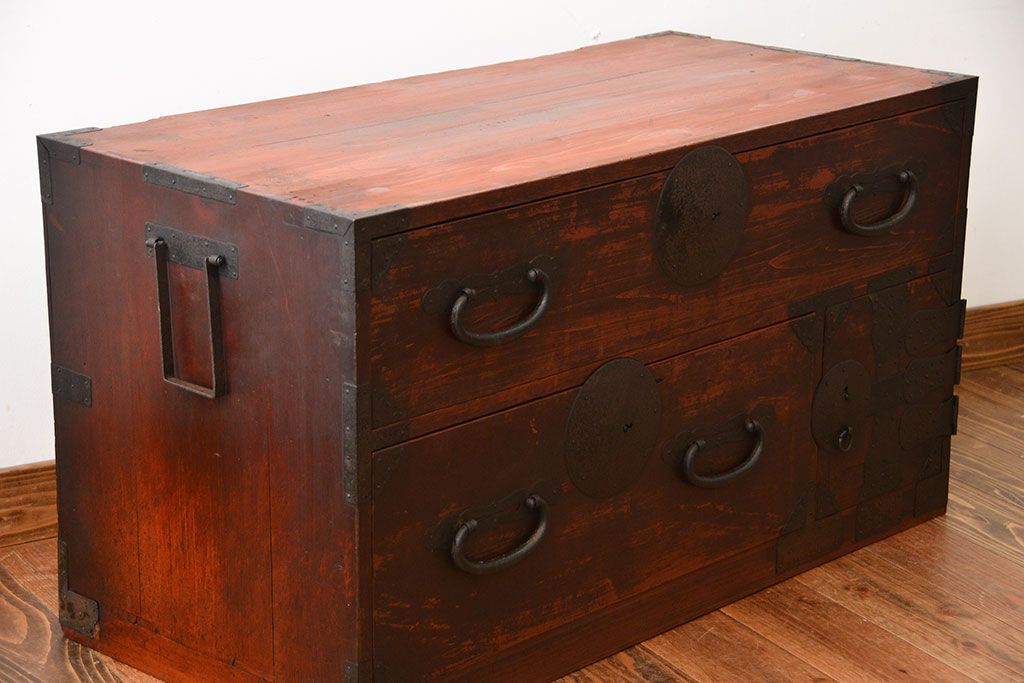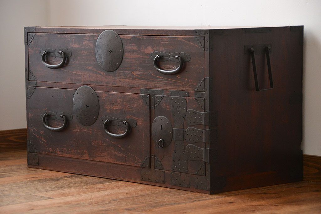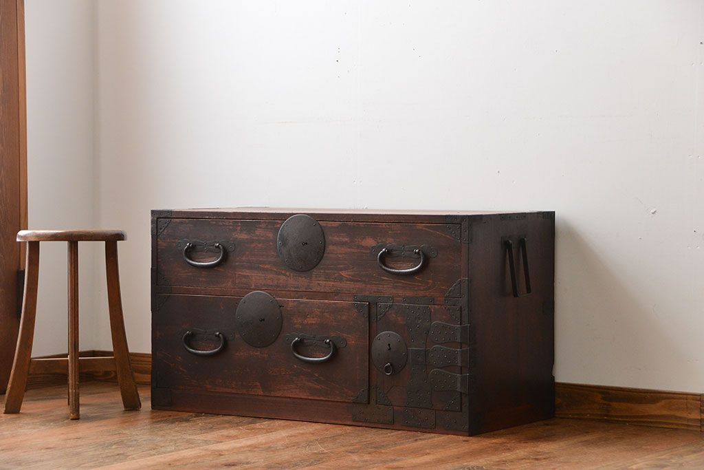 和箪笥> 衣装箪笥 > アンティーク家具 和製アンティーク 古い木の味わい深い時代箪笥ローボード(2)