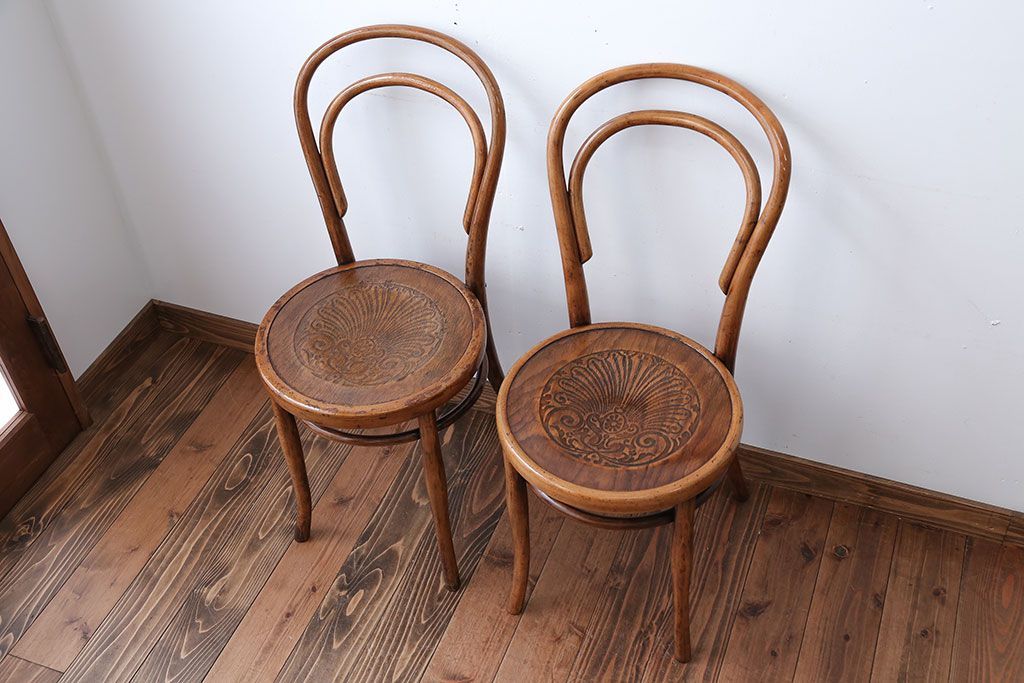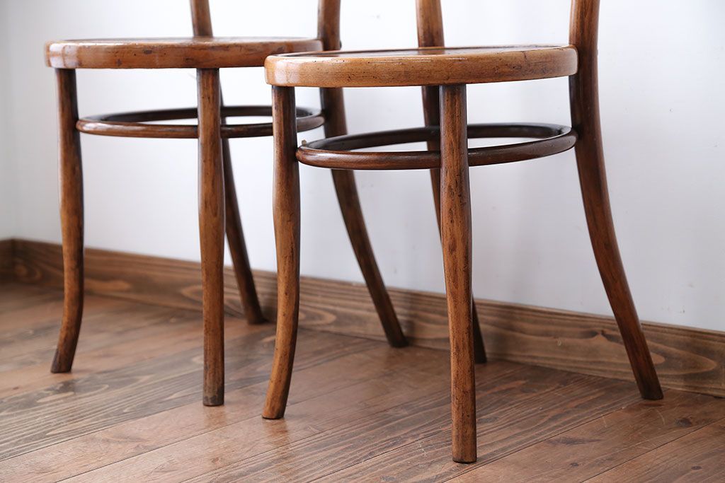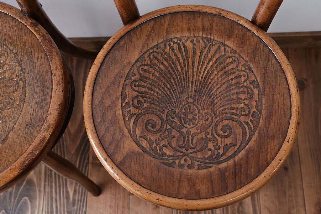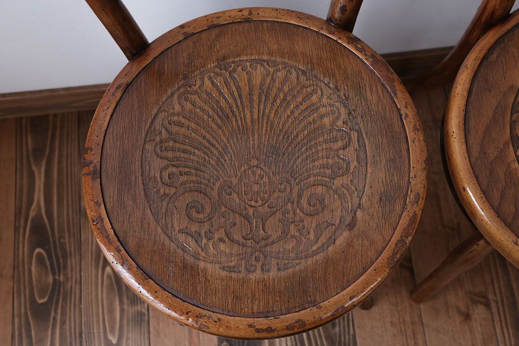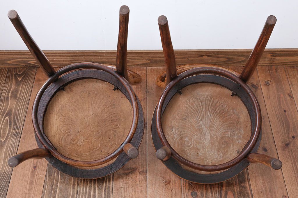 アンティーク家具 イギリスアンティーク おしゃれなダブルループベントウッドチェア2脚セット(トーネット・バルーンバック)(2)