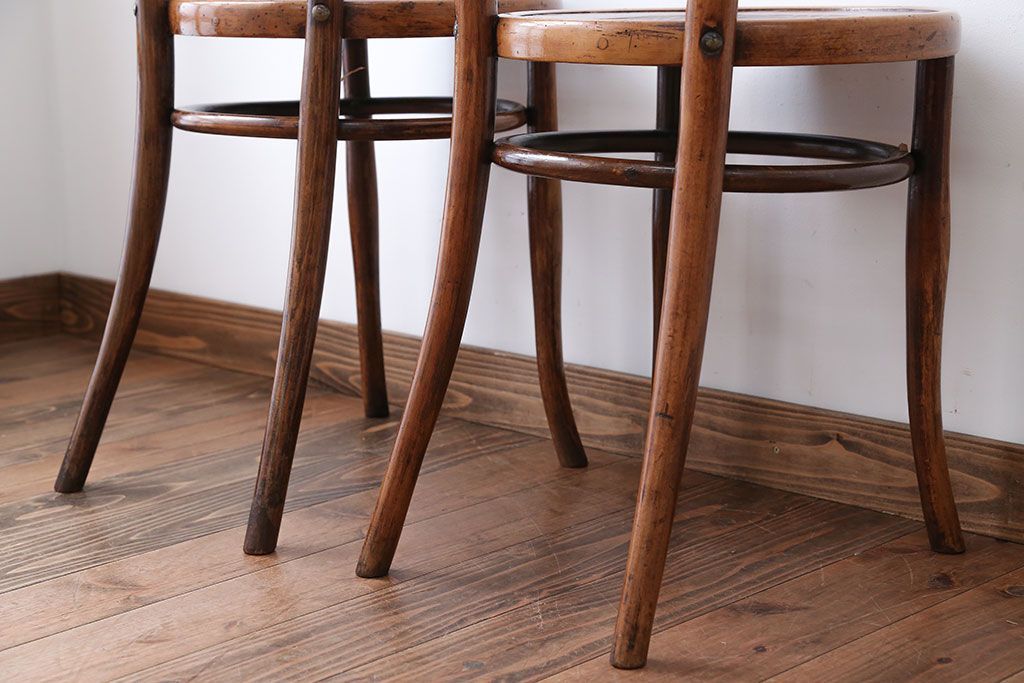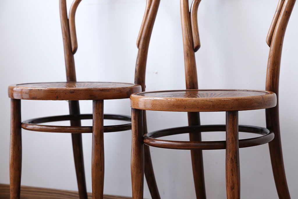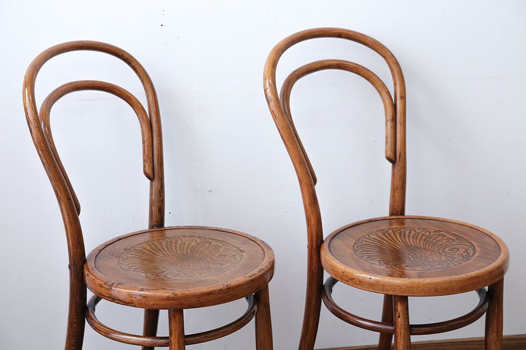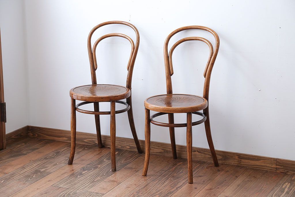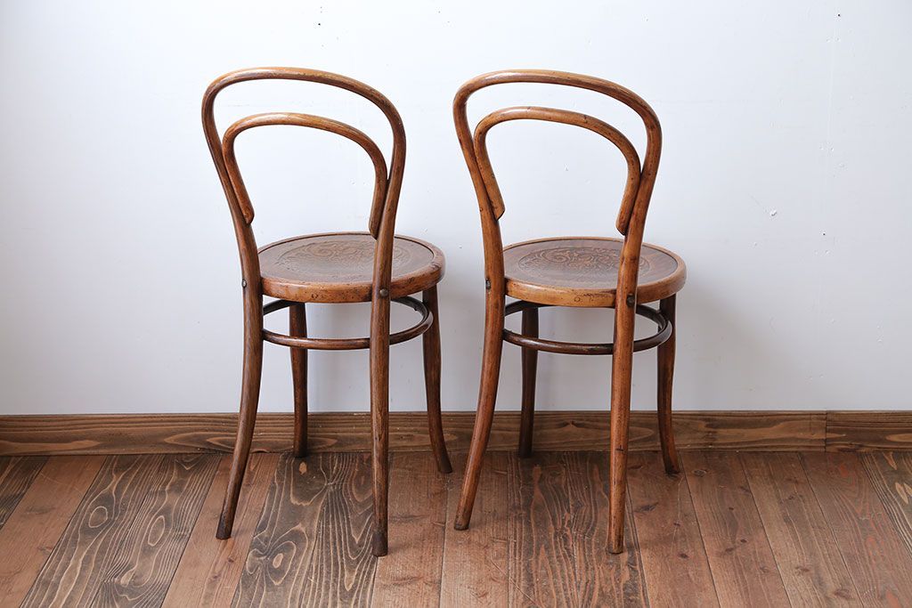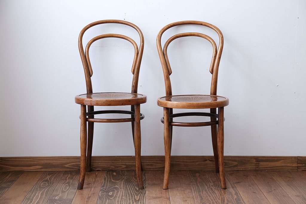アンティーク家具 イギリスアンティーク おしゃれなダブルループベントウッドチェア2脚セット(トーネット・バルーンバック)(2)