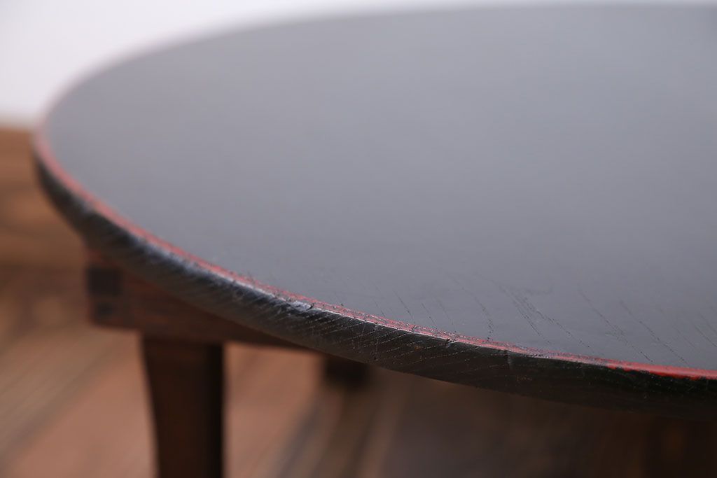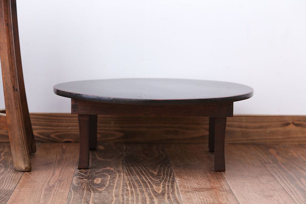 レトロ家具 昭和レトロ 小さな古い木製のアンティーク丸ちゃぶ台(2)