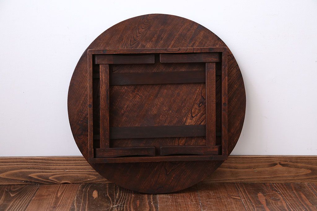 昭和レトロ 小さな古い木製のアンティーク丸ちゃぶ台(2)です。