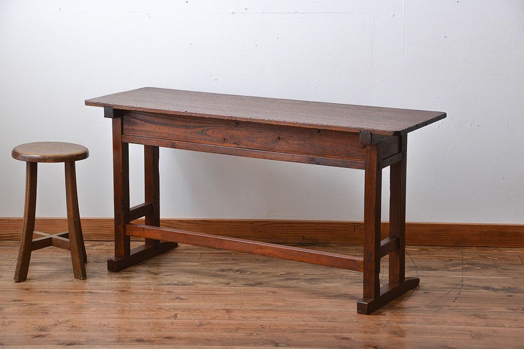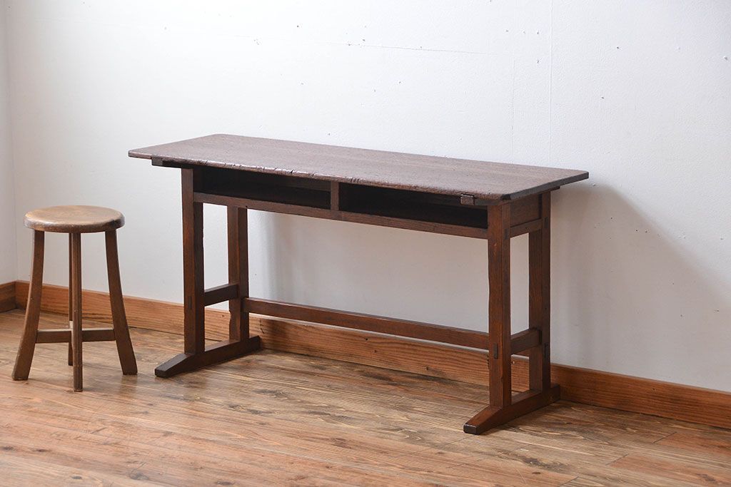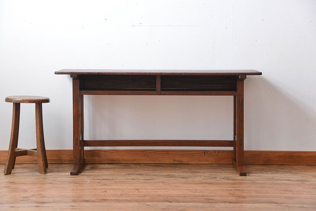 レトロ家具 昭和レトロ 古い学校の木製アンティークデスク(平机)