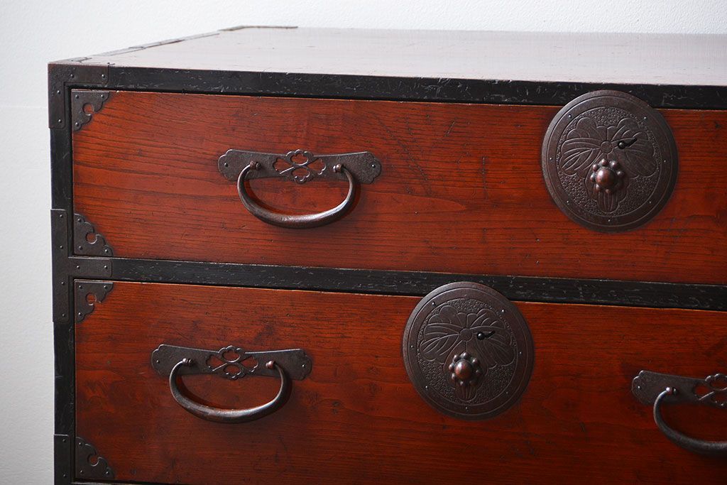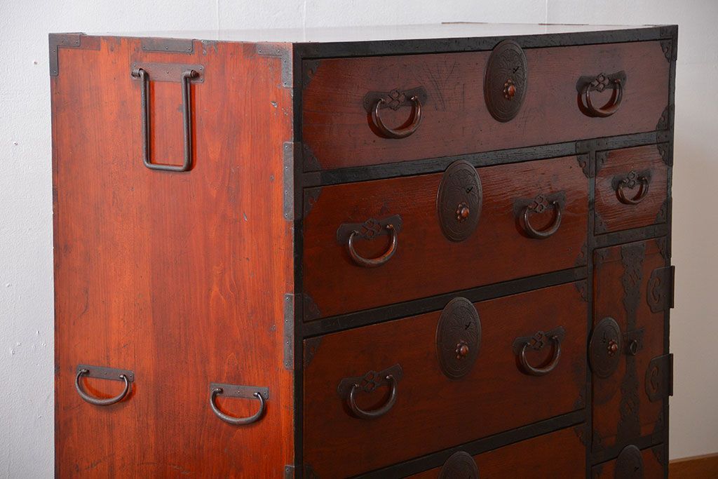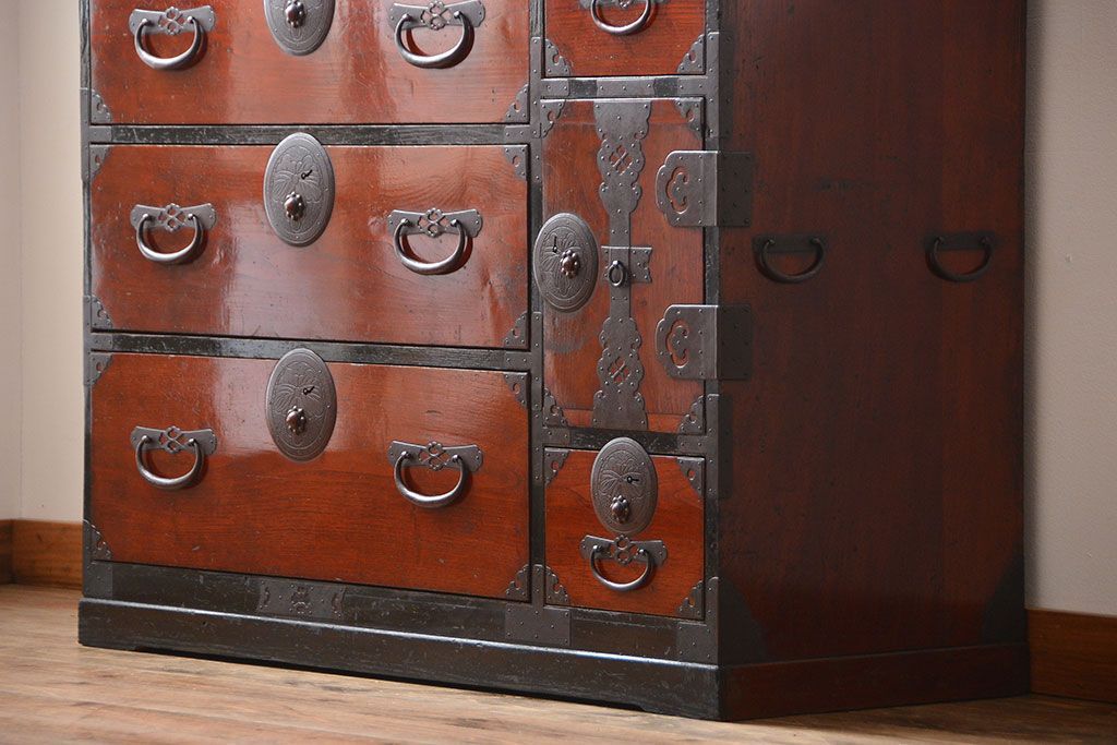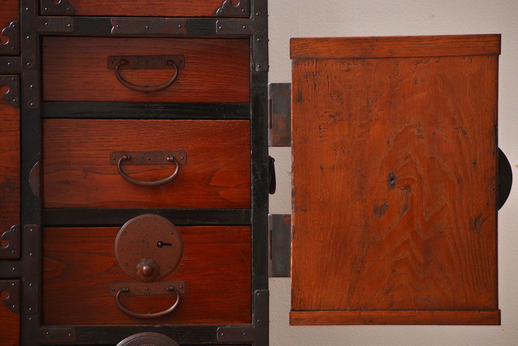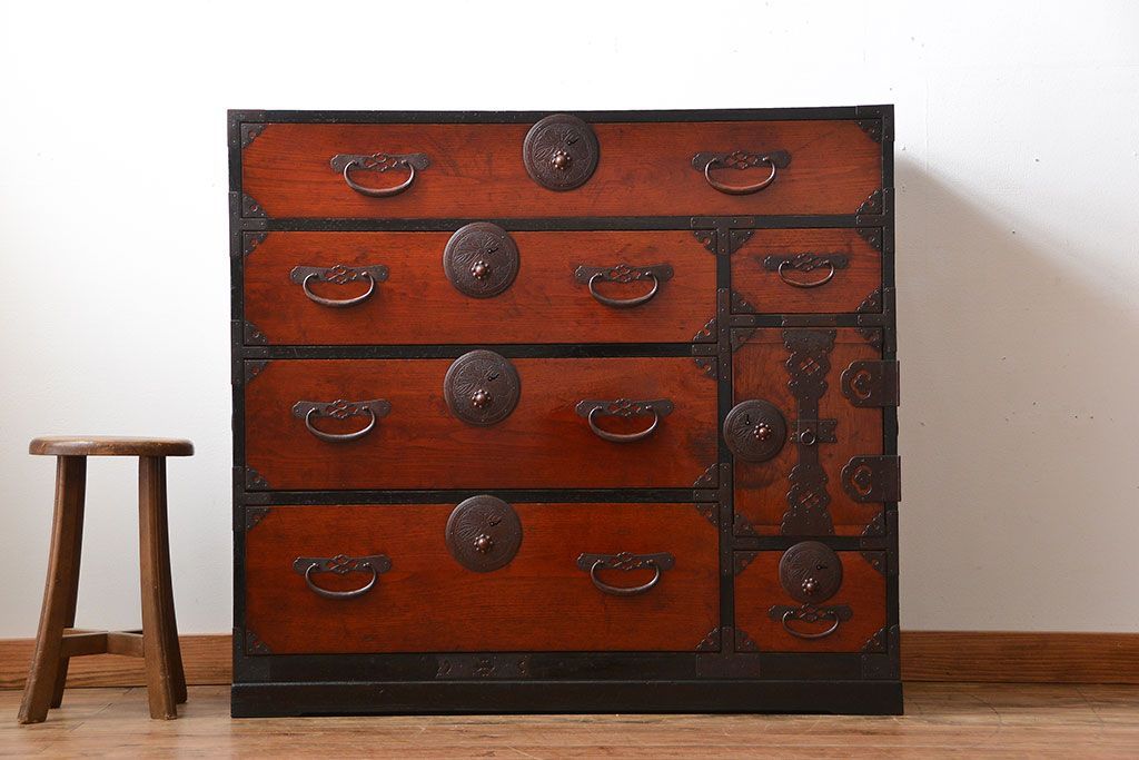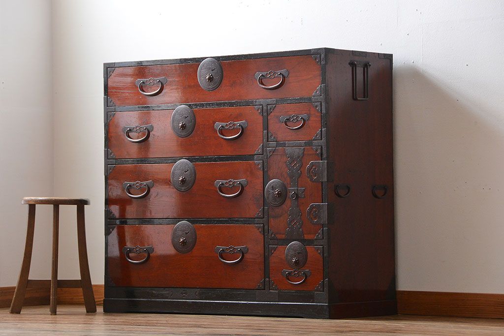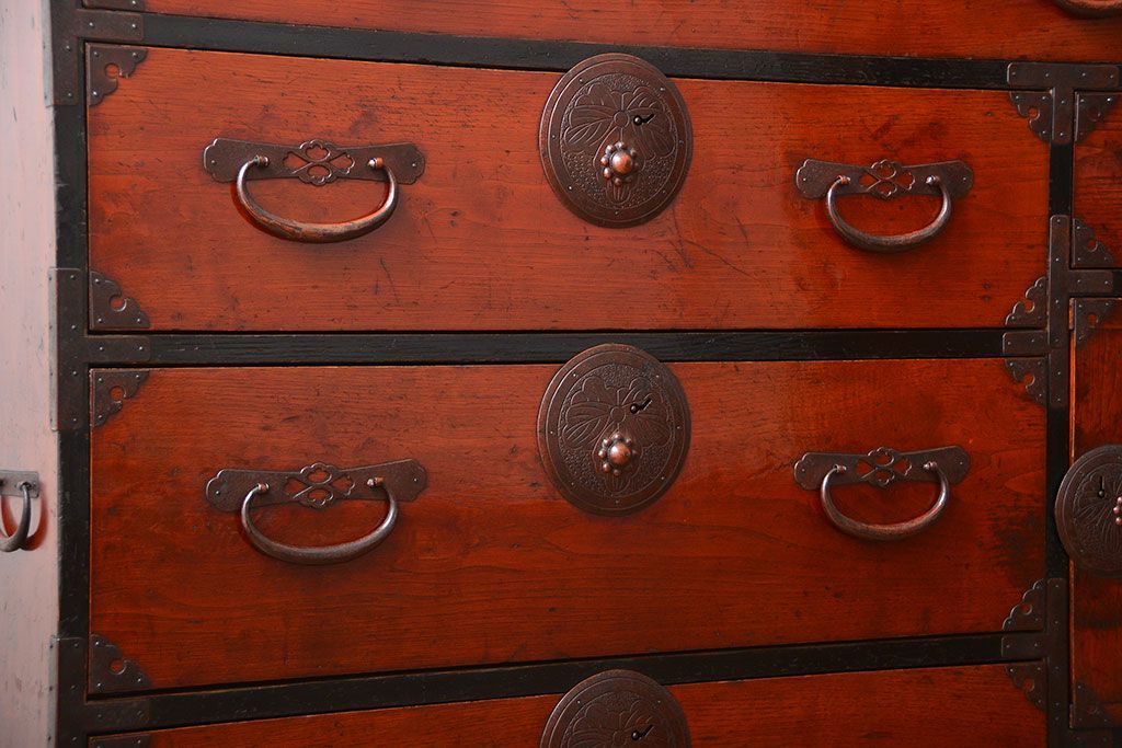 アンティーク家具 古民具・骨董 前面栗材のアンティーク最上箪笥