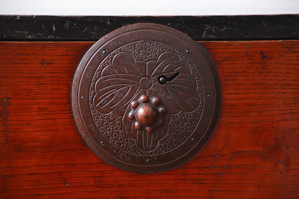 古民具・骨董 前面栗材のアンティーク最上箪笥です。
