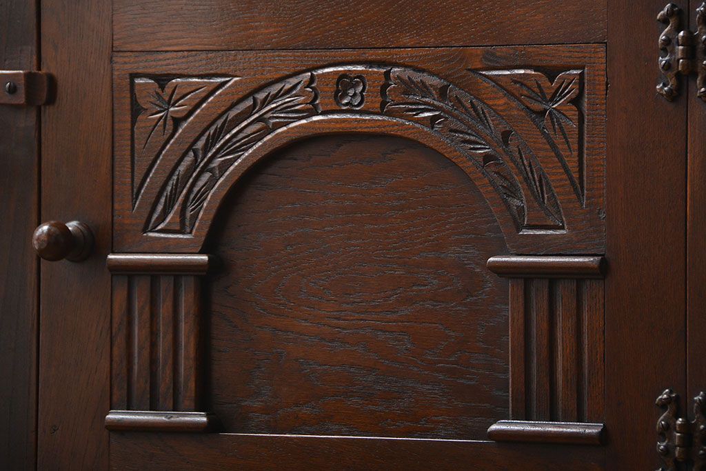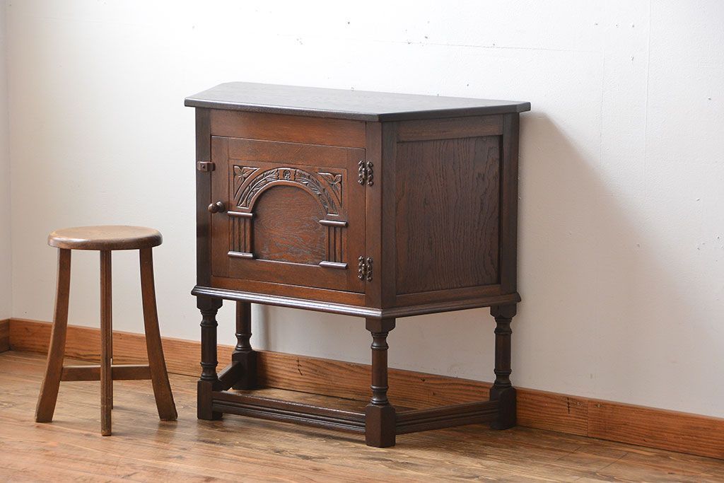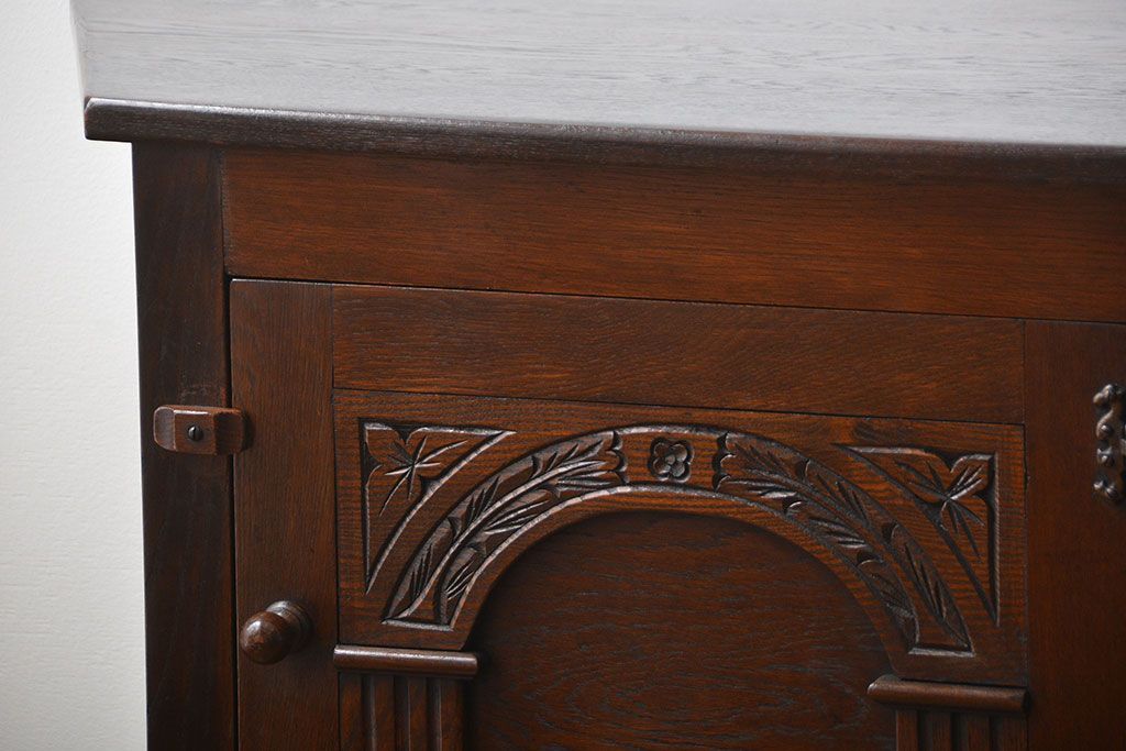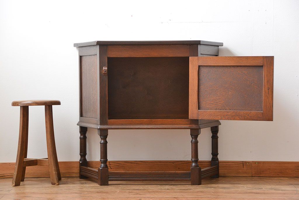 ヴィンテージ家具 イギリスビンテージ オーク材の戸棚付きコンソールテーブル(サイドテーブル)