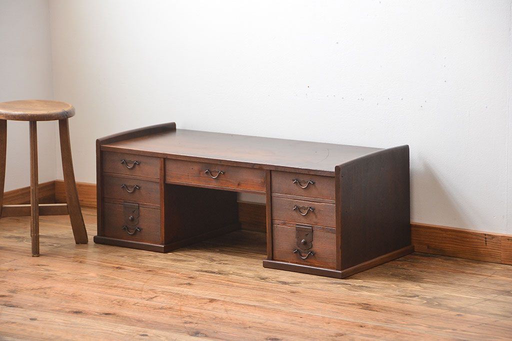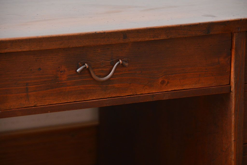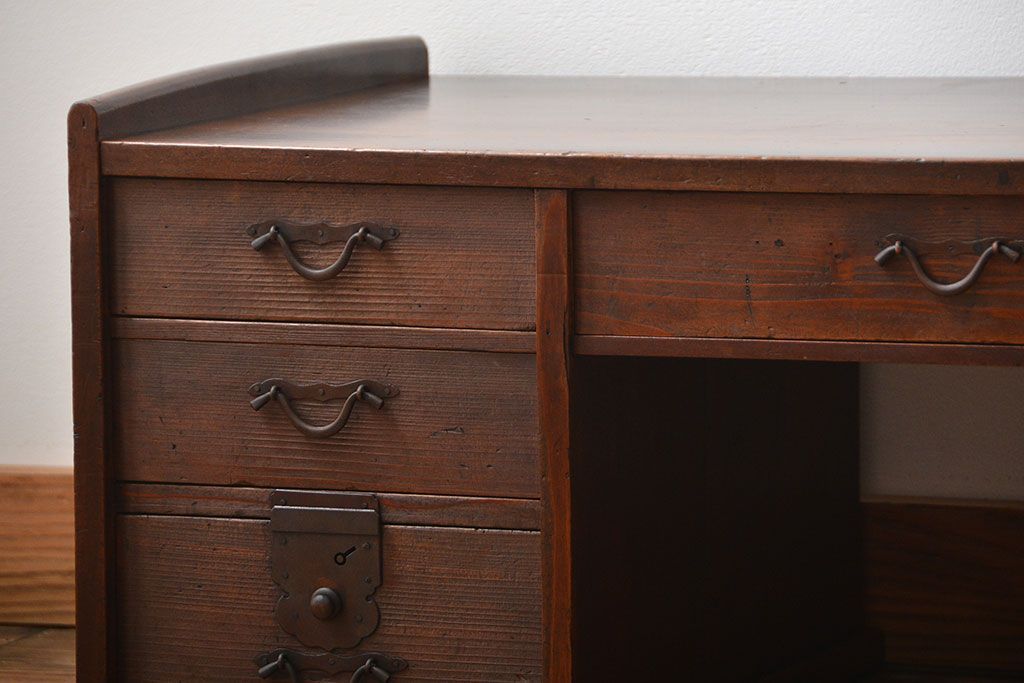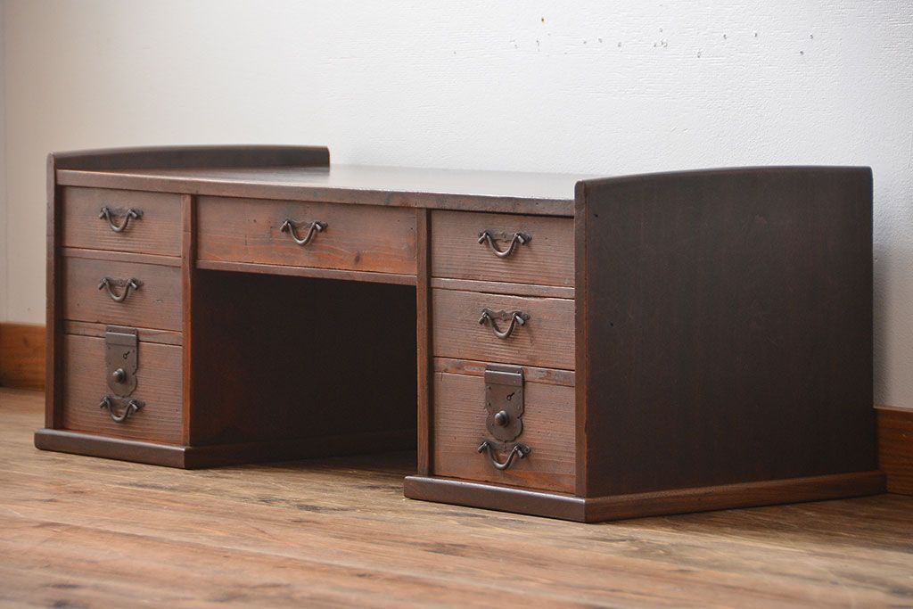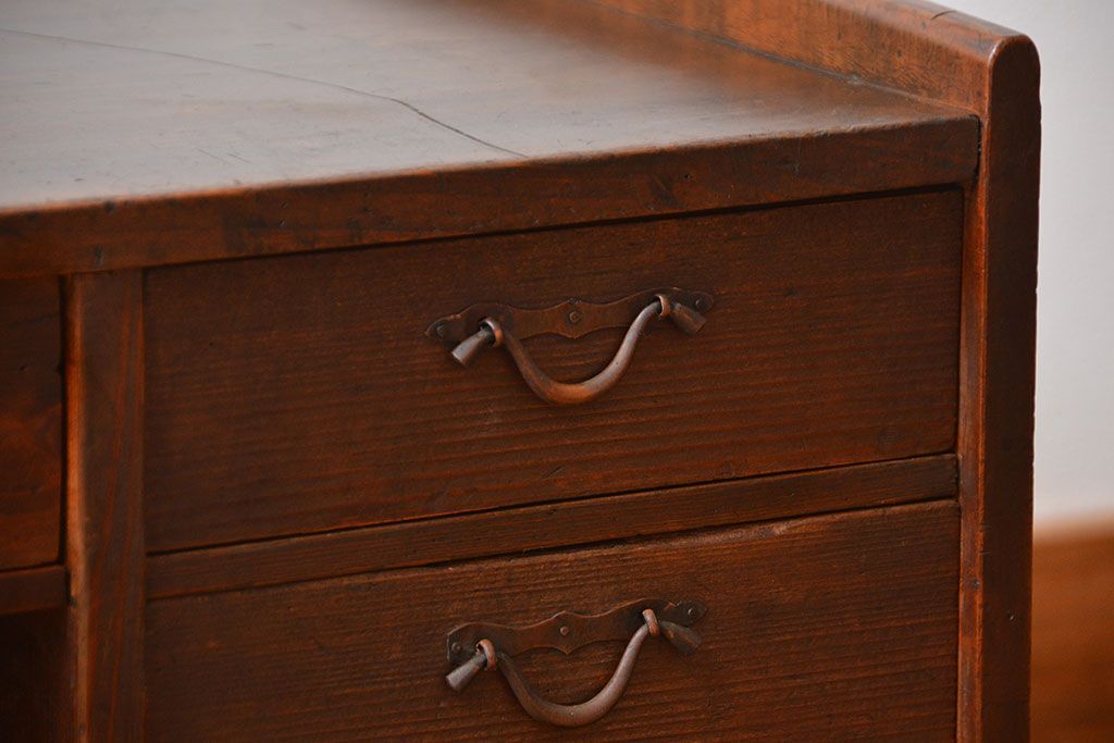 アンティーク家具 古民具・骨董 古い木製のアンティーク両袖帳場机