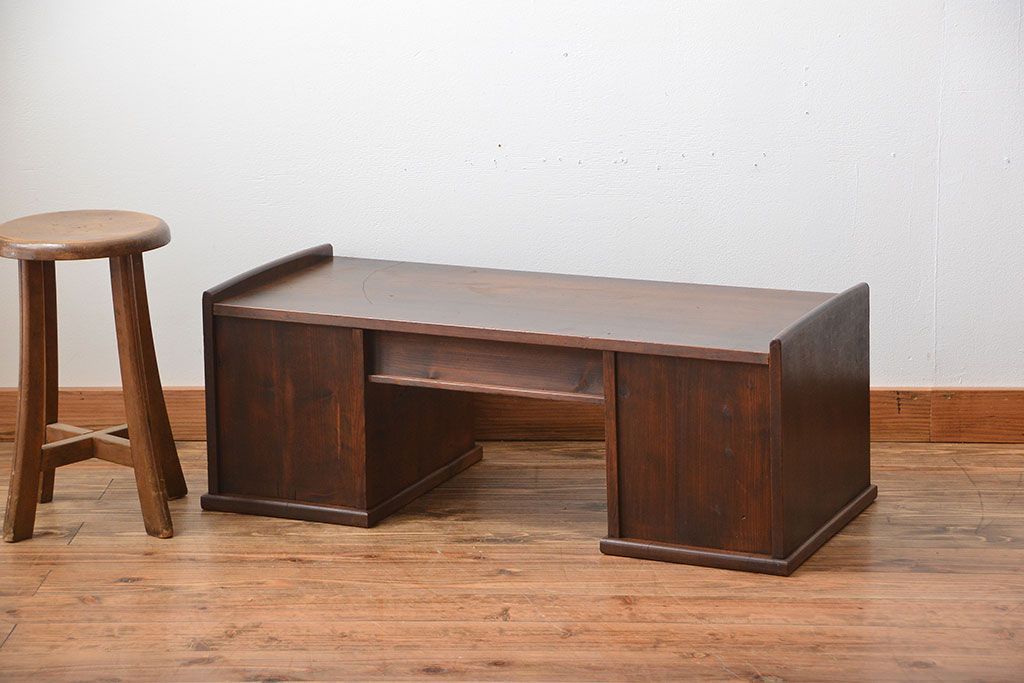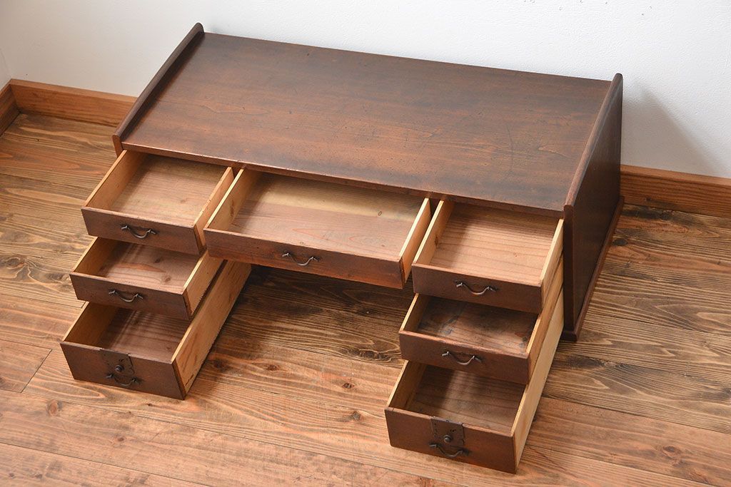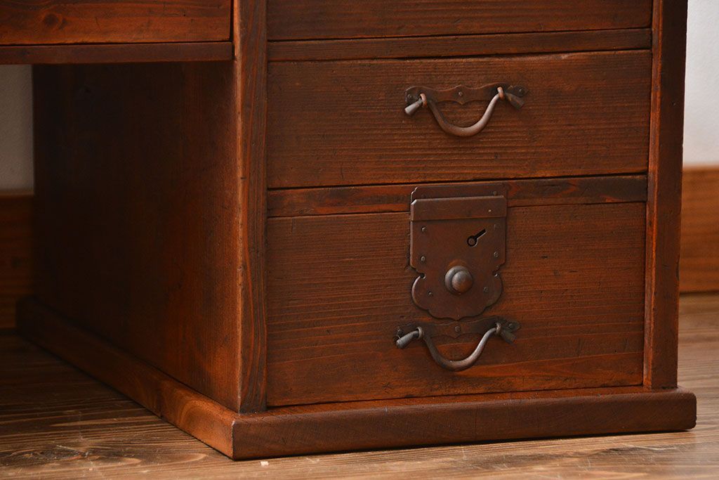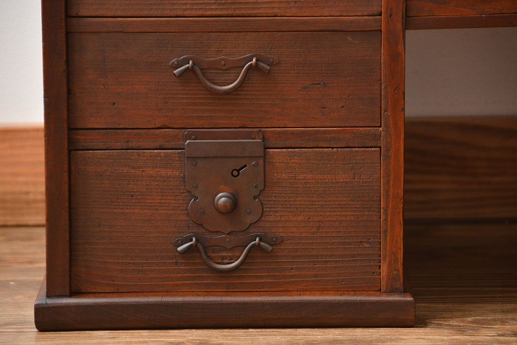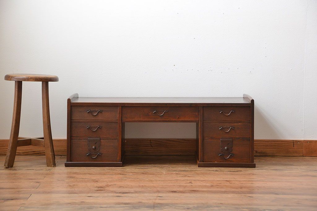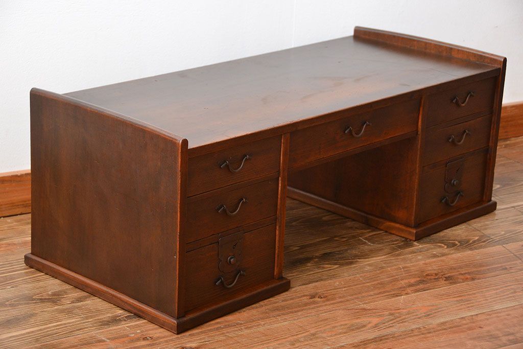 アンティーク家具 古民具・骨董 古い木製のアンティーク両袖帳場机
