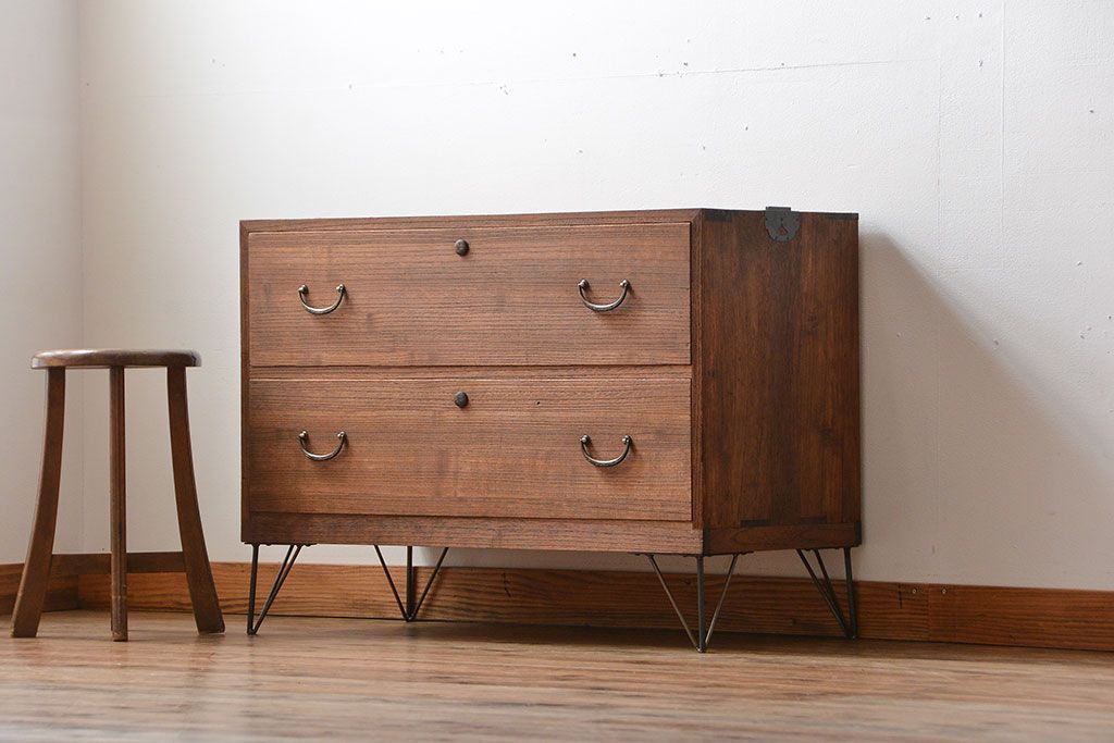 アンティーク家具 和製アンティーク 鉄脚付き古い桐箪笥ローボード(2)