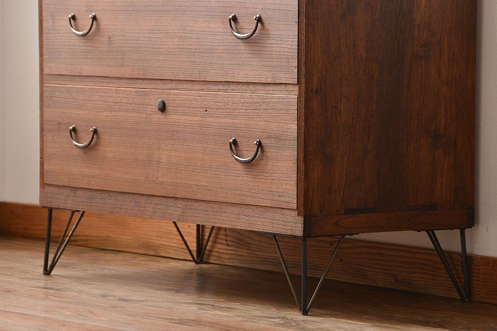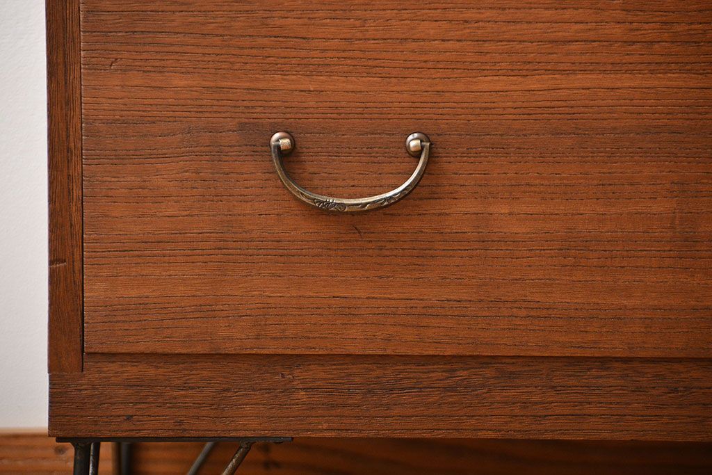 ラフジュ工房> キャビネット・戸棚> テレビ台・ローボード > アンティーク家具 和製アンティーク 鉄脚付き古い桐箪笥ローボード(2)
