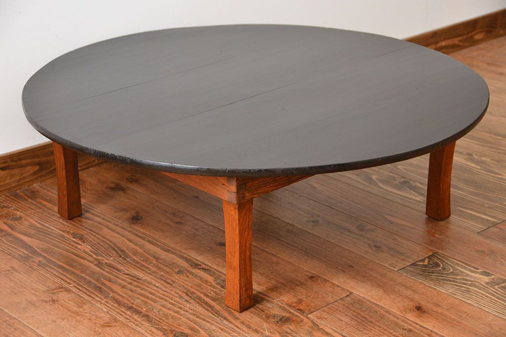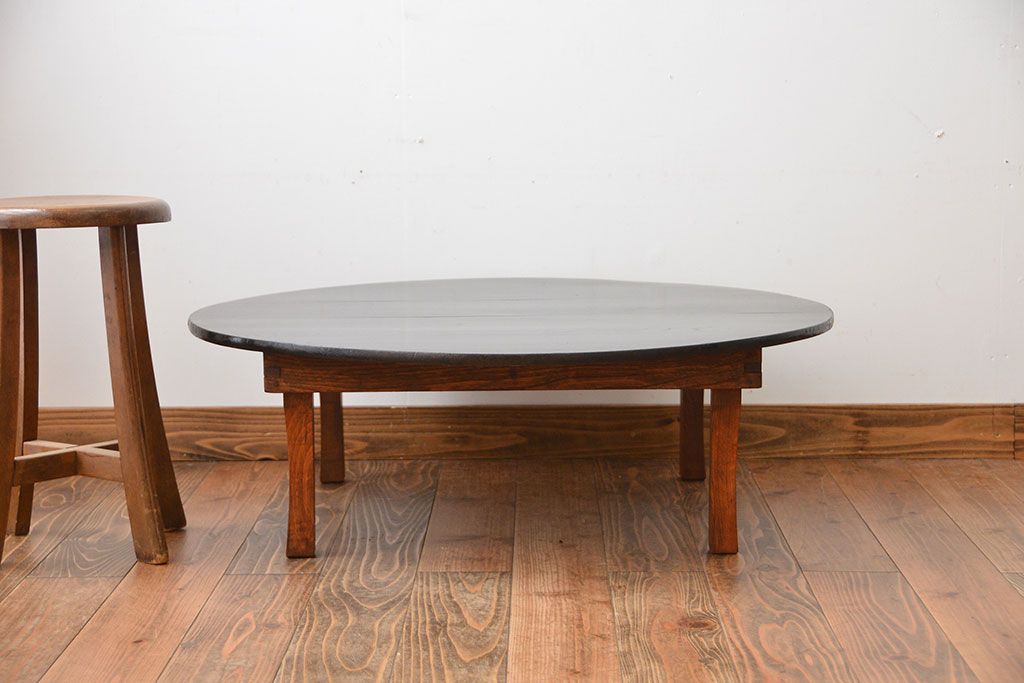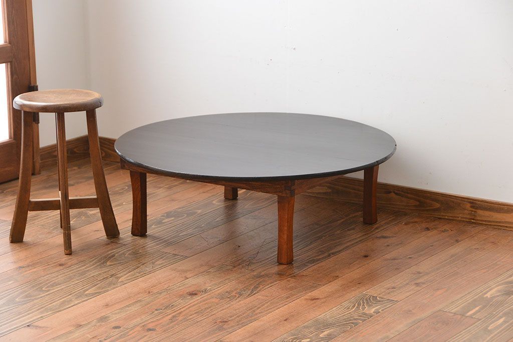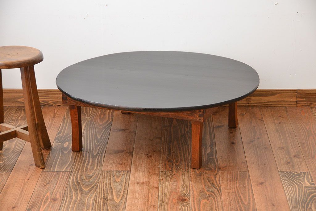 アンティーク家具 和モダンスタイル 天板ブラック塗装!古い木製の丸ちゃぶ台