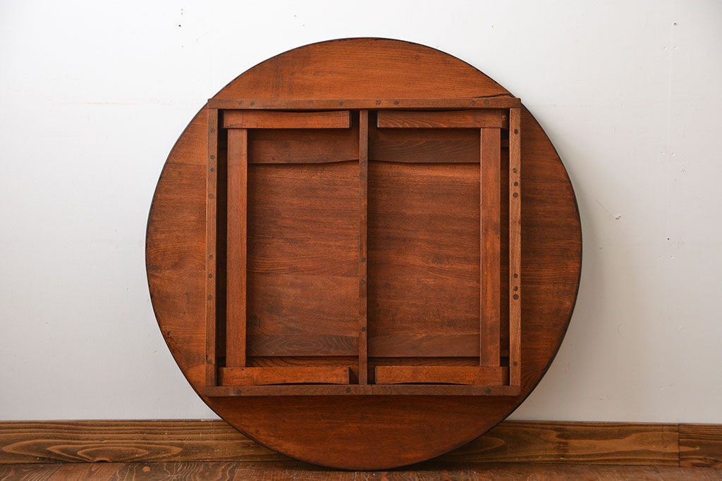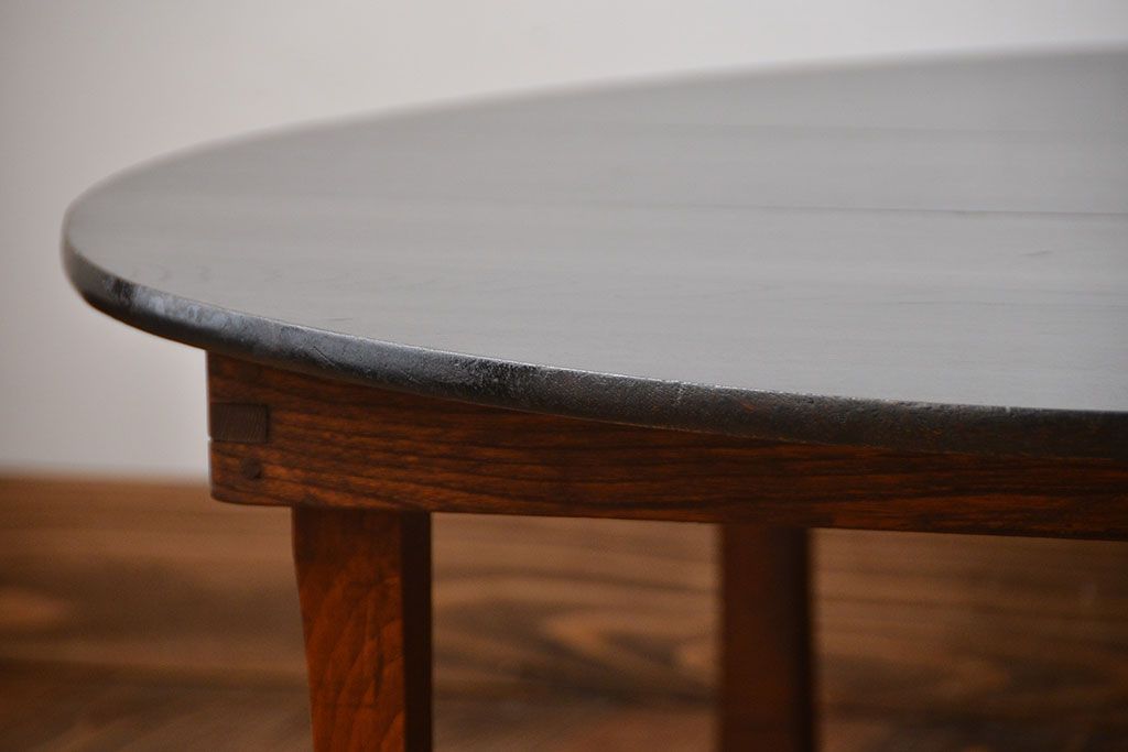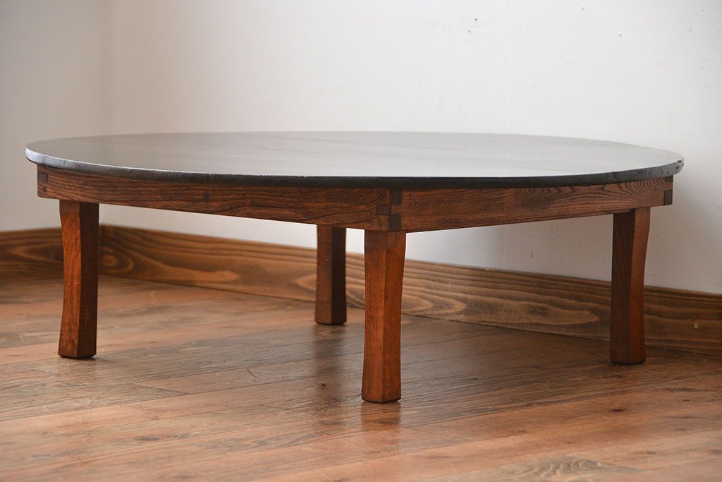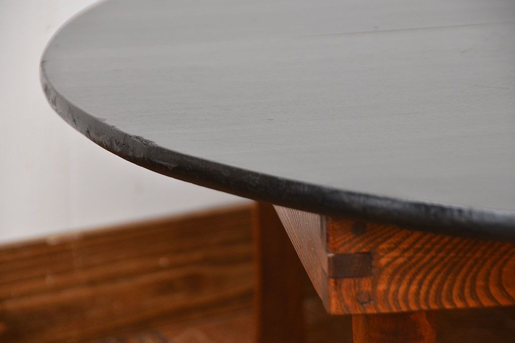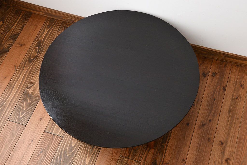 アンティーク家具 和モダンスタイル 天板ブラック塗装!古い木製の丸ちゃぶ台