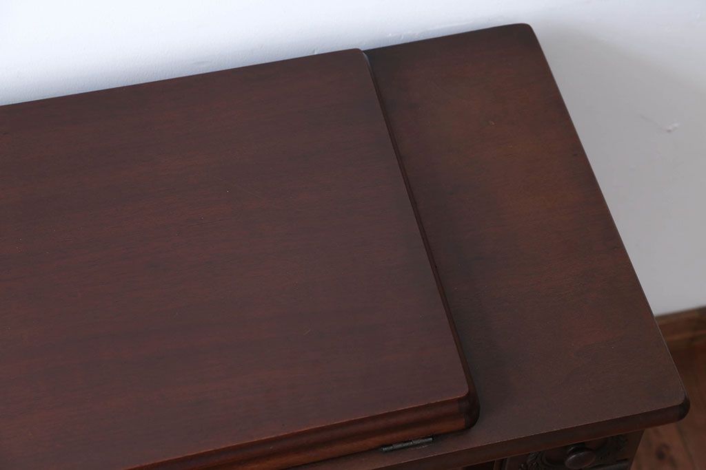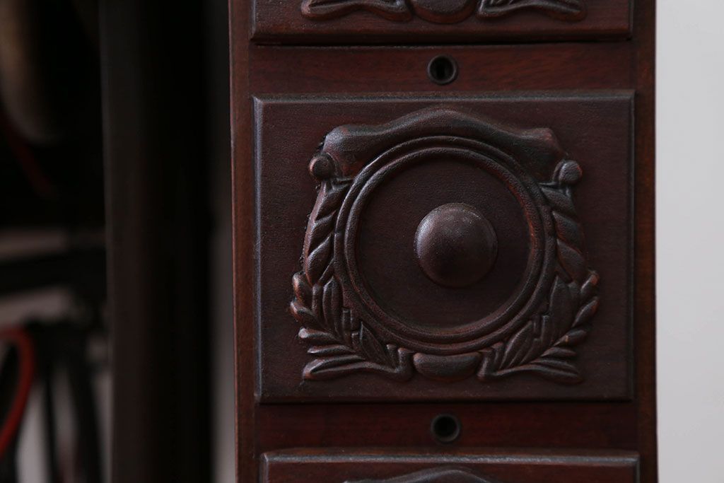 こちらは引き出しが左右に3つずつ付いた大変珍しい一品です。