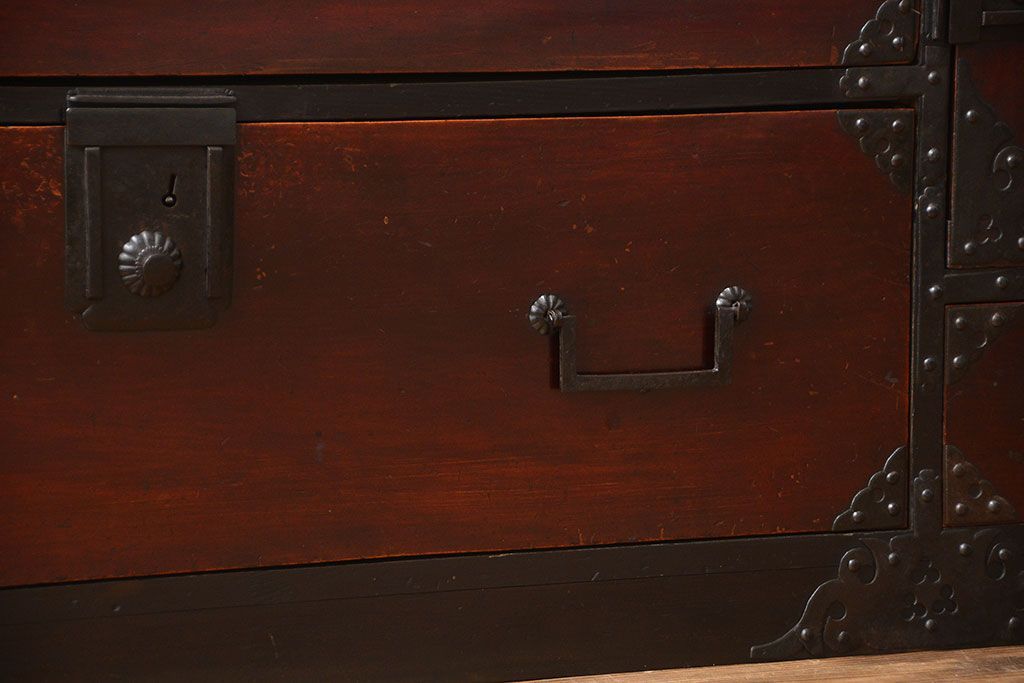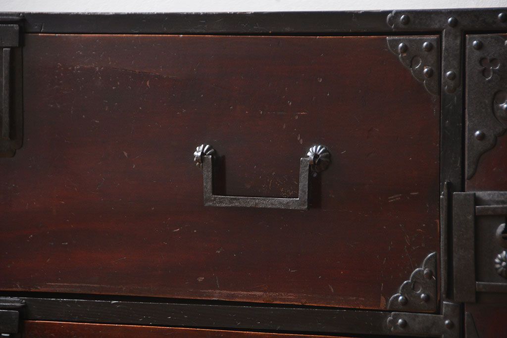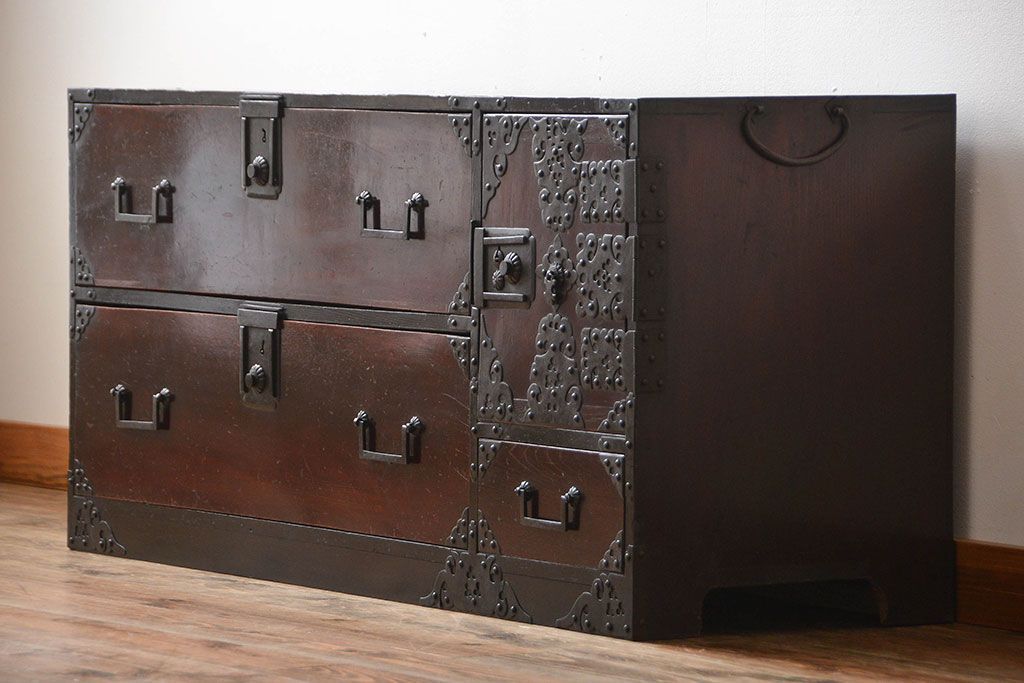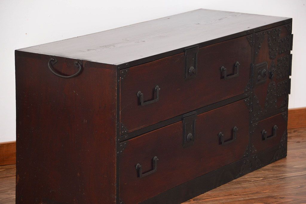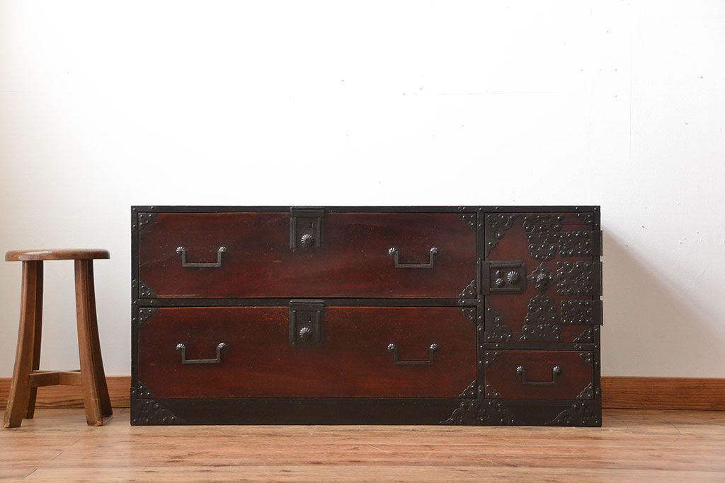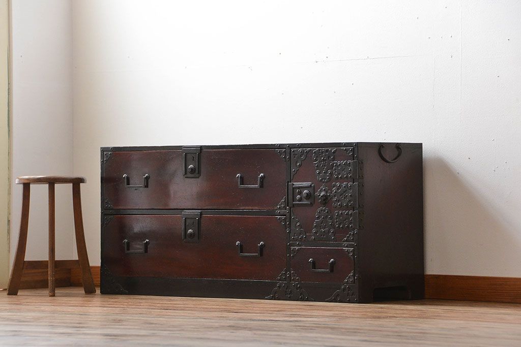 古民具・骨董 金具が立派なアンティーク時代箪笥ローボードです。