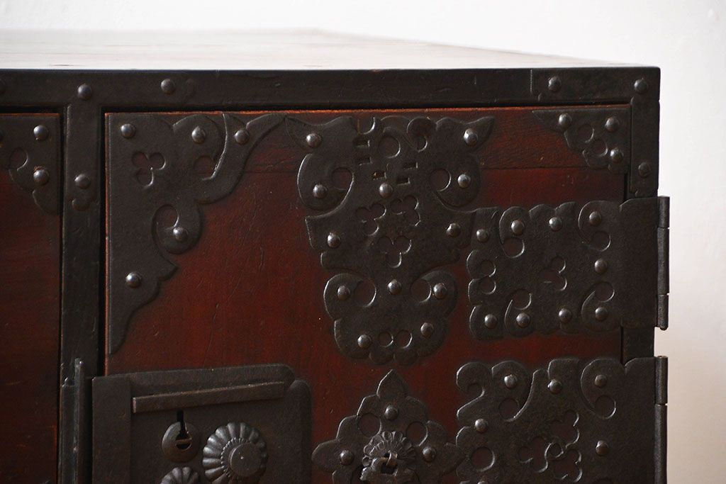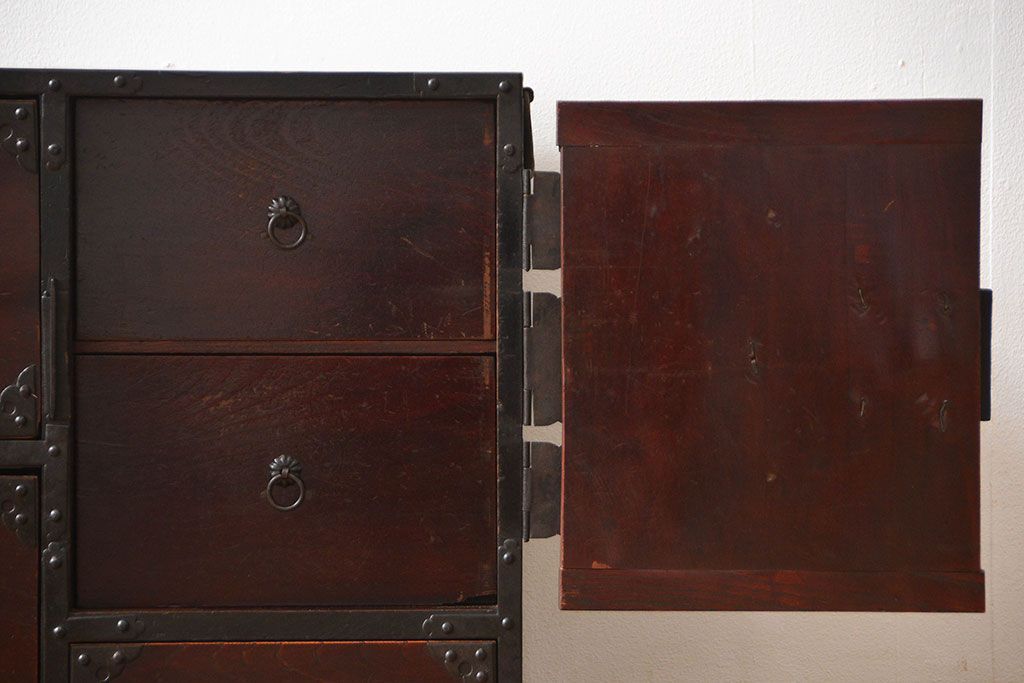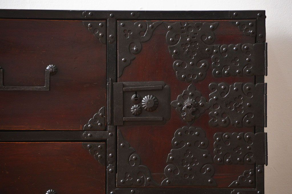 アンティーク家具 古民具・骨董 金具が立派なアンティーク時代箪笥ローボード