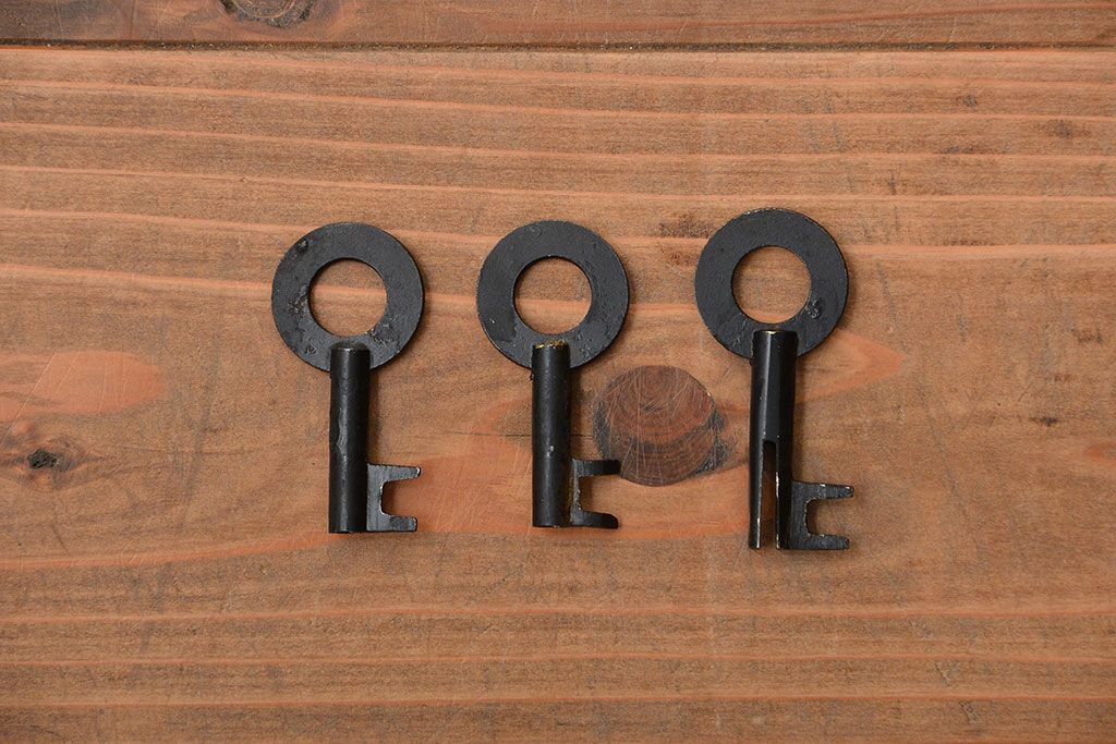 鍵は付属します。画像にありますように、袋に入れお付けします。スムーズに動くように調整していますが、あくまでも古いものや中古品ですので、長期の使用保証は出来かねます。ご購入後不具合が発生した場合は、当店でサポートさせていただきますので、お気軽にご相談くださいませ。