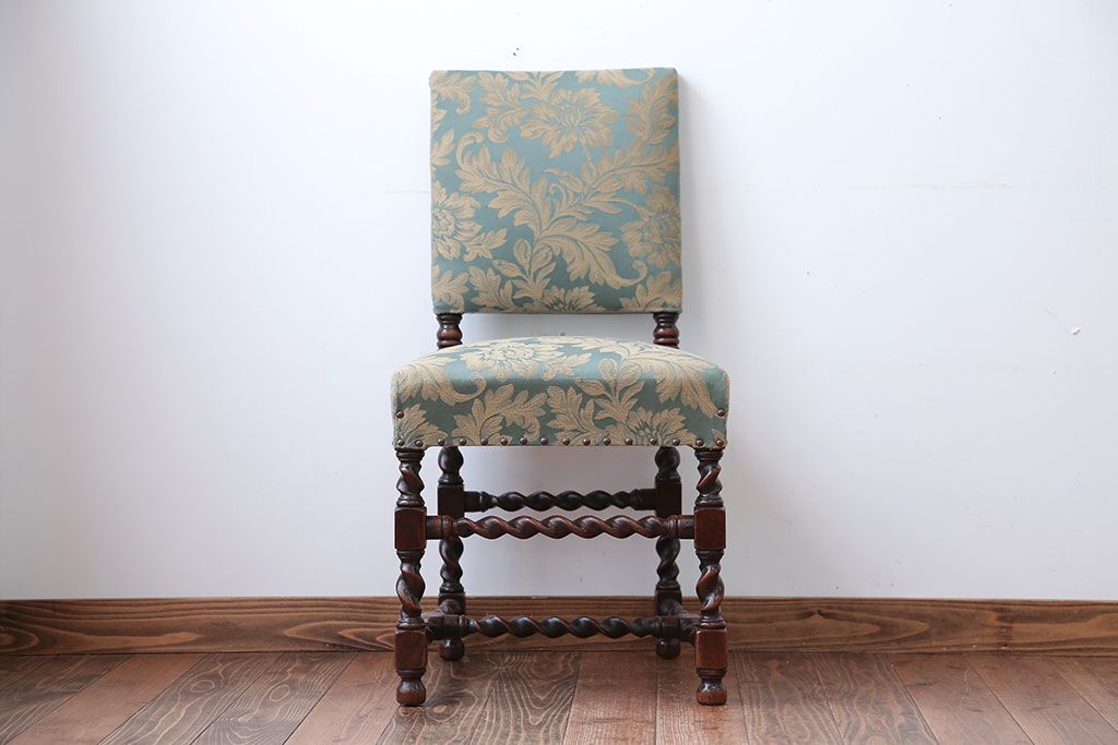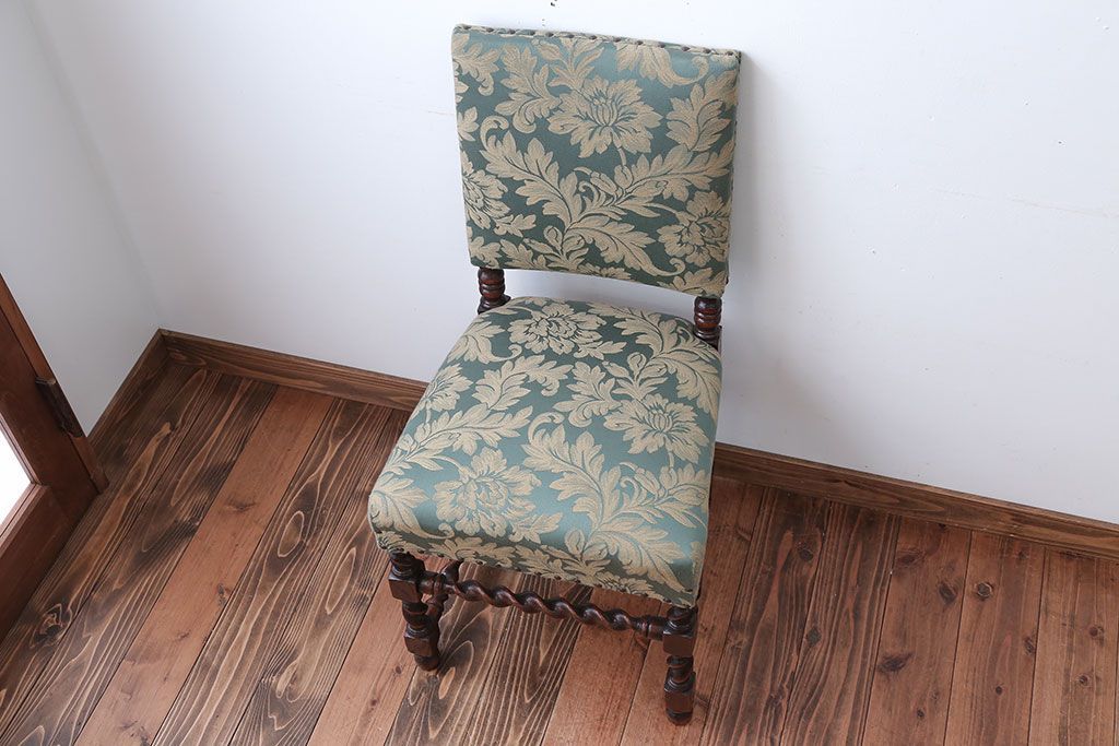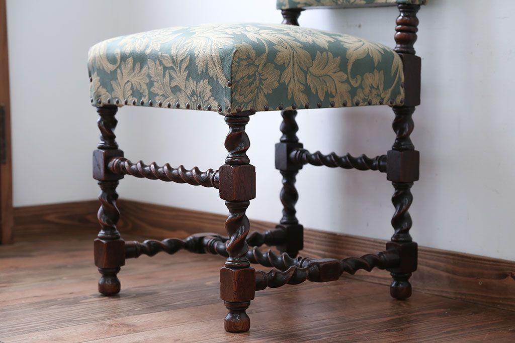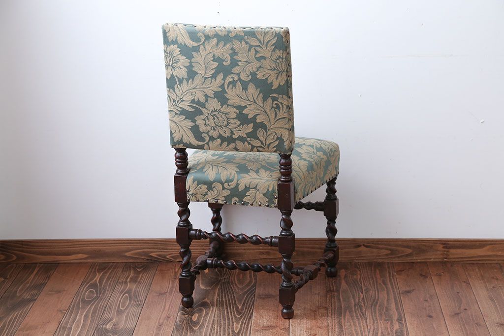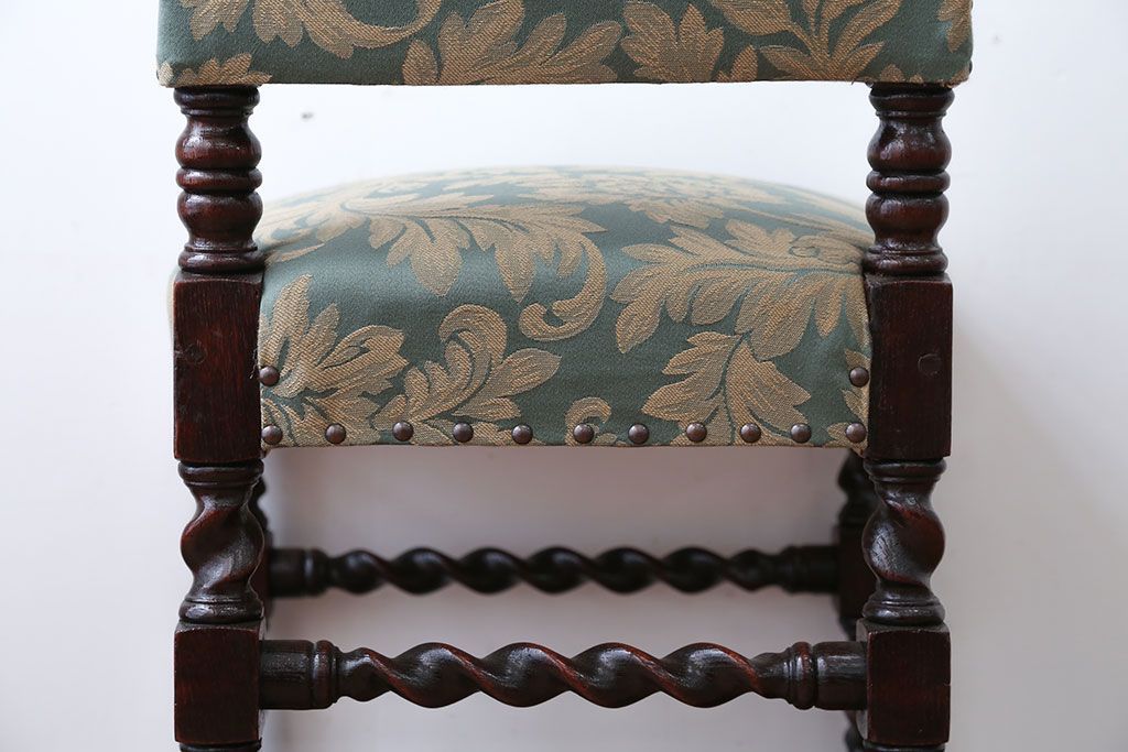 中古 イギリス製 オーク材の優雅なツイストレッグダイニングチェア(2)です。
