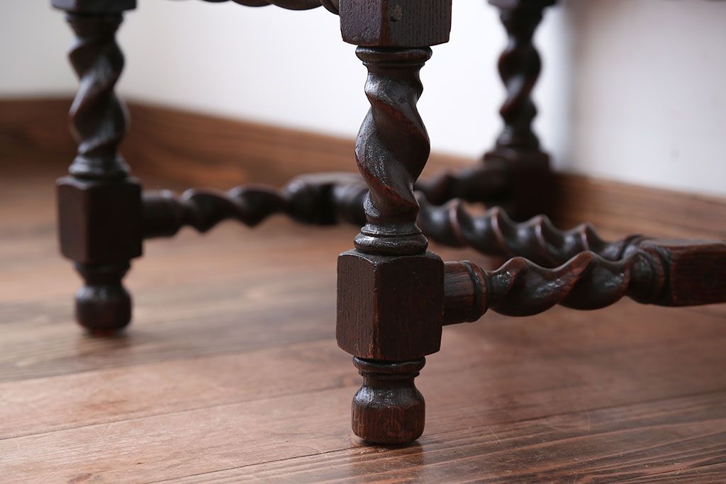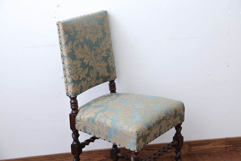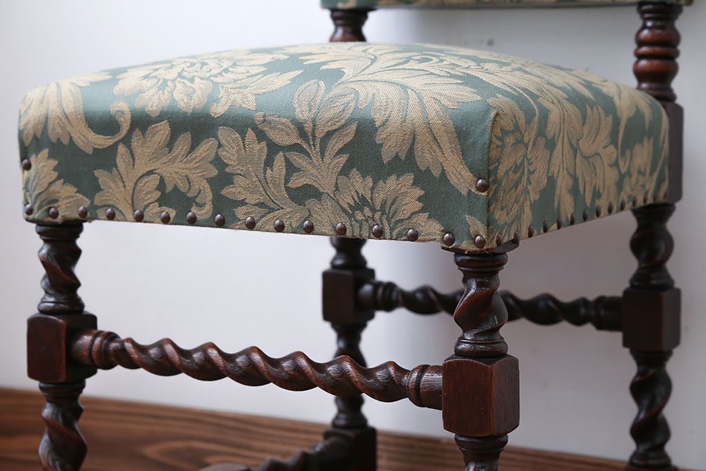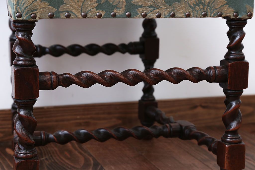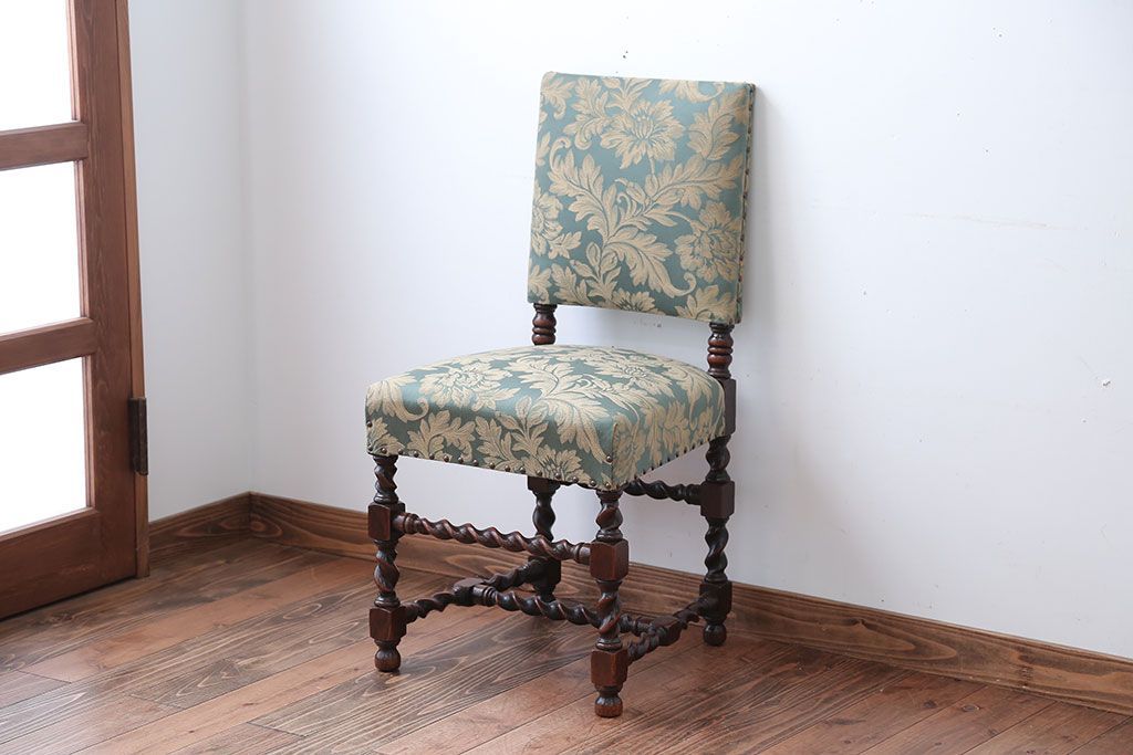 中古 イギリス製 オーク材の優雅なツイストレッグダイニングチェア(2)です。
