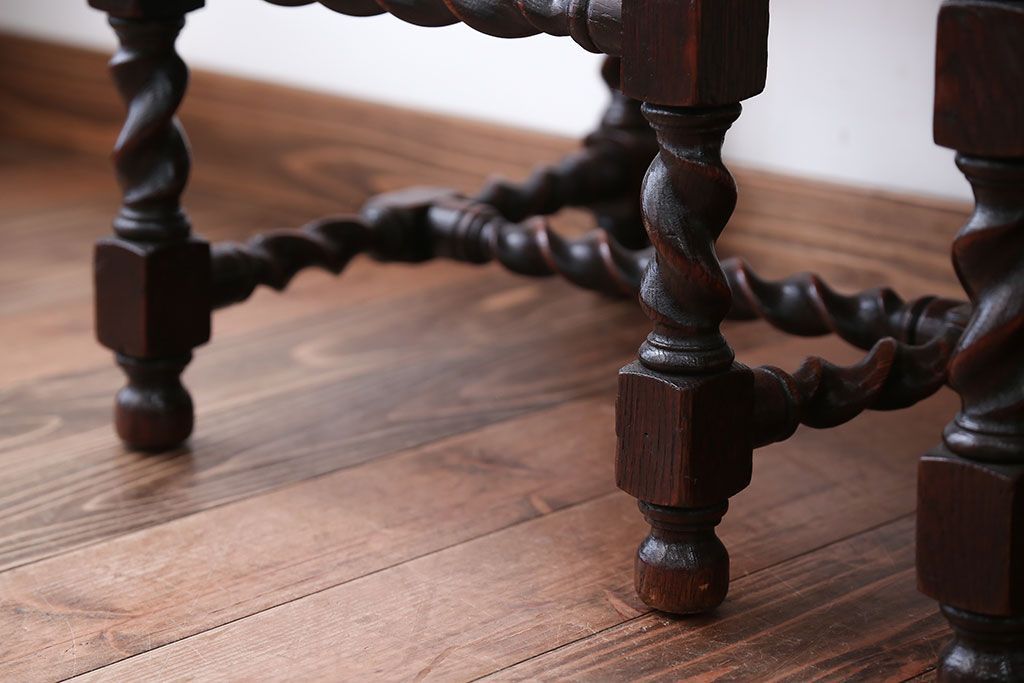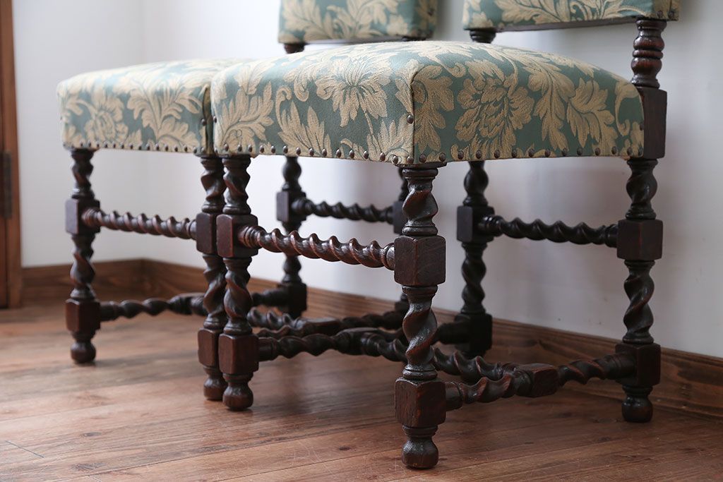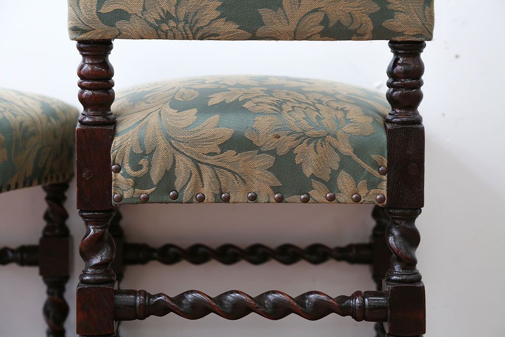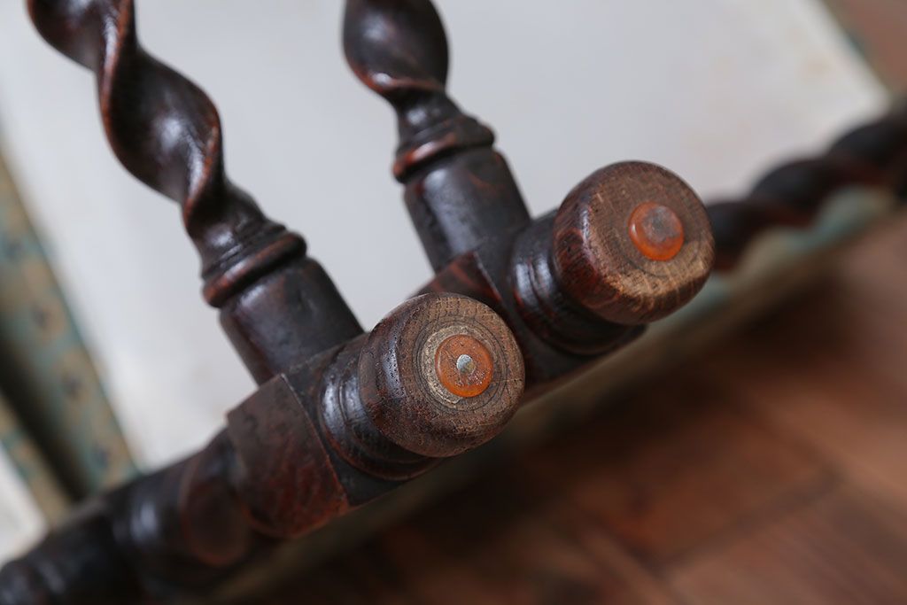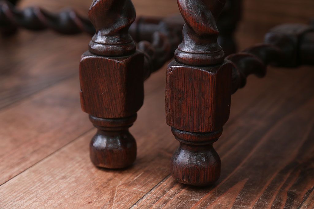 中古 イギリス製 オーク材の優雅なツイストレッグダイニングチェア2脚セット(1)