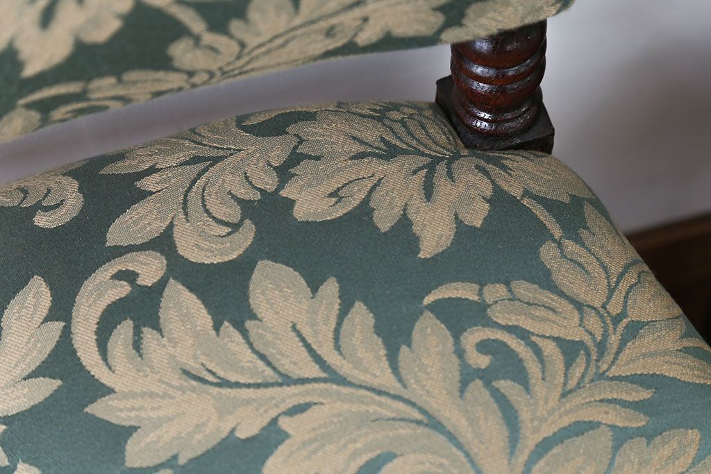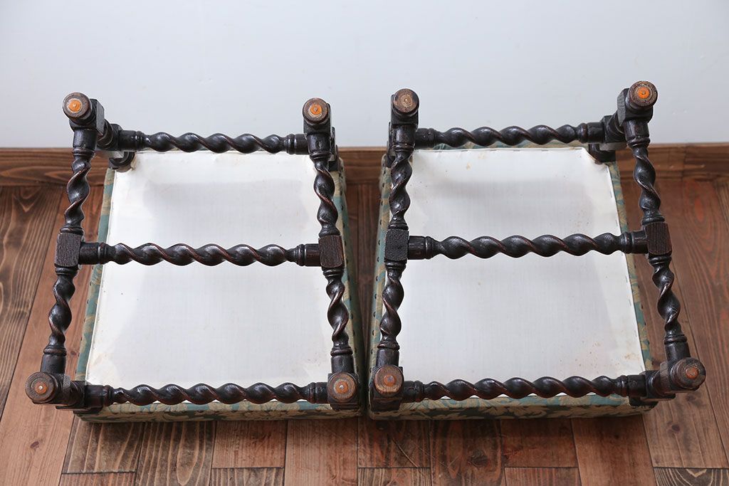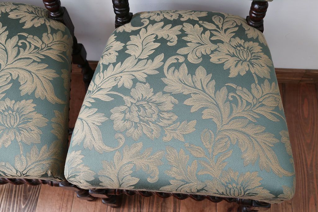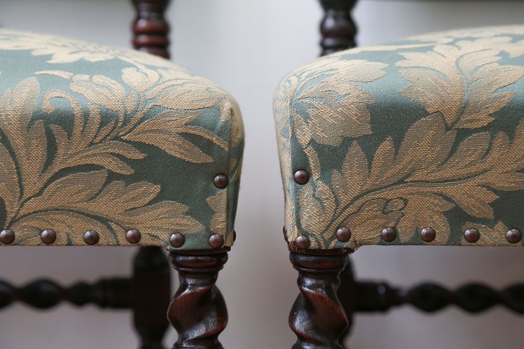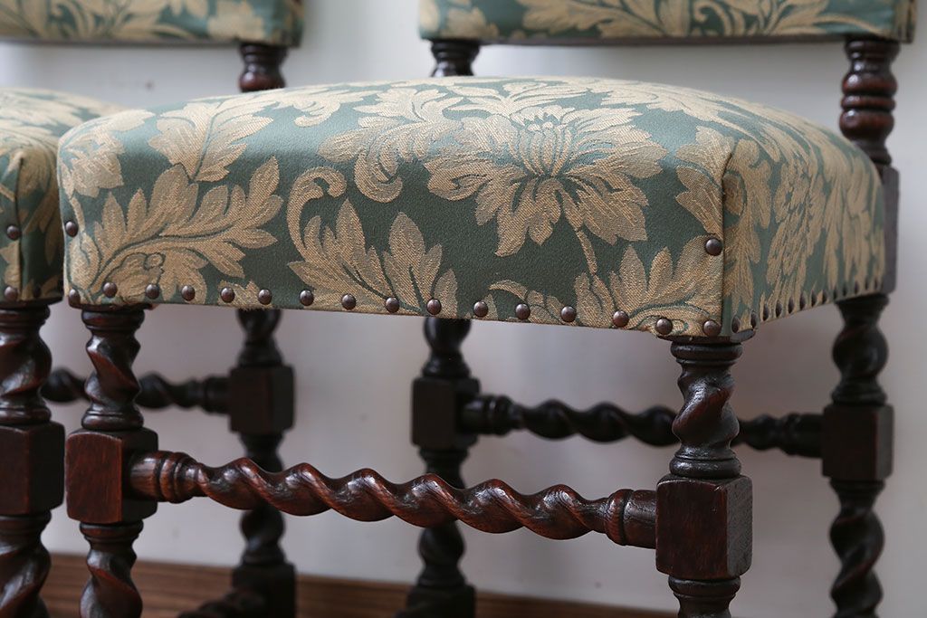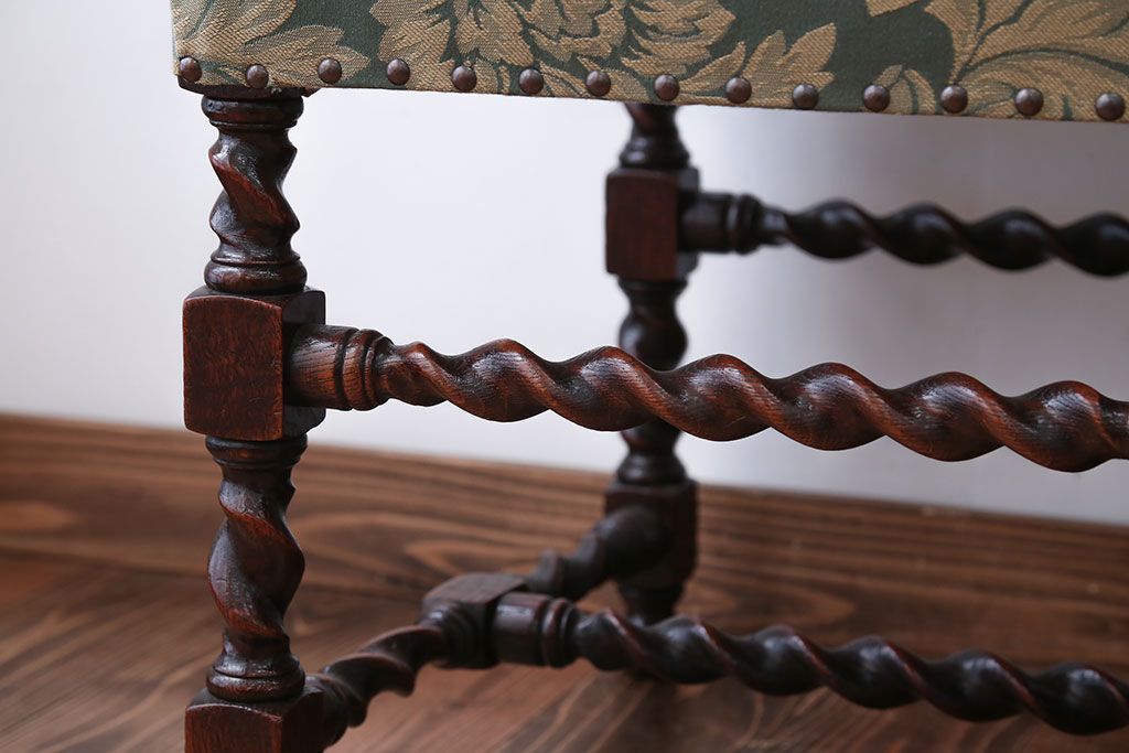 中古 イギリス製 オーク材の優雅なツイストレッグダイニングチェア2脚セット(1)