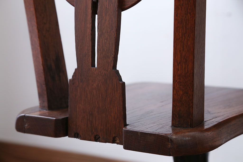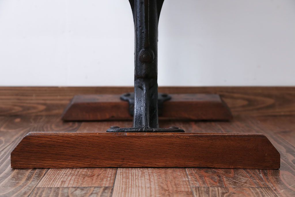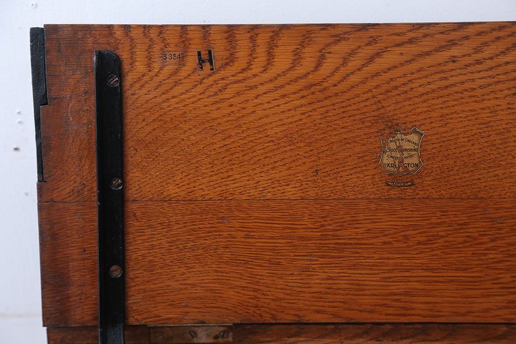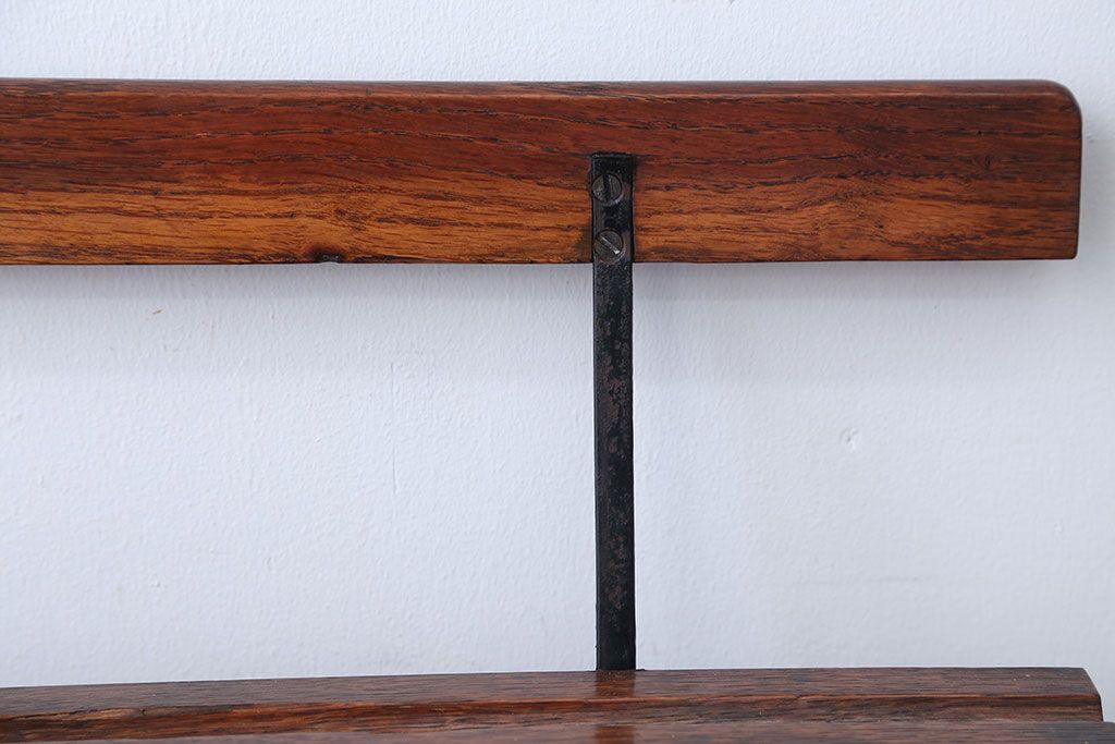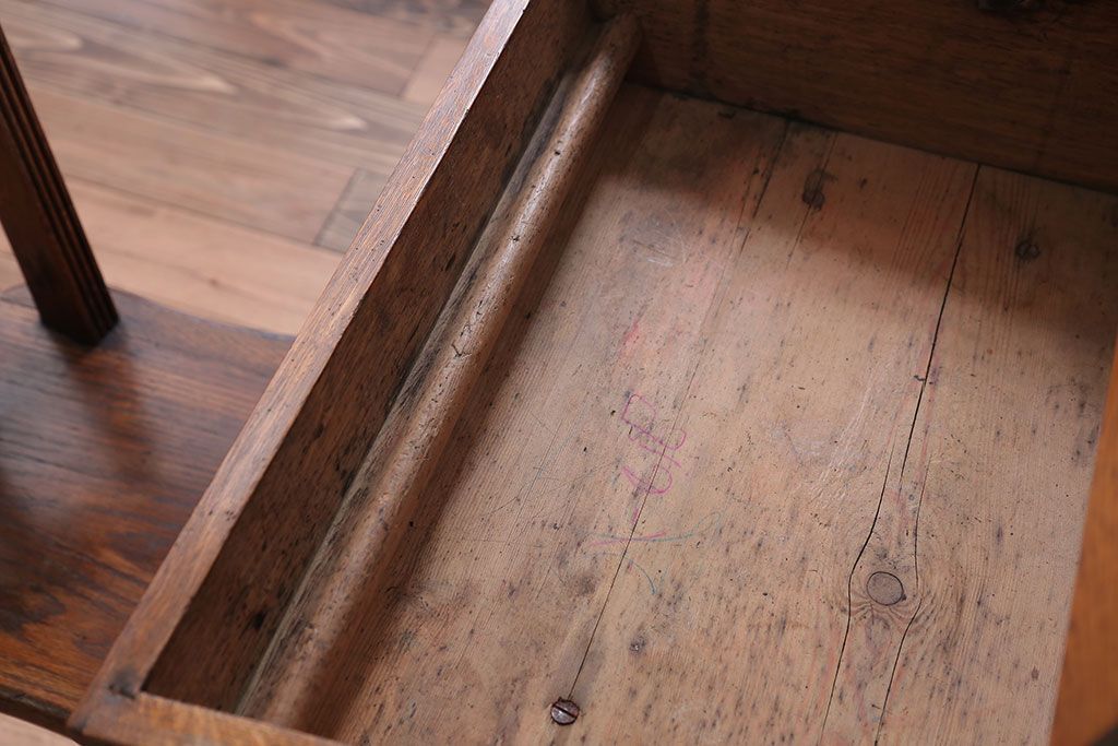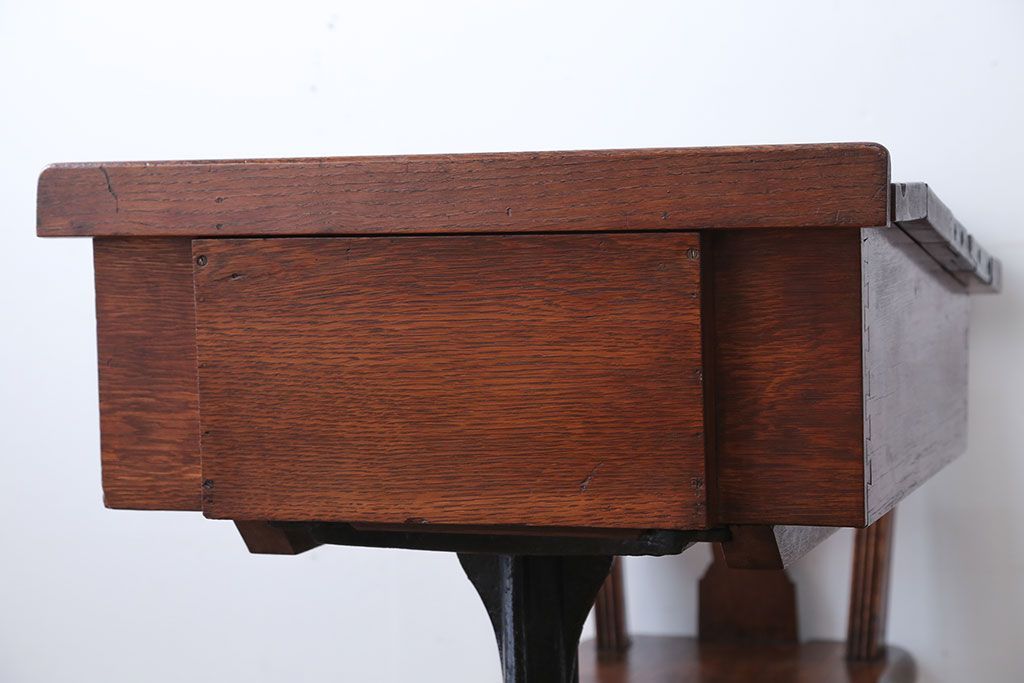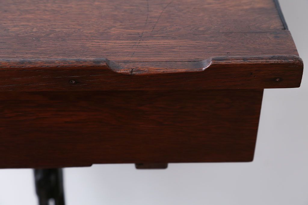 アンティーク家具 イギリスアンティーク オーク材!チェア付き鉄脚スクールデスク