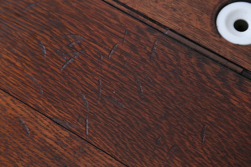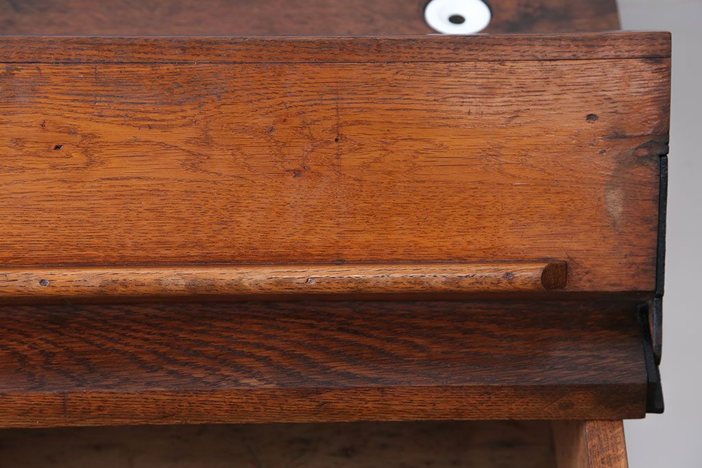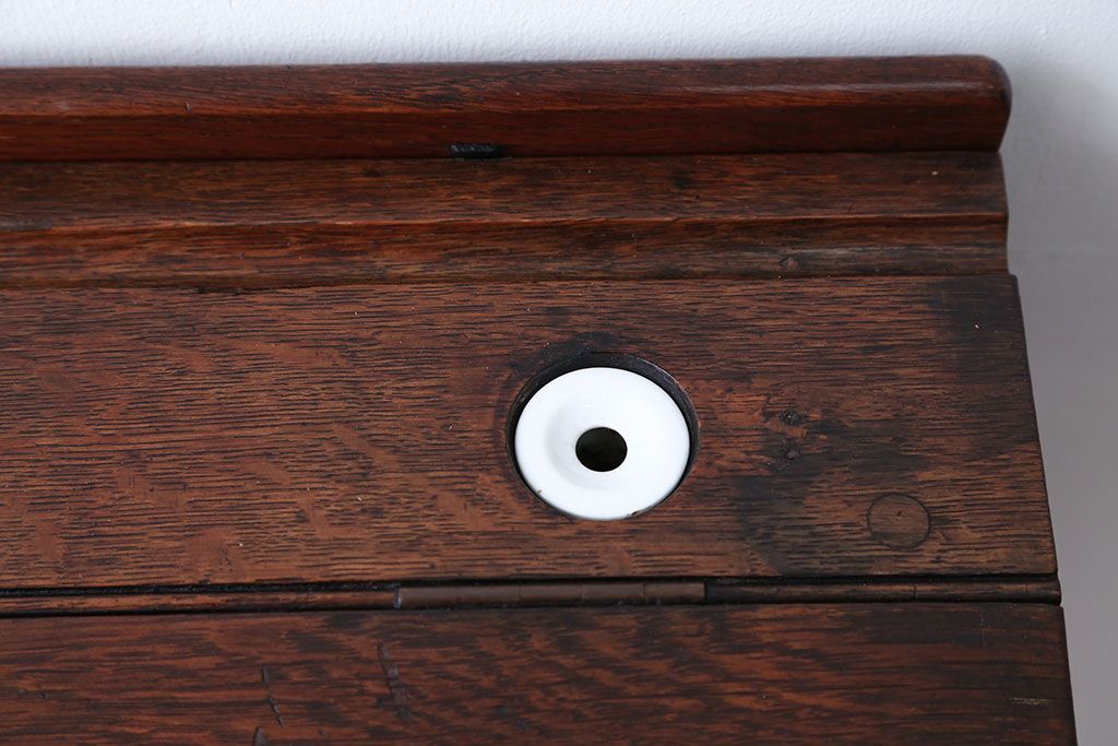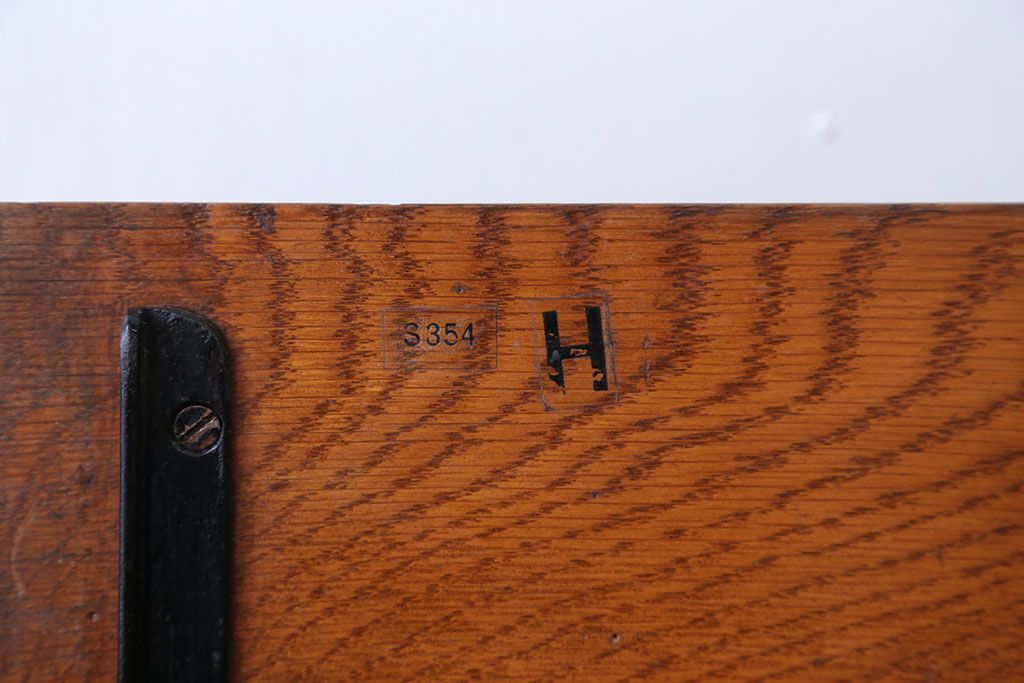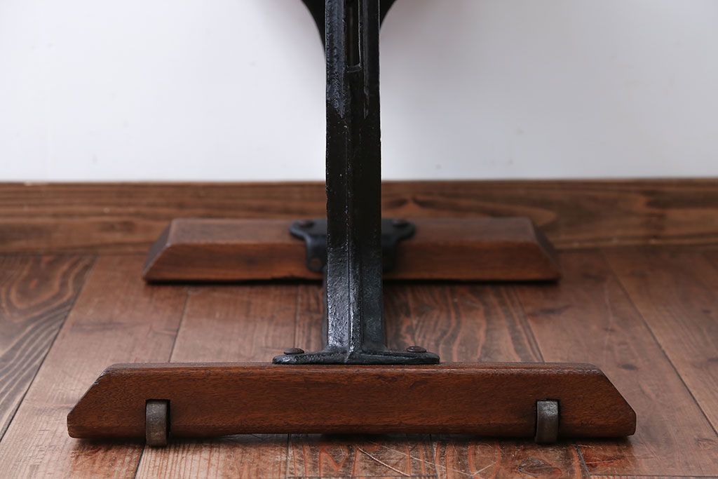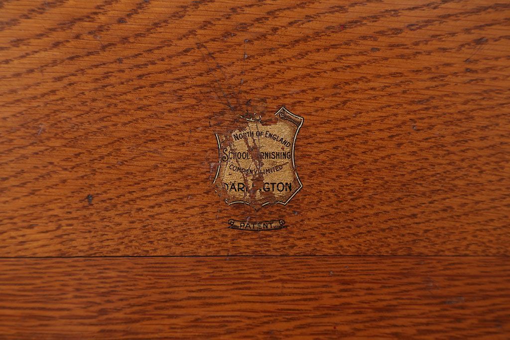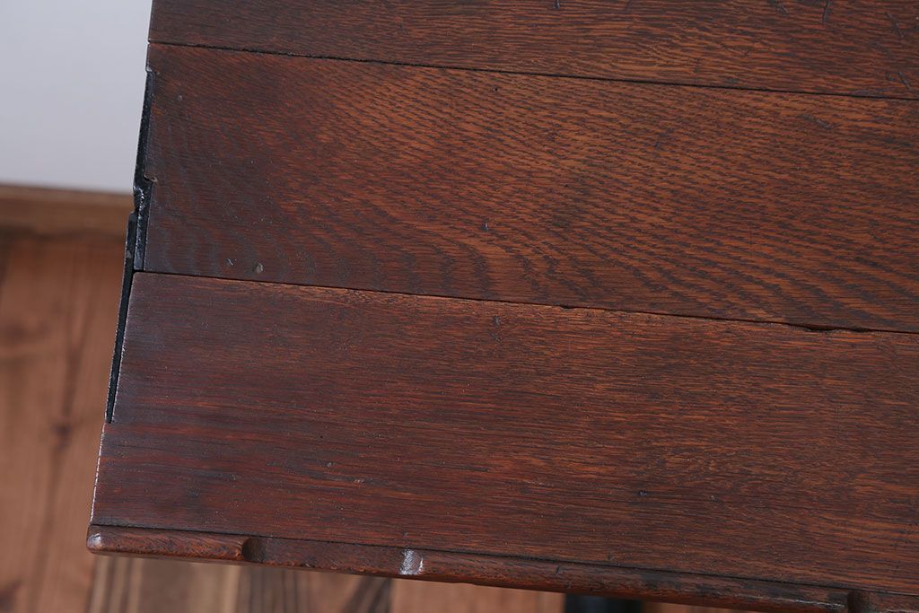 アンティーク家具 イギリスアンティーク オーク材!チェア付き鉄脚スクールデスク