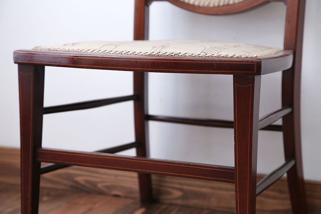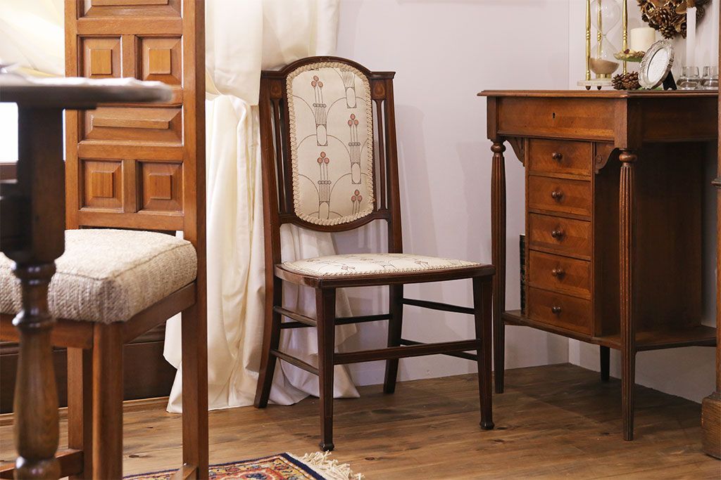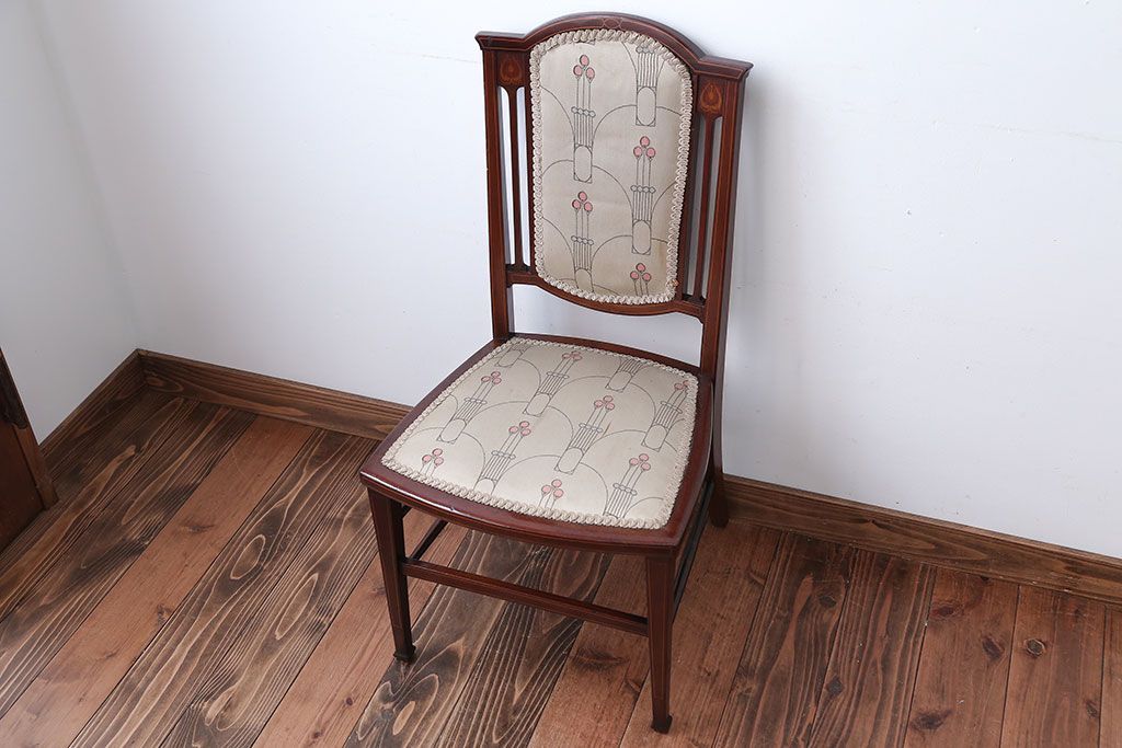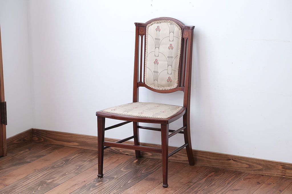 レトロ家具 イギリスアンティーク レトロなファブリックがかわいい小ぶりなチェア(2)