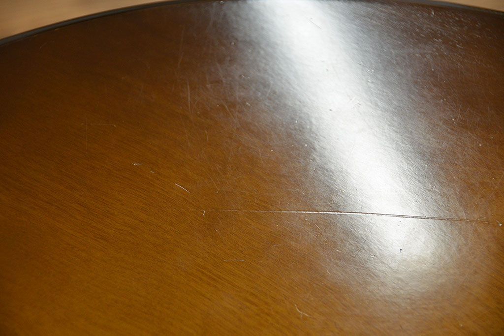 木の色合いが美しい、カフェテーブルにぴったりの一品です。