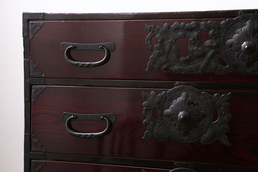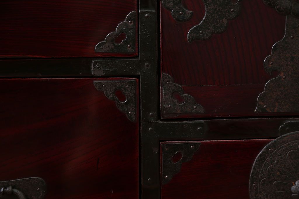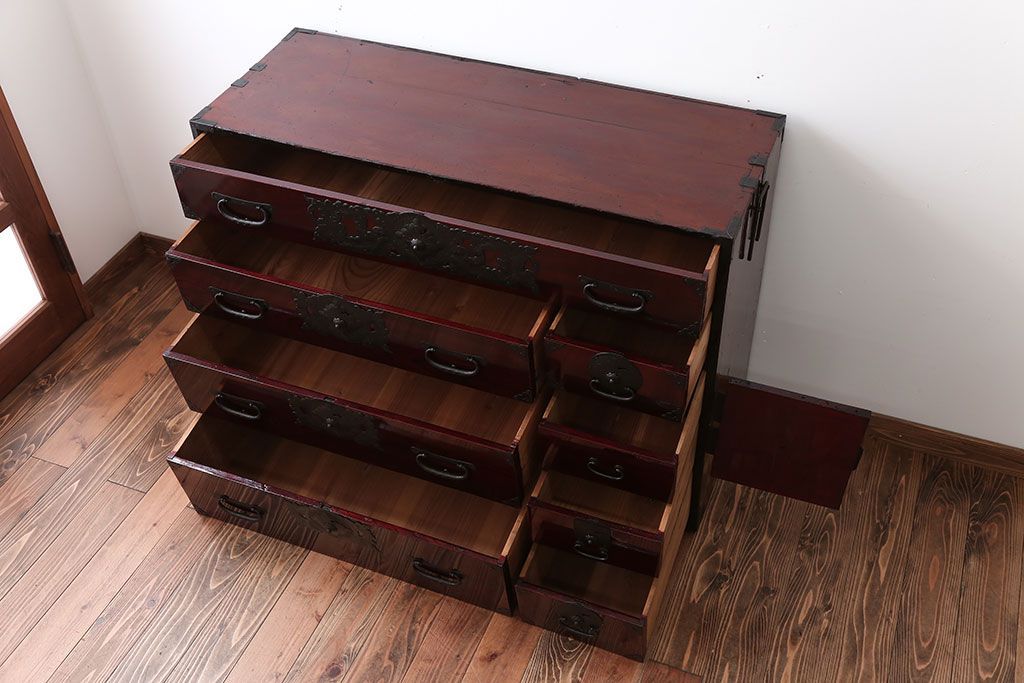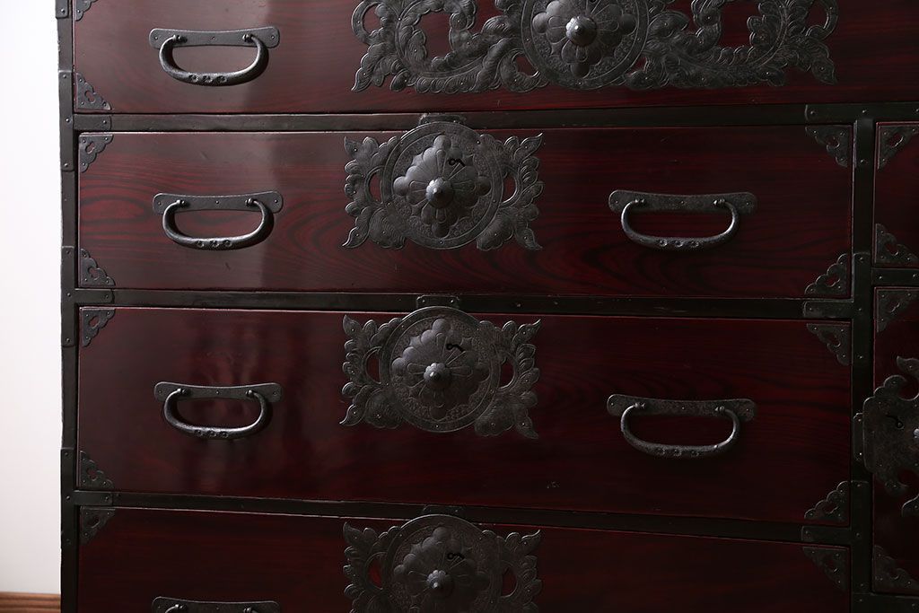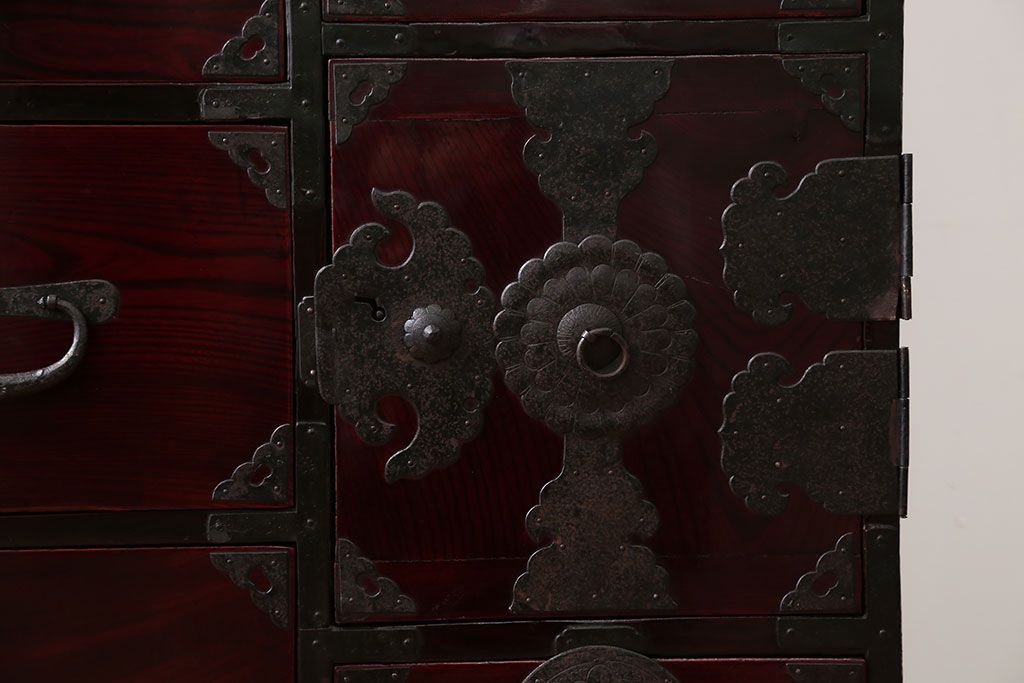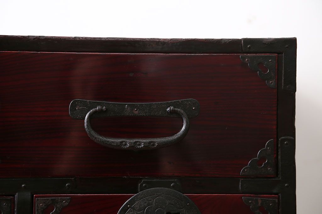 アンティーク家具 古民具・骨董 前面欅材!美しい金具の仙台箪笥