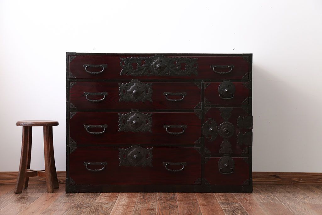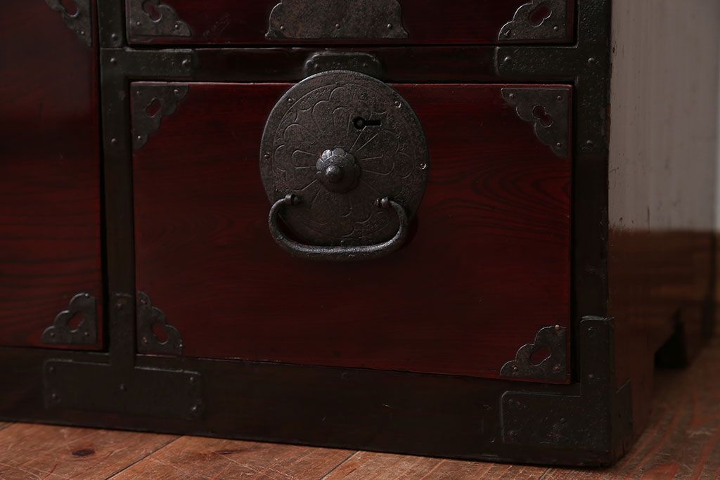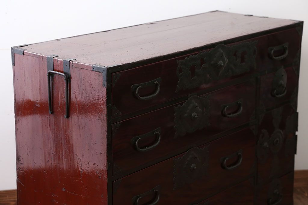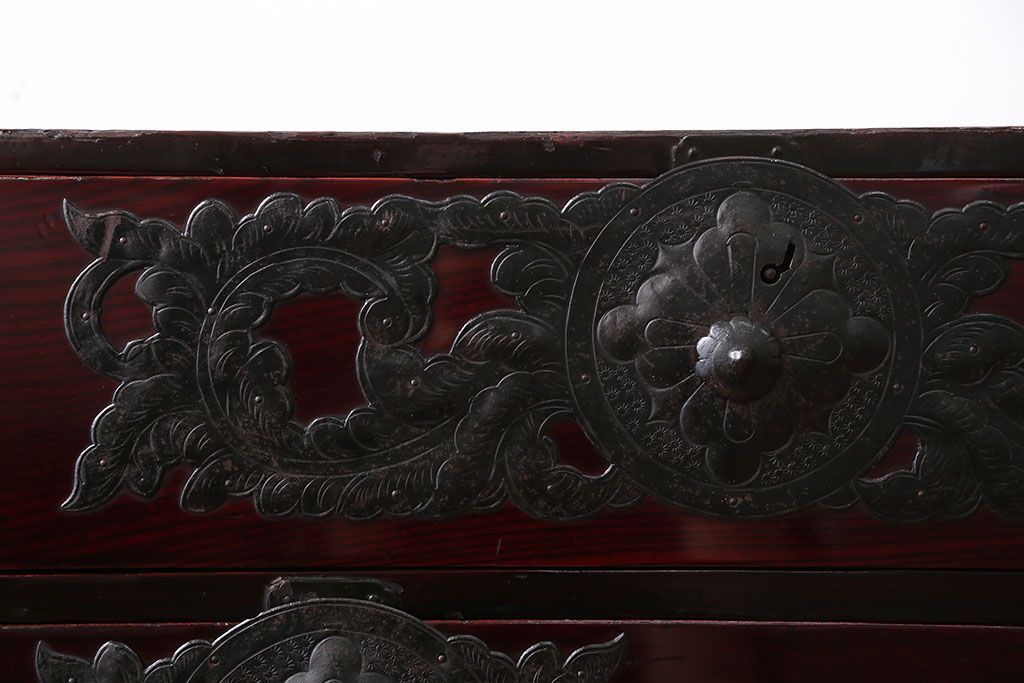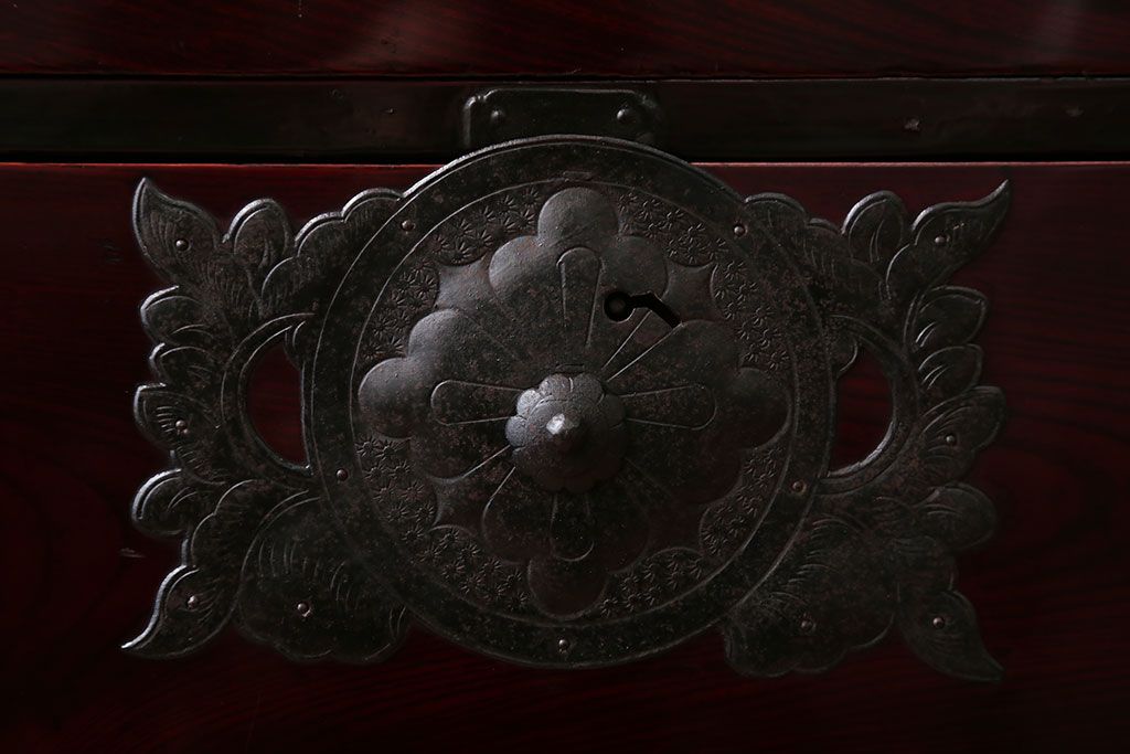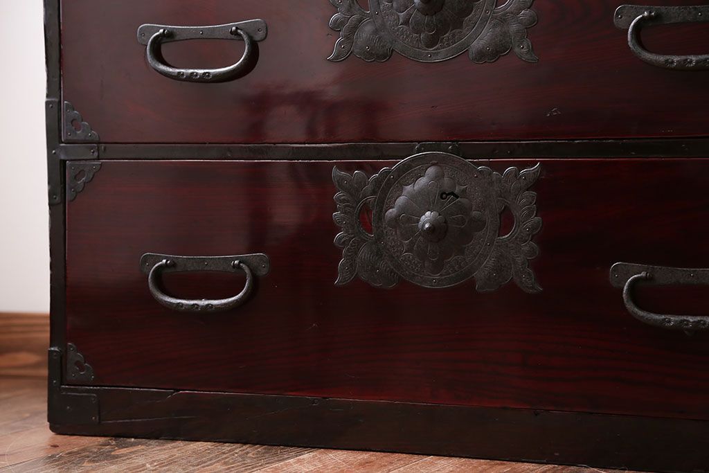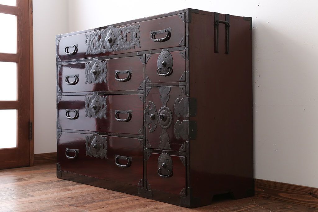 アンティーク家具 古民具・骨董 前面欅材!美しい金具の仙台箪笥