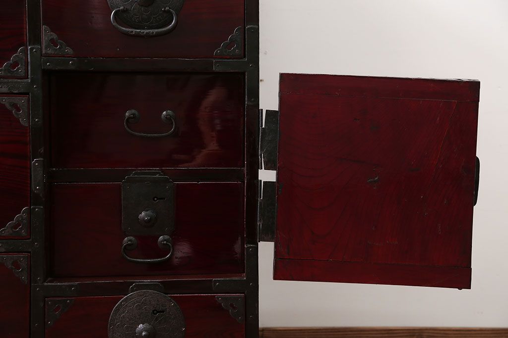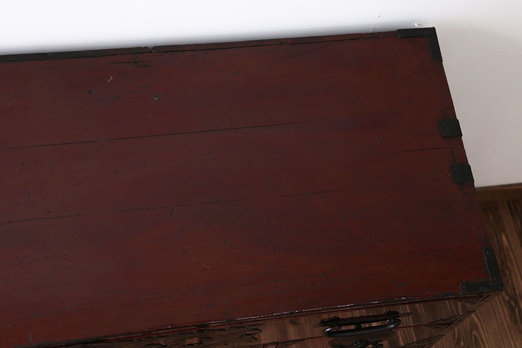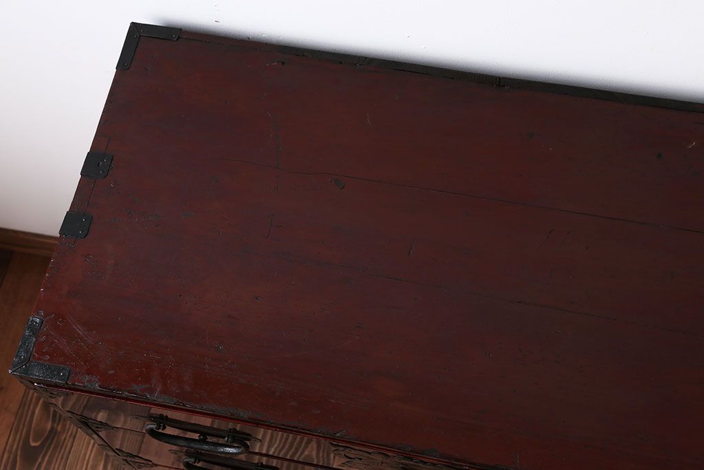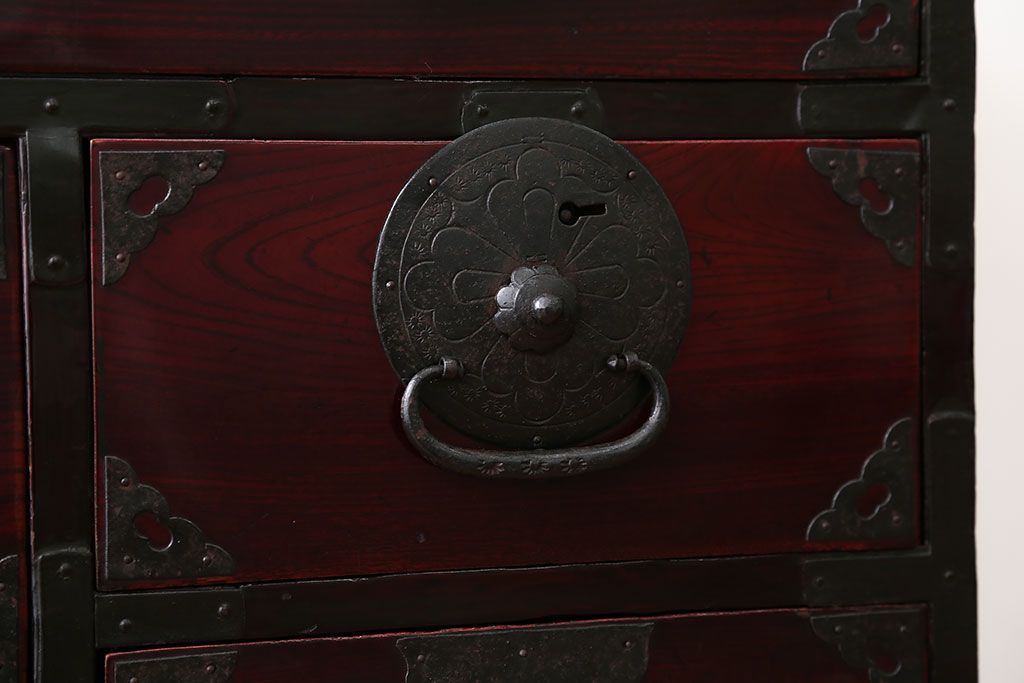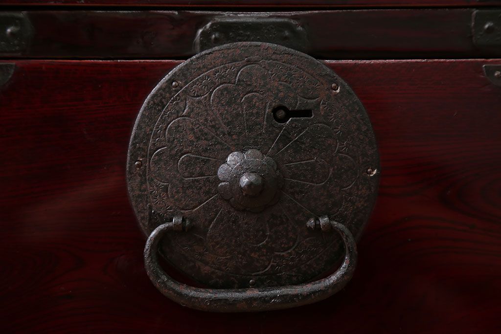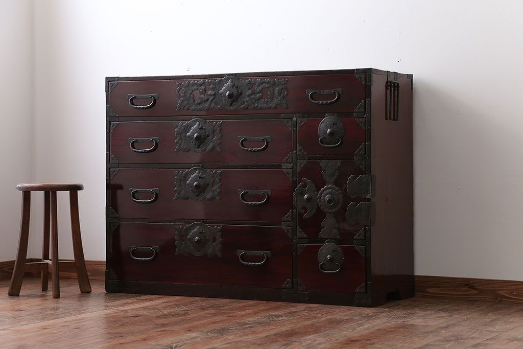 アンティーク家具 古民具・骨董 前面欅材!美しい金具の仙台箪笥