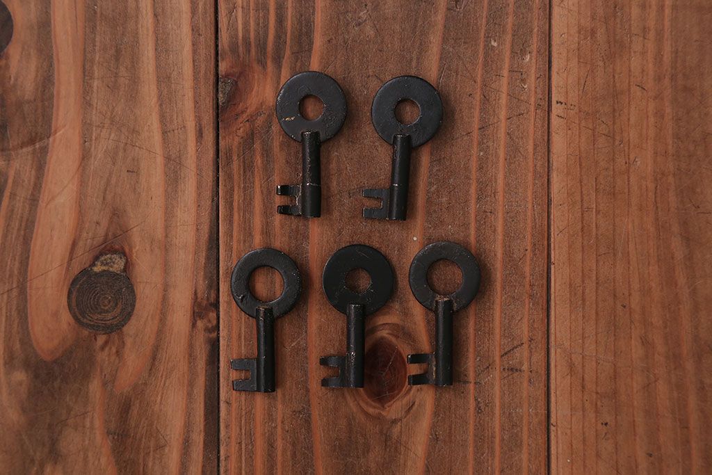 鍵は付属します。画像にありますように、袋に入れお付けします。スムーズに動くように調整していますが、あくまでも古いものや中古品ですので、長期の使用保証は出来かねます。ご購入後不具合が発生した場合は、当店でサポートさせていただきますので、お気軽にご相談くださいませ。