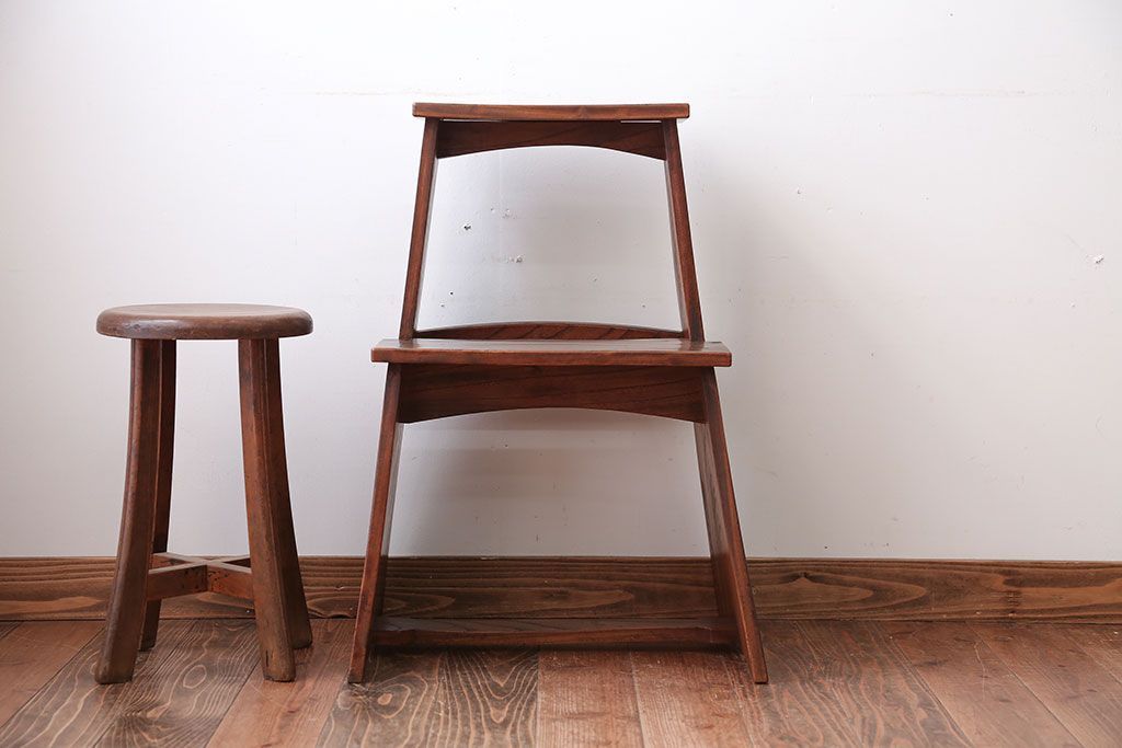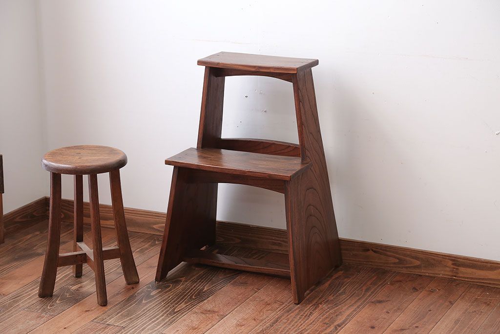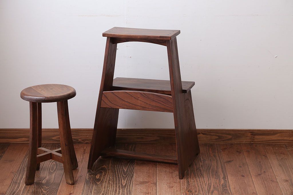 アンティーク雑貨 古民具・骨董 総欅材のアンティーク踏み台