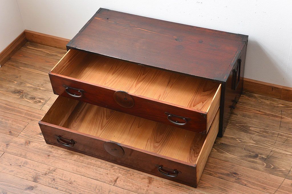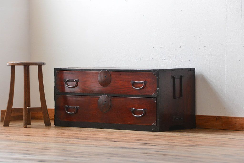 ラフジュ工房> 和箪笥 > アンティーク家具 古民具・骨董 漆が美しいアンティーク時代箪笥ローボード(1)