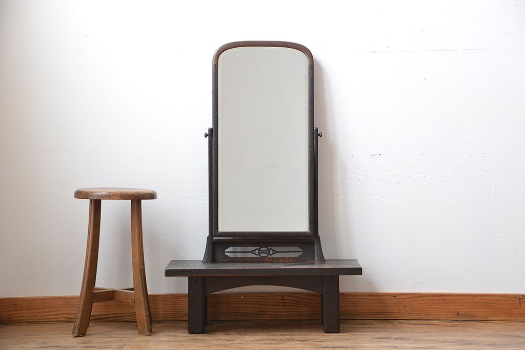和製アンティーク 民芸家具 古い栗材の浮造り仕上げの高級ドレッサー(鏡台)