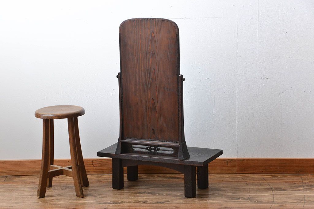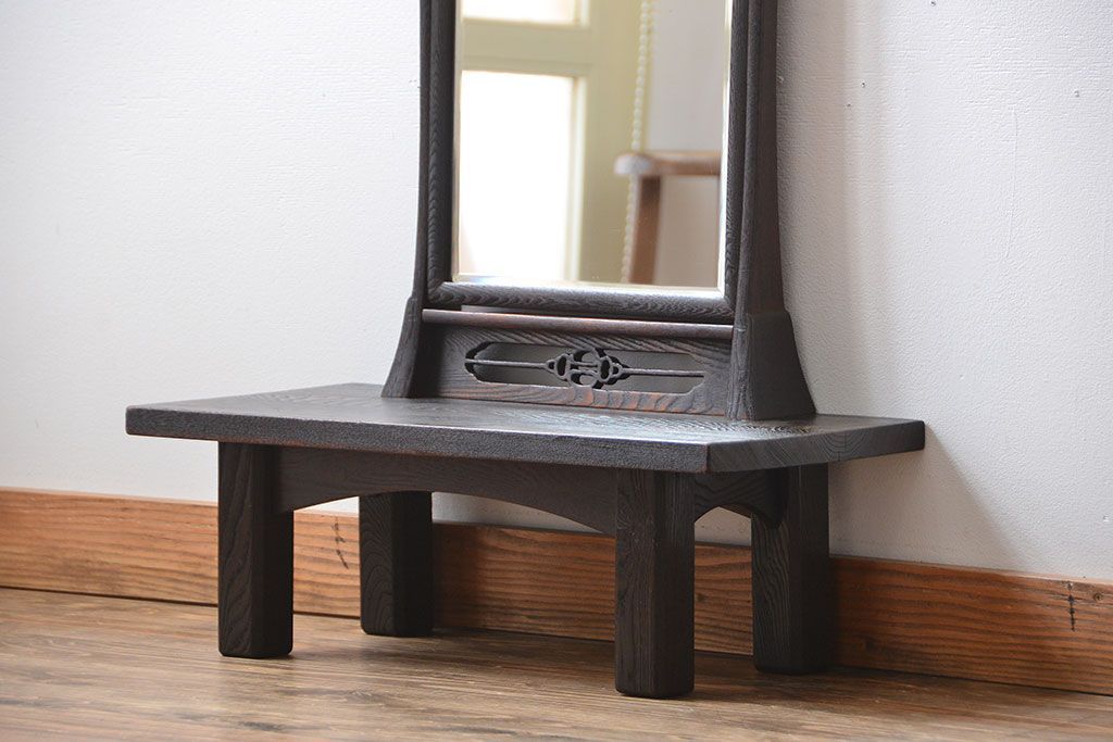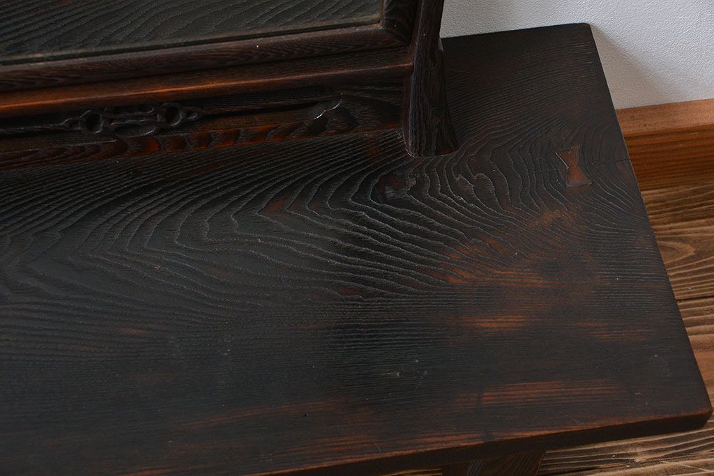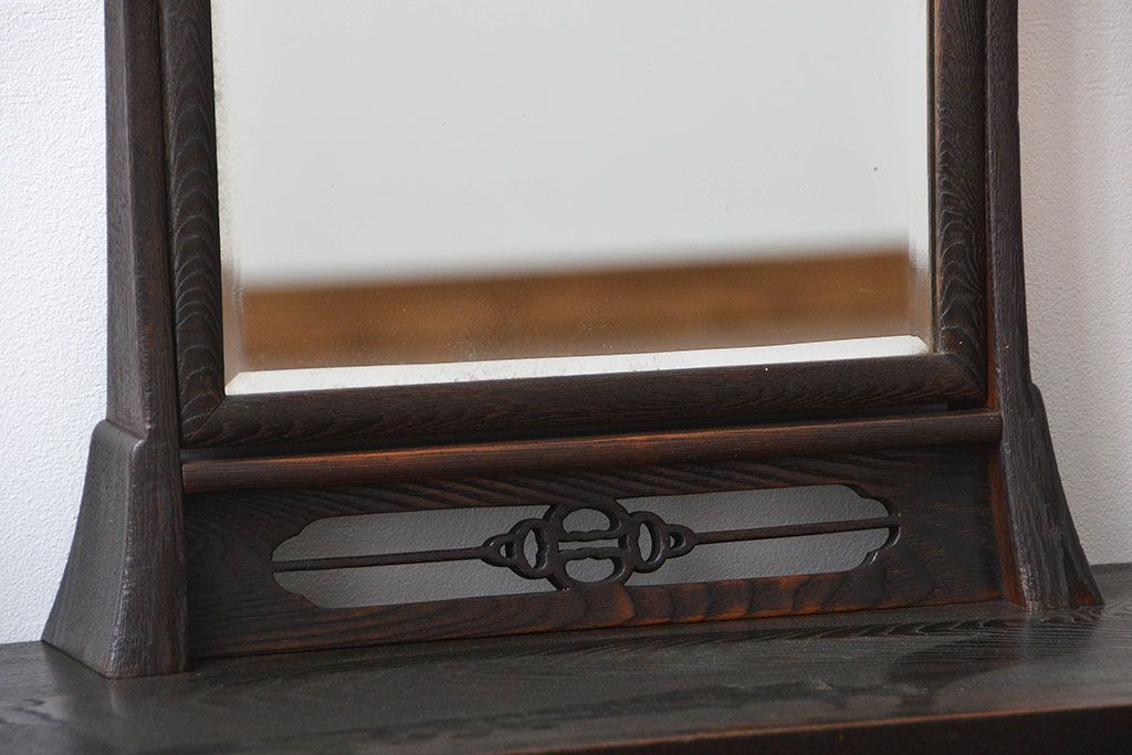 和製アンティーク 民芸家具 古い栗材の浮造り仕上げの高級ドレッサー(鏡台)です。