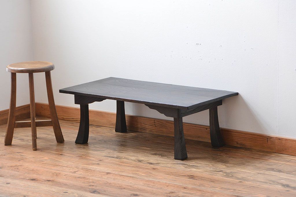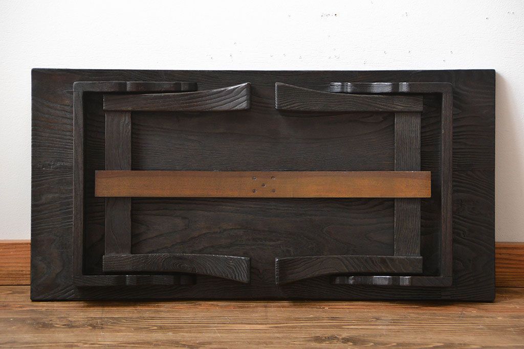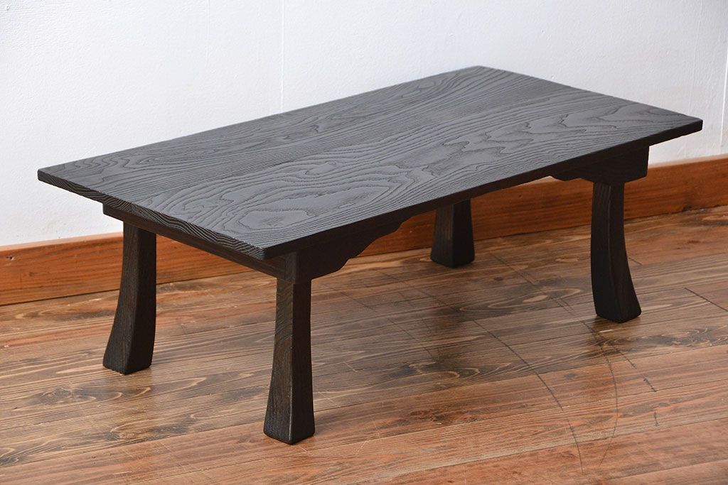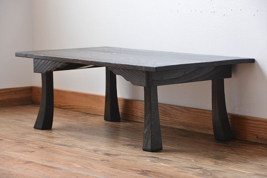 和製アンティーク 民芸家具 古い栗材の浮造り仕上げの角ちゃぶ台です。