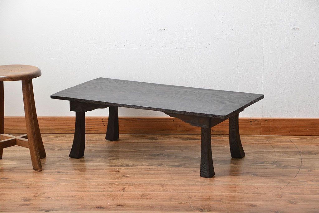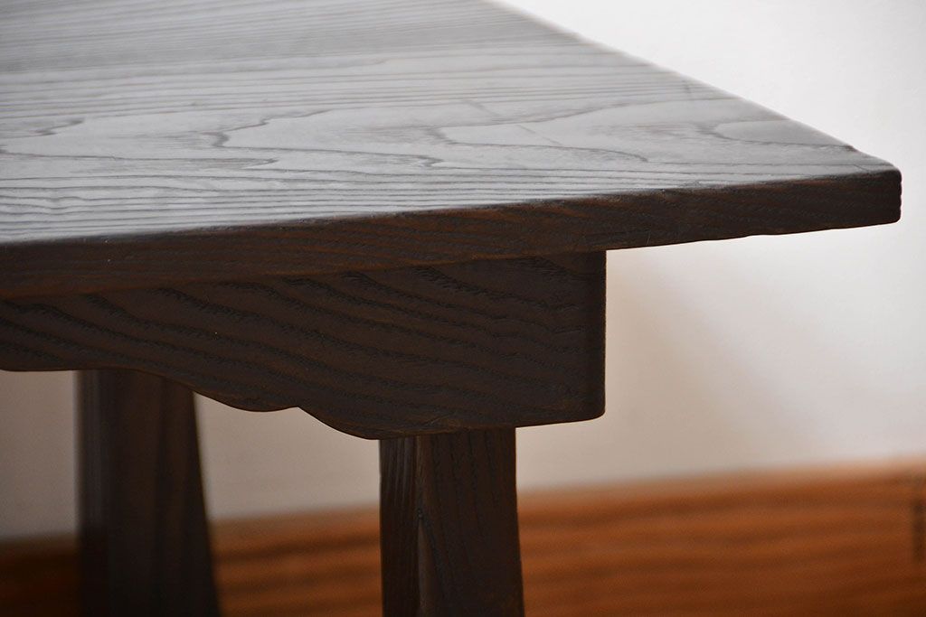 和製アンティーク 民芸家具 古い栗材の浮造り仕上げの角ちゃぶ台